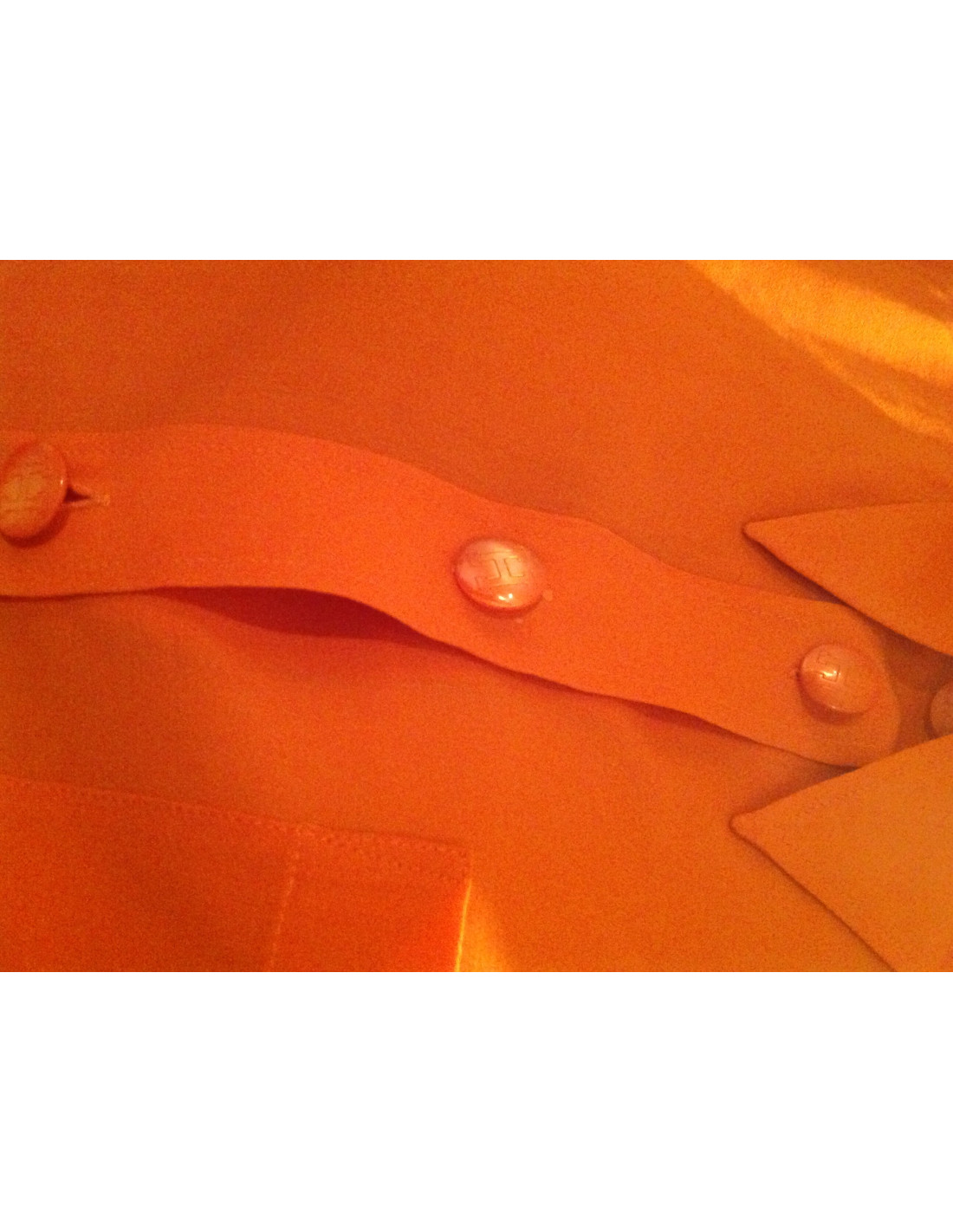Magnifique chemisier estival de la maison HERMES, en taille 46, il est en 100% laine vierge et de couleur orange H. Les boutons sont siglés 'H". La particularité de ce chemisier : il se porte noué ou non au niveau de la taille et le dos peut se porter nu. Il est en très bon état.