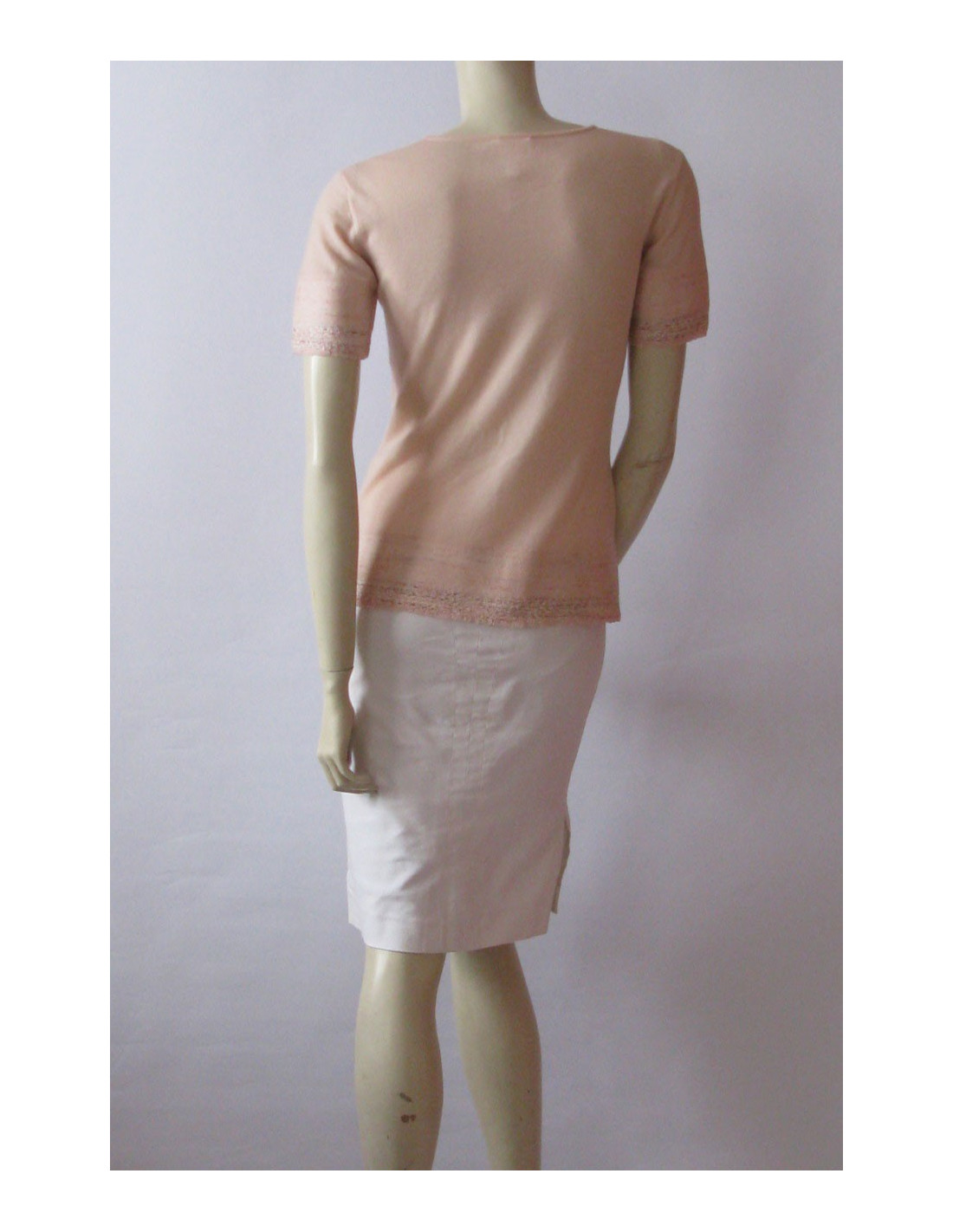 Élégant! Pull Chanel en cachemire rose T38FR.