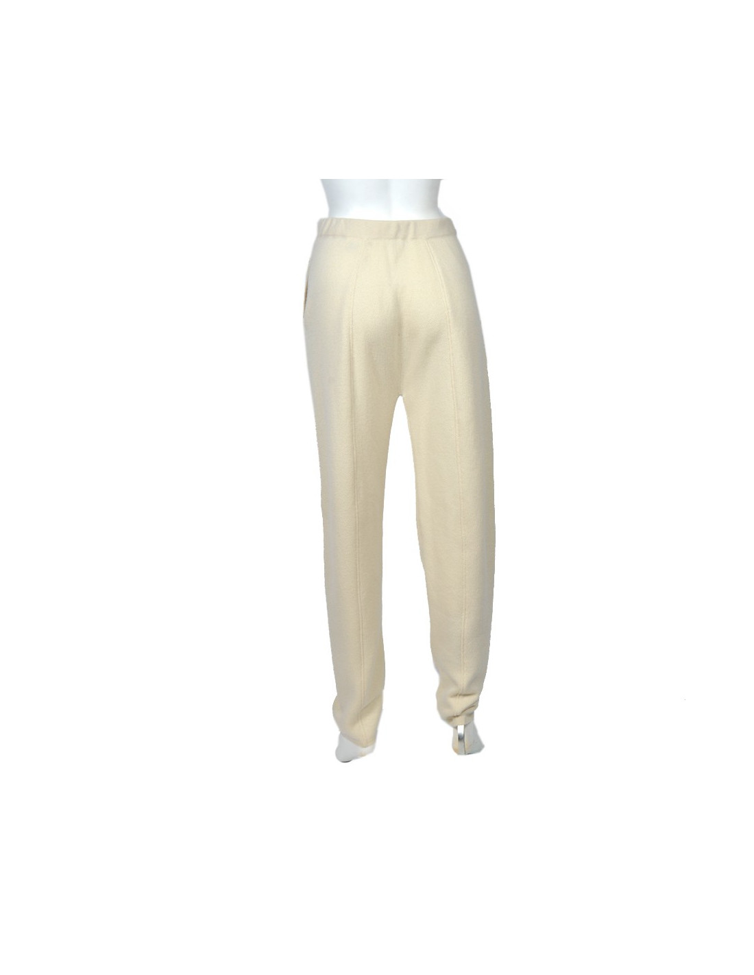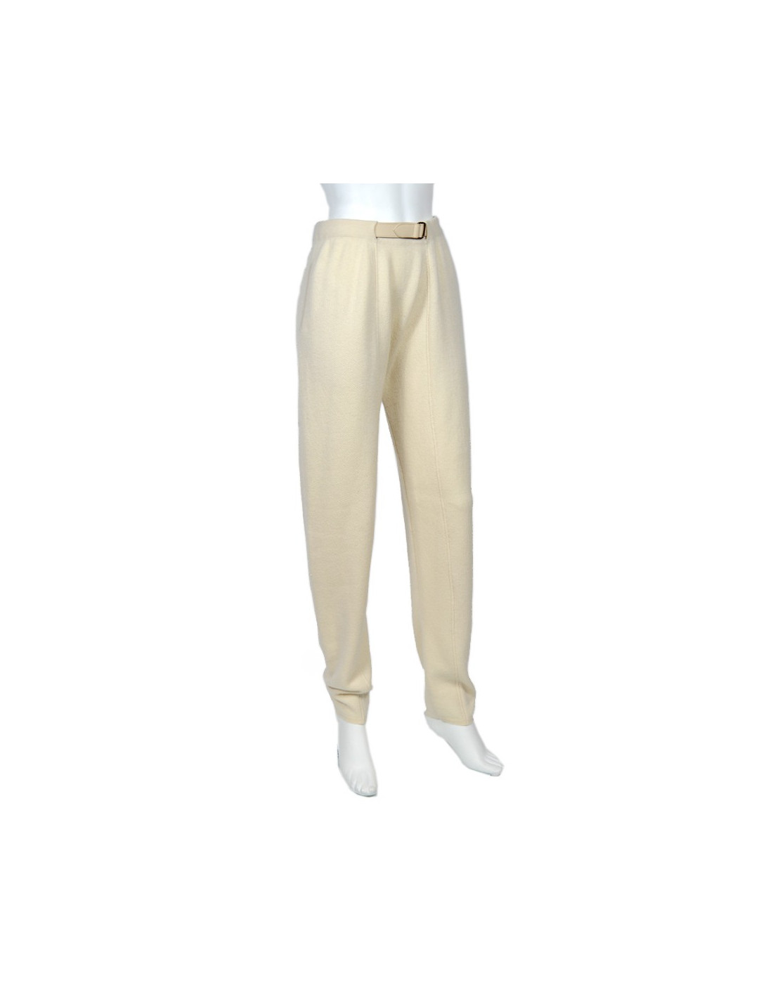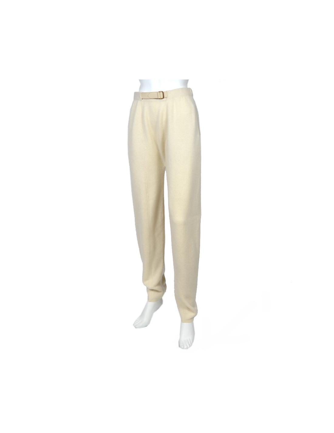 Blouse et pantalon Hermès soie motif plumes dans les tons beige. Collection Jean Paul gaultier, taille 40 (sans étiquette de taille). Encolure et emmanchure en maille lainé beige. Blouse en foulard de soie et pantalon en cachemire et ceinture en cuir d'agneau crème. Motifs plumes aux couleurs feu et bambou. Un bouton pour la fermeture se trouve au niveau du col au dos. Très bon état.