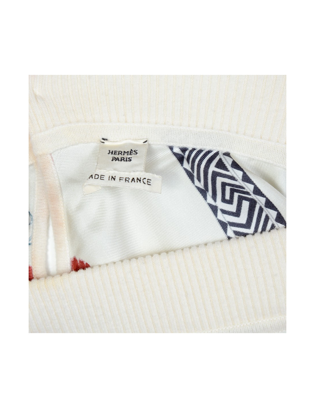 Ensemble blouse et pantalon HERMES T 40 FR soie et cachemire motifs "plumes"