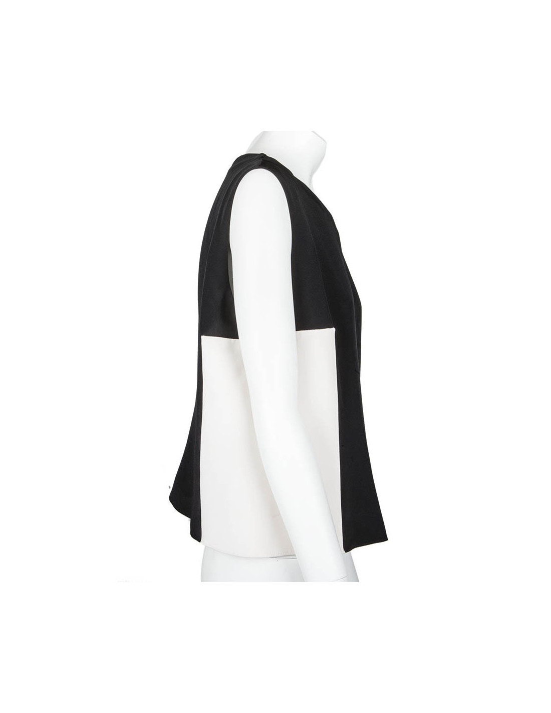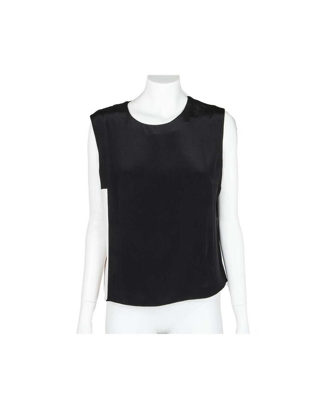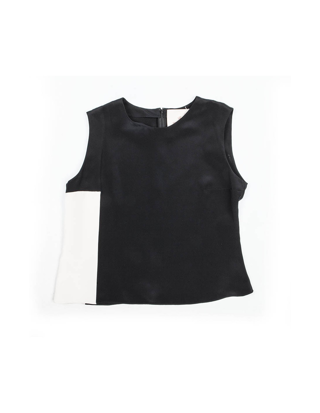 Top Roksanda en soie noire et blanche. Sans manches. Fermeture zippée dans le dos. En très bon état. Petite tâche en bas à droite sur la partie blanche mais très peu visible.