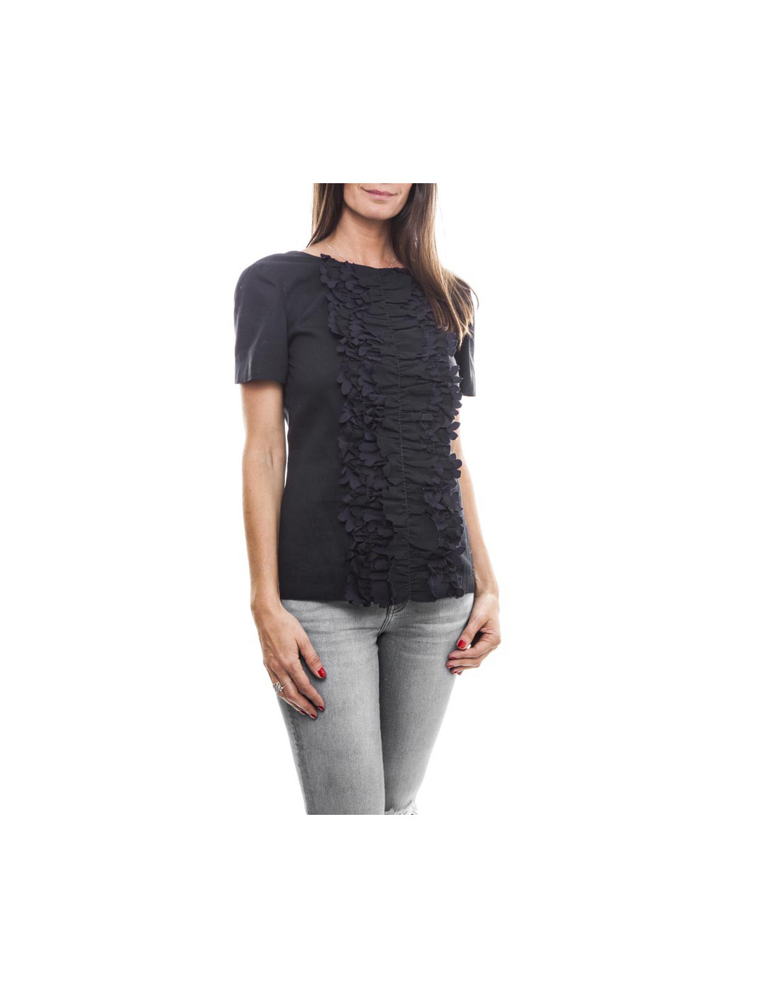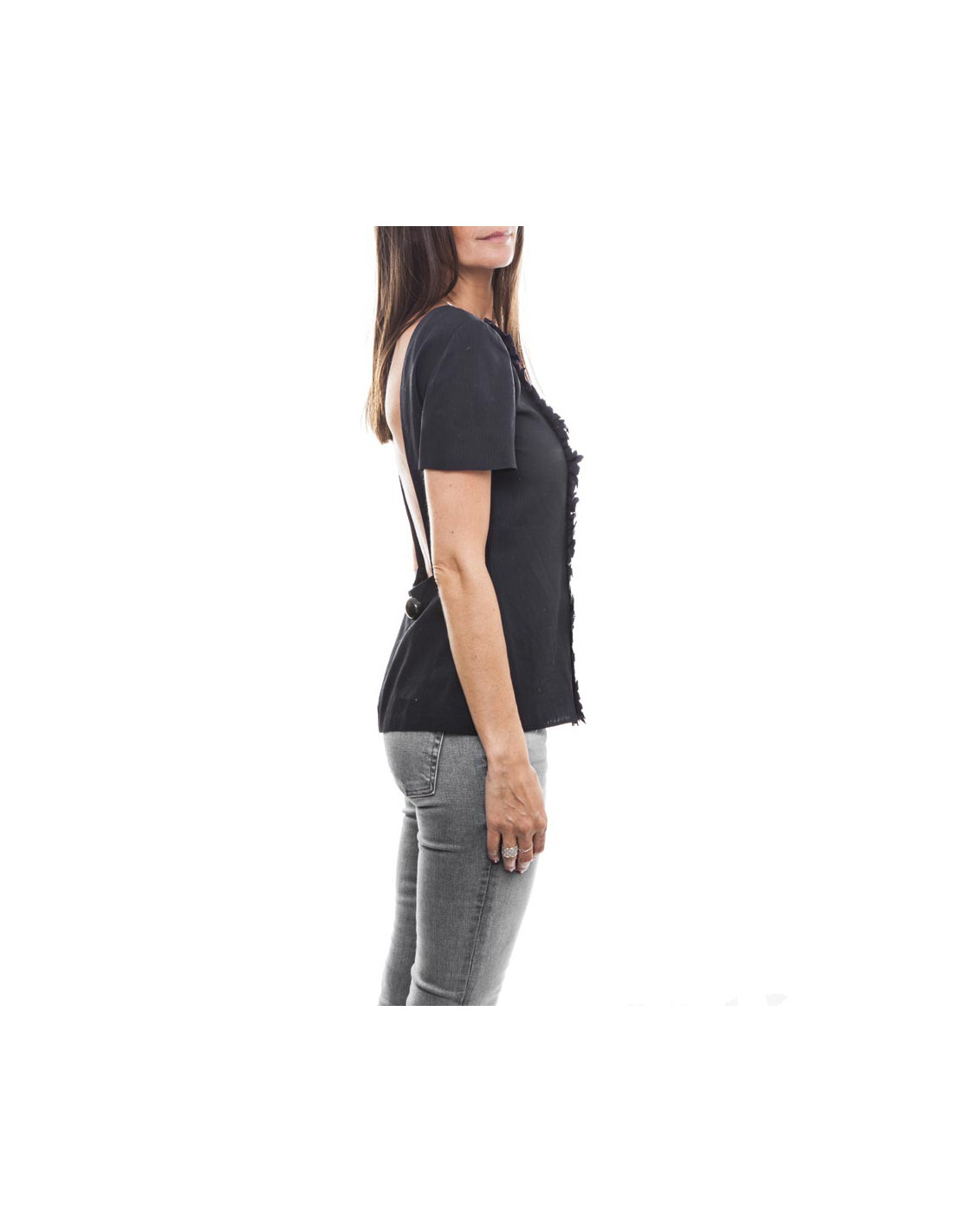 Très belle blouse dos nu Chanel en coton et soie bleu marine et encre.