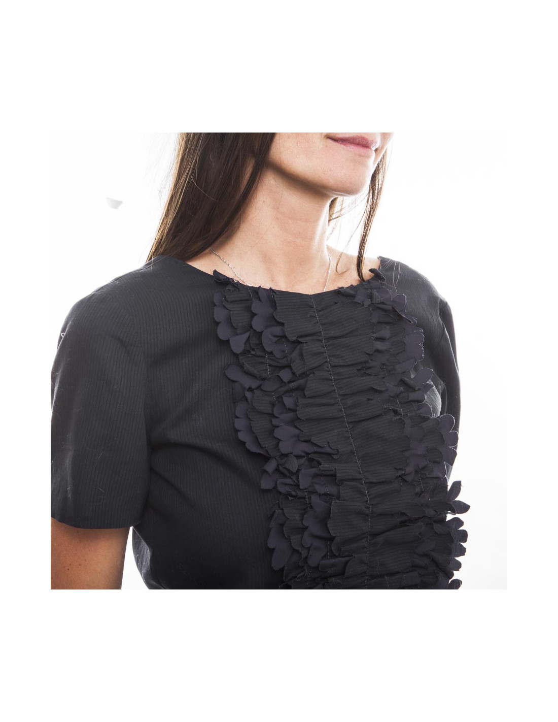 Fermeture éclair le long du bas du dos. Détails : volants découpés à l'avant (voir photos). Doublure en soie. Fabrication italienne.