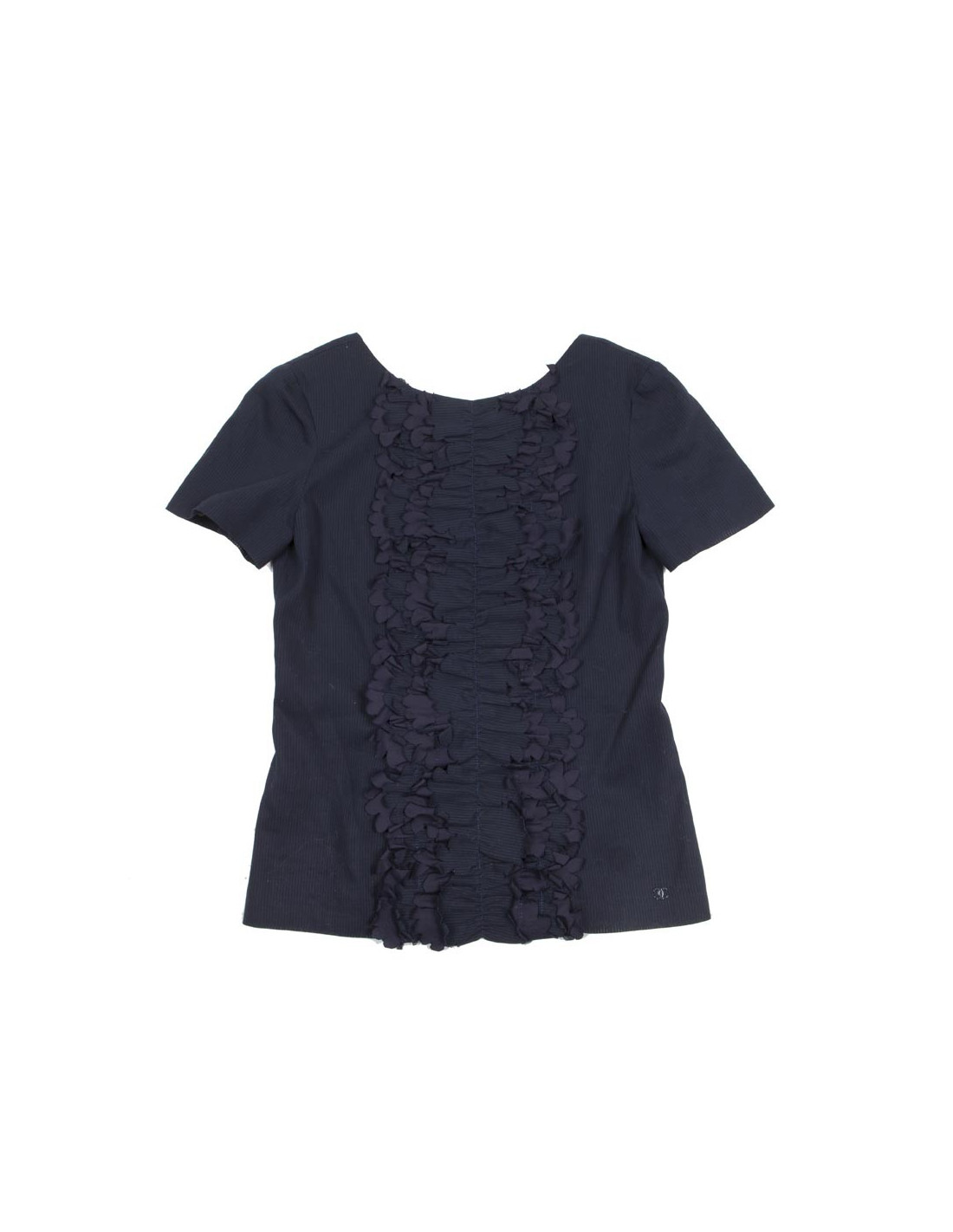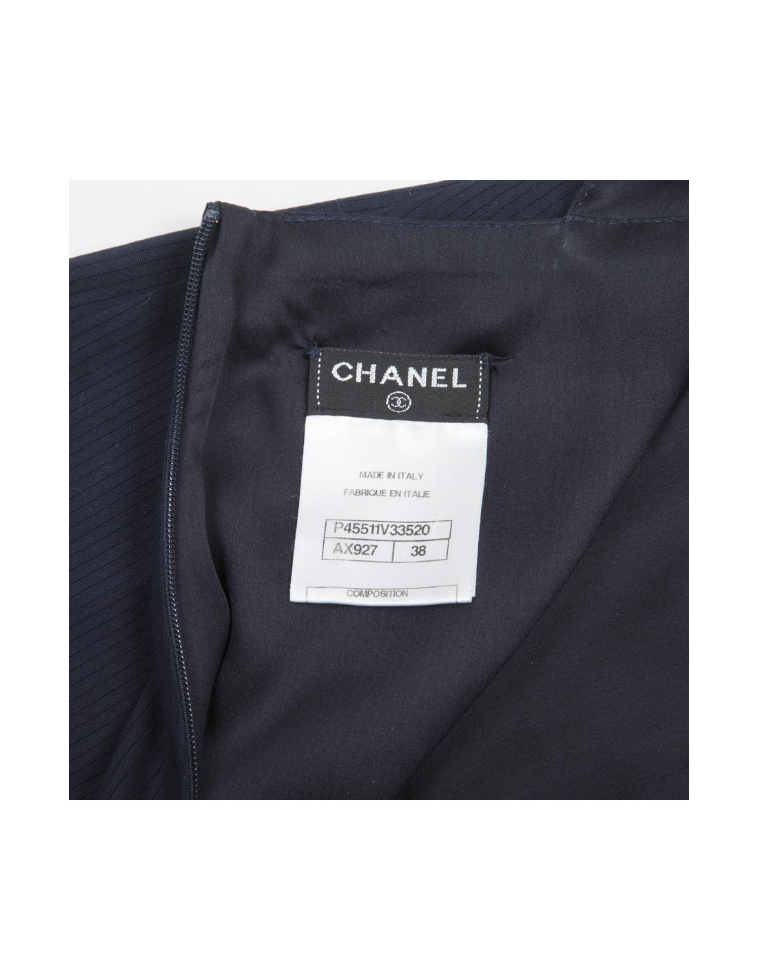 Blouse CHANEL T38 en coton et soie bleu nuit et encre