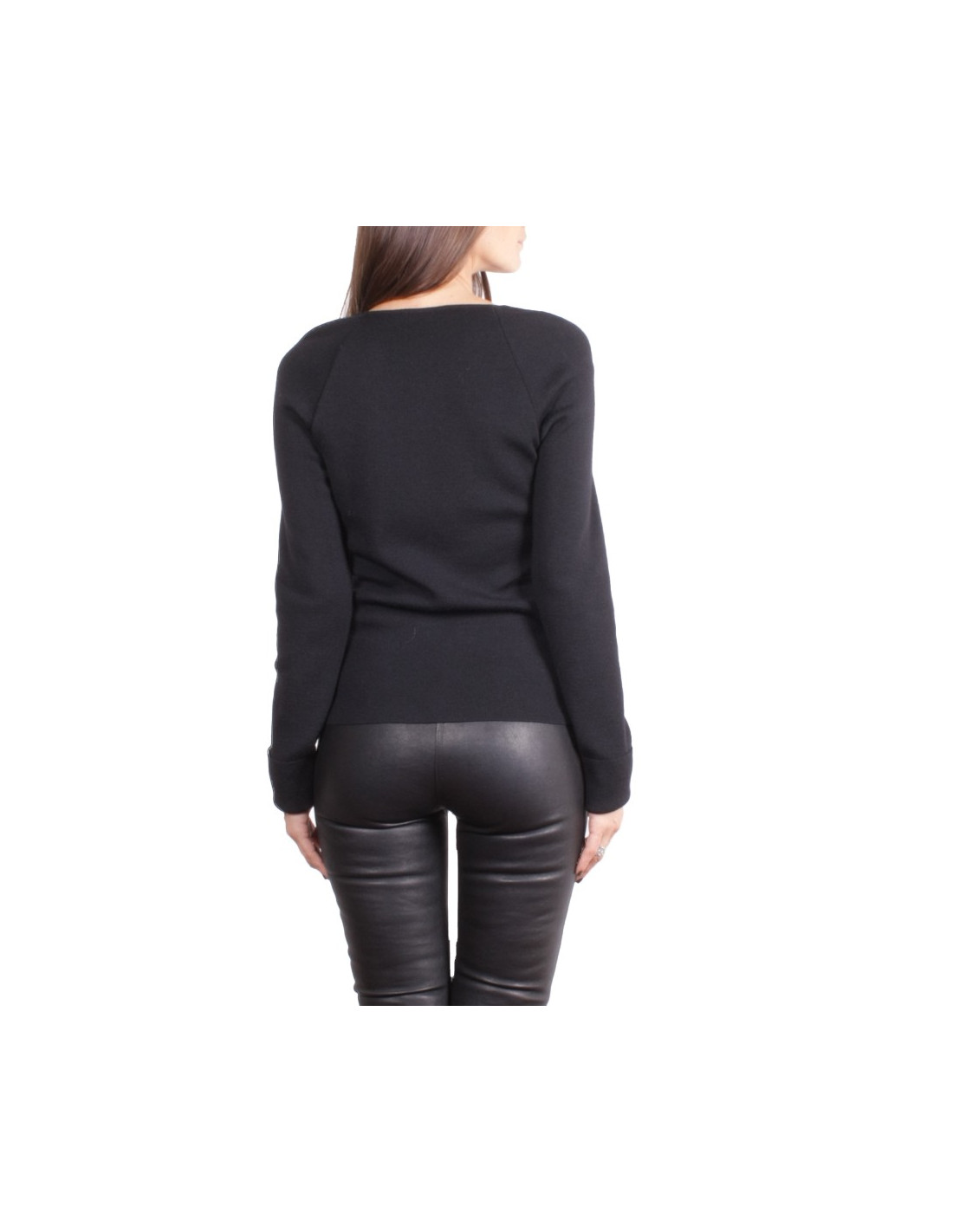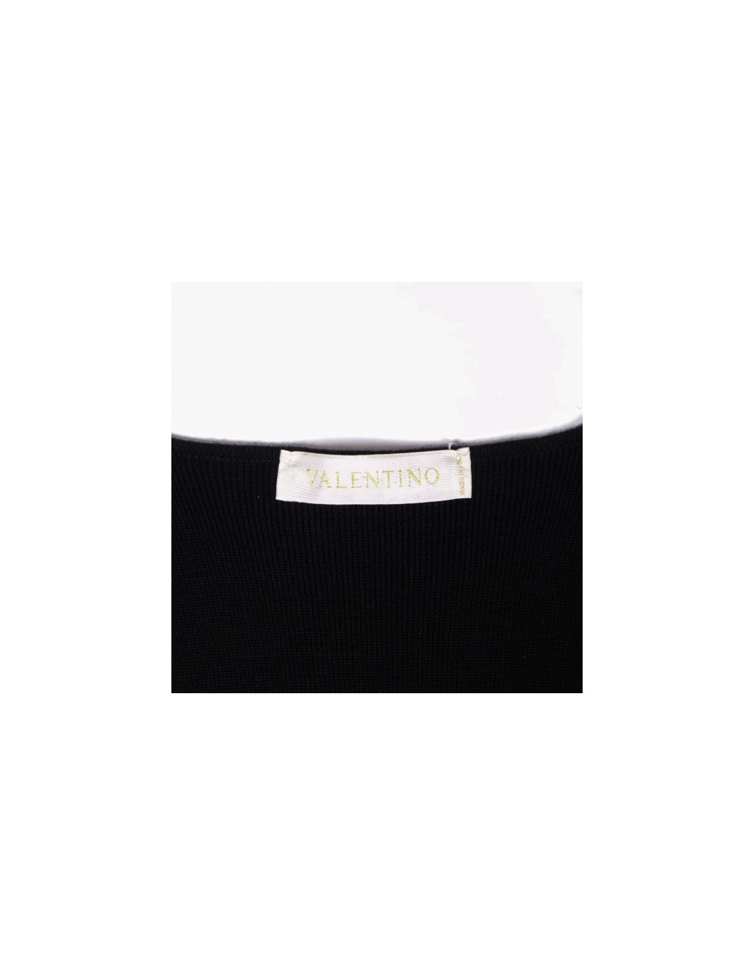Top VALENTINO en laine noire, une découpe en dentelle blanche au niveau de la poitrine ainsi qu'un double ruban noir en satin. Taille L.
