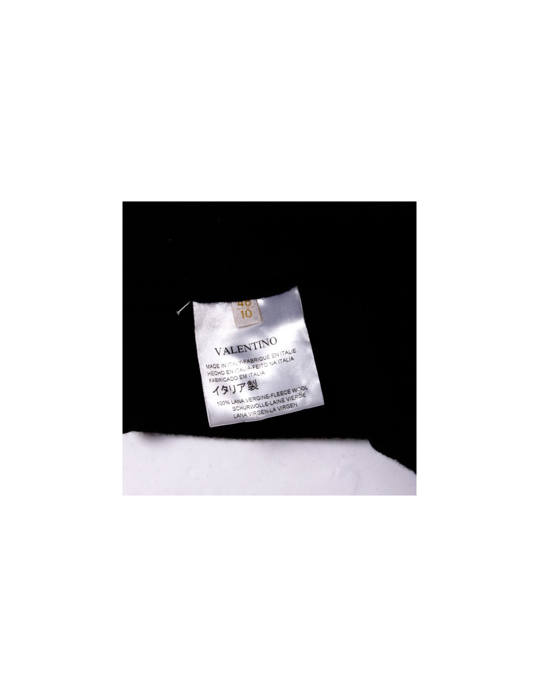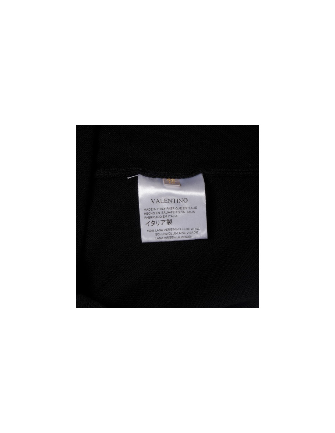 Top VALENTINO en laine noire, gansé d'un volant de dentelle chantilly noire sur le décolleté et un ruban de satin noir également qui se noue sur la poitrine.