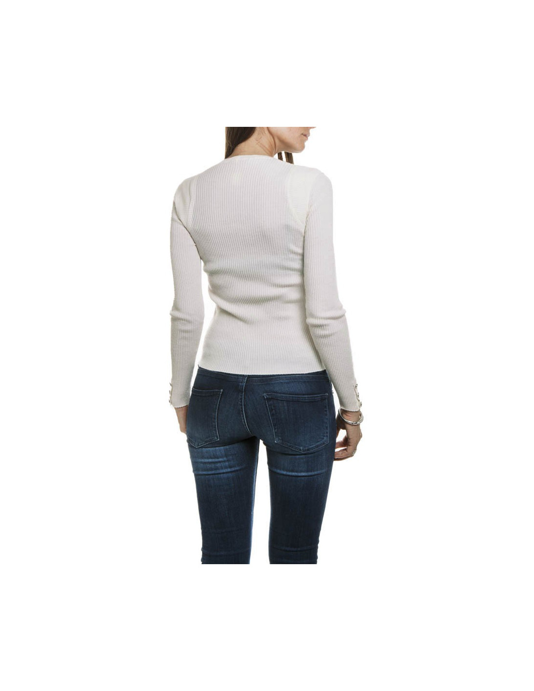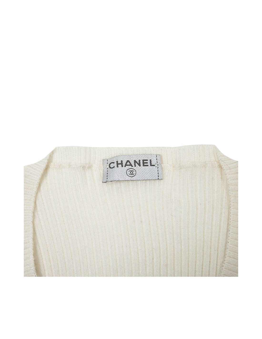 Pull en cachemire et soie écrue de la Maison Chanel. Pas d'étiquette de taille, équivaut à un 36/38. Col V.