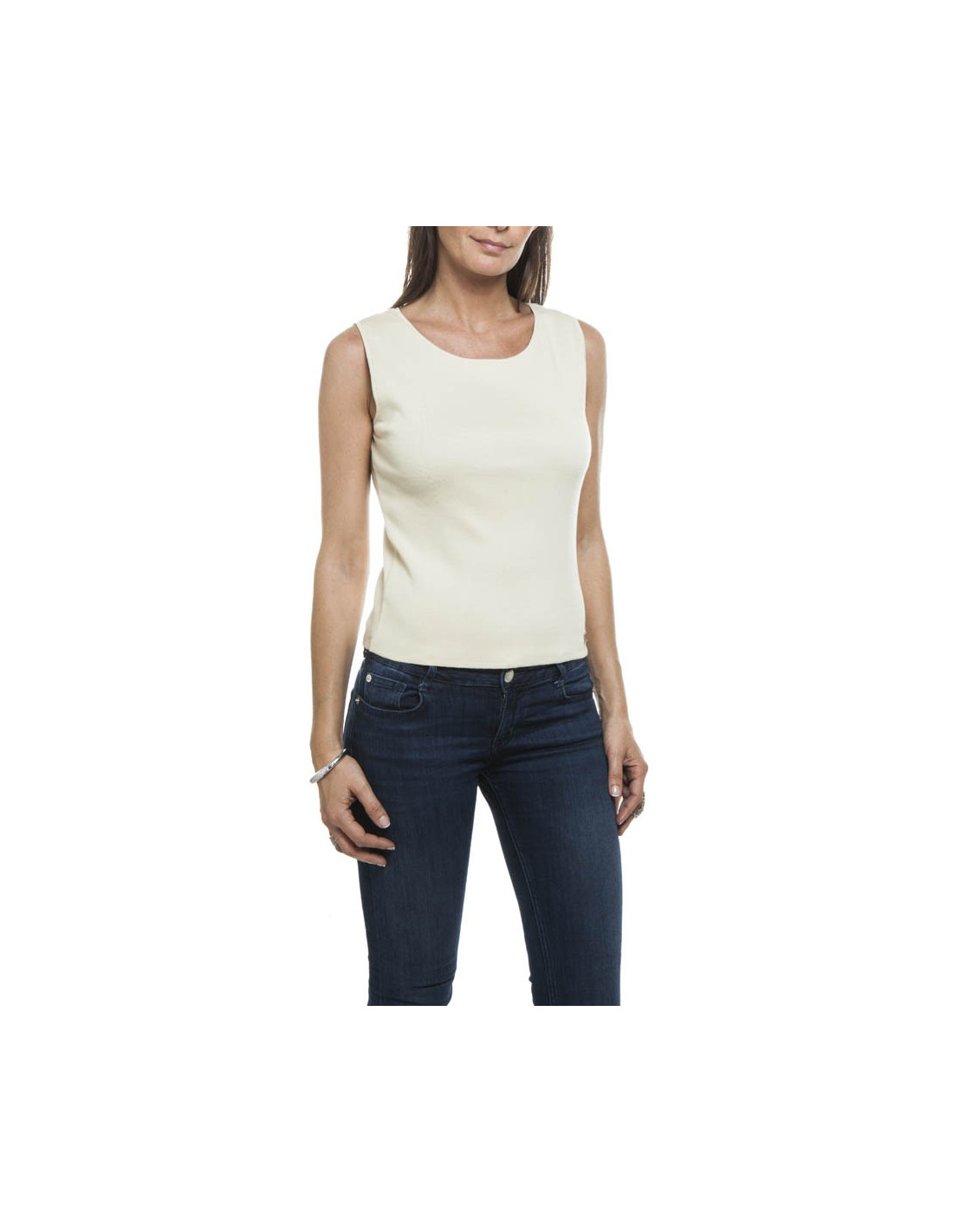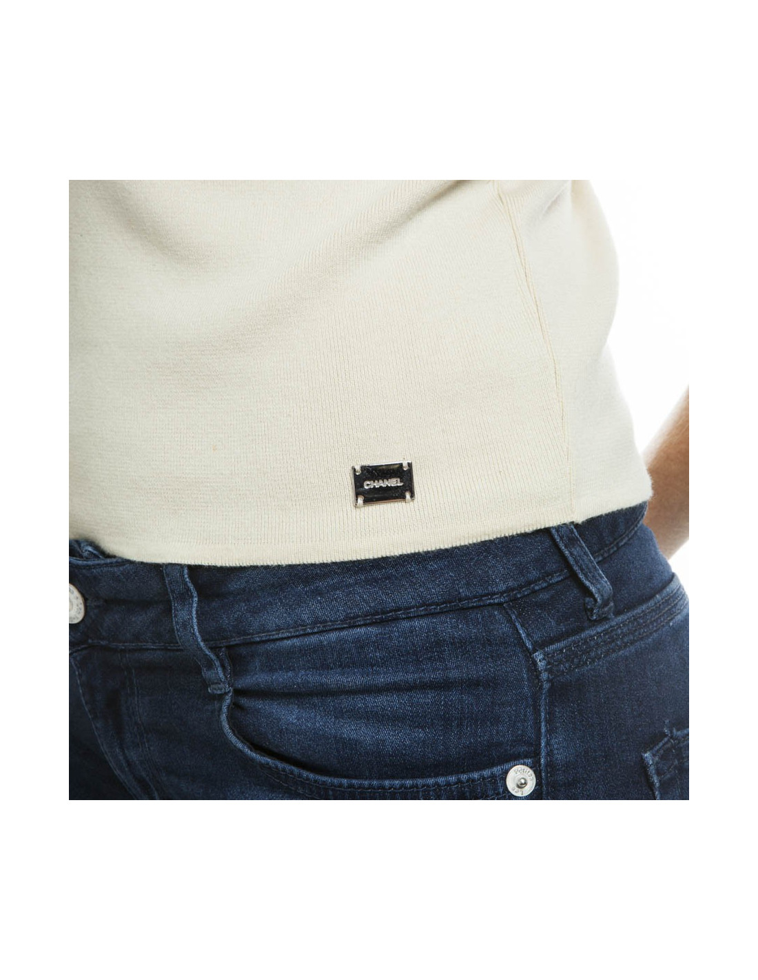 Pull sans manches CHANEL T 40 FR coton écru Vintage