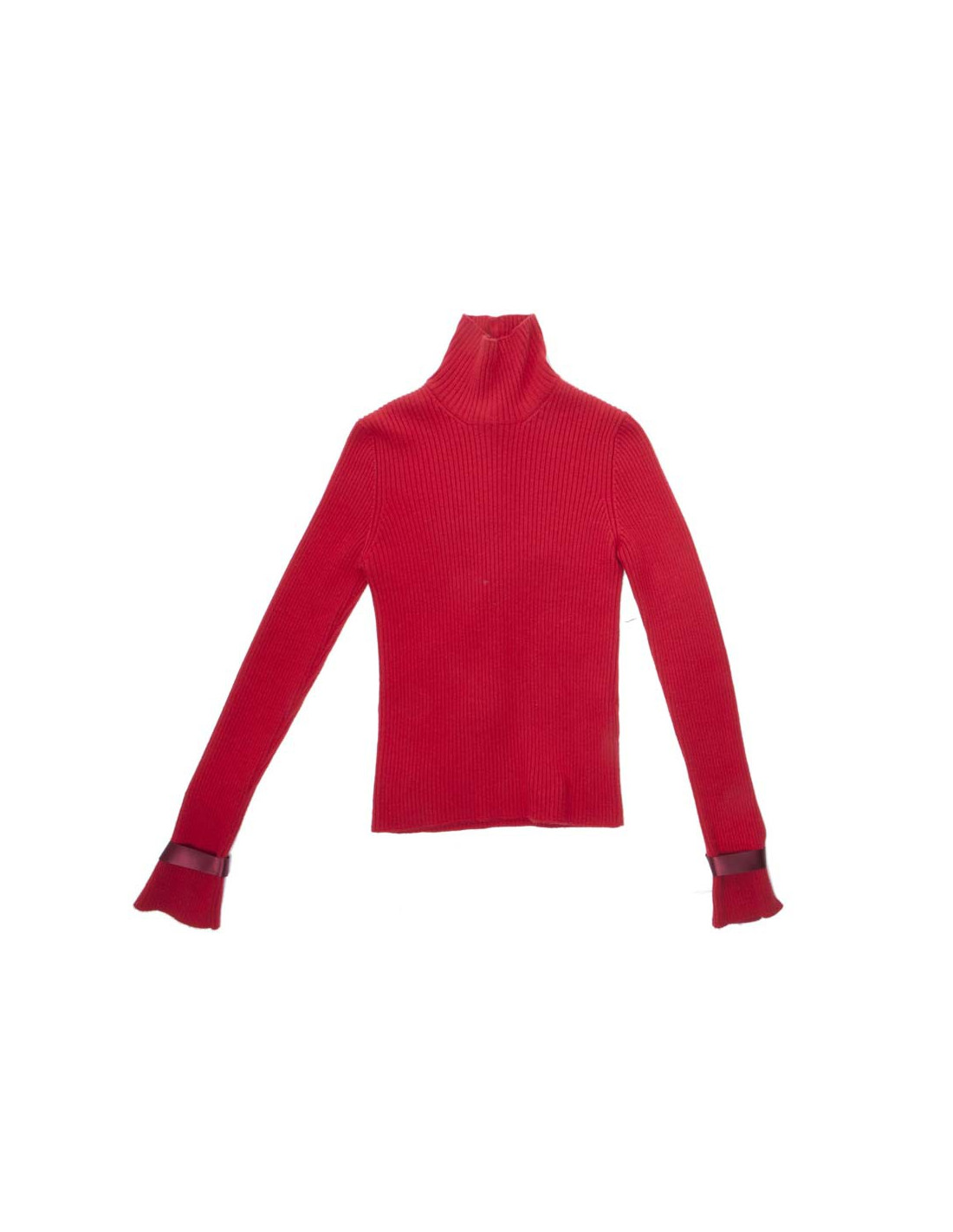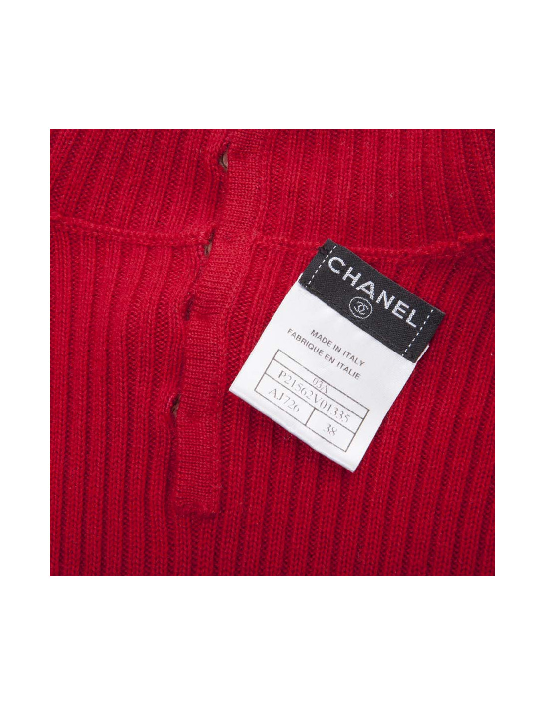 Pull col cheminée en cachemire de la maison Chanel de couleur rouge.