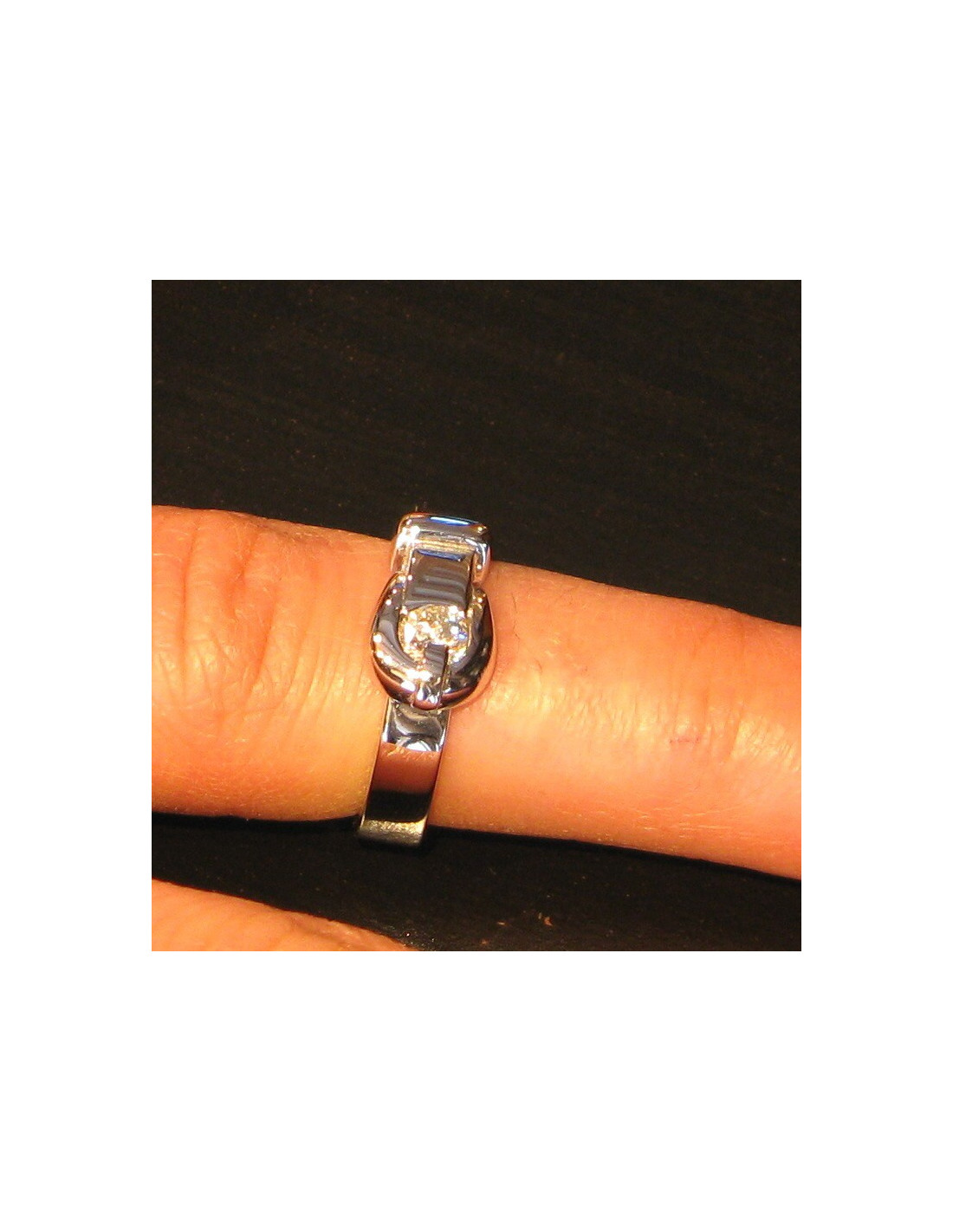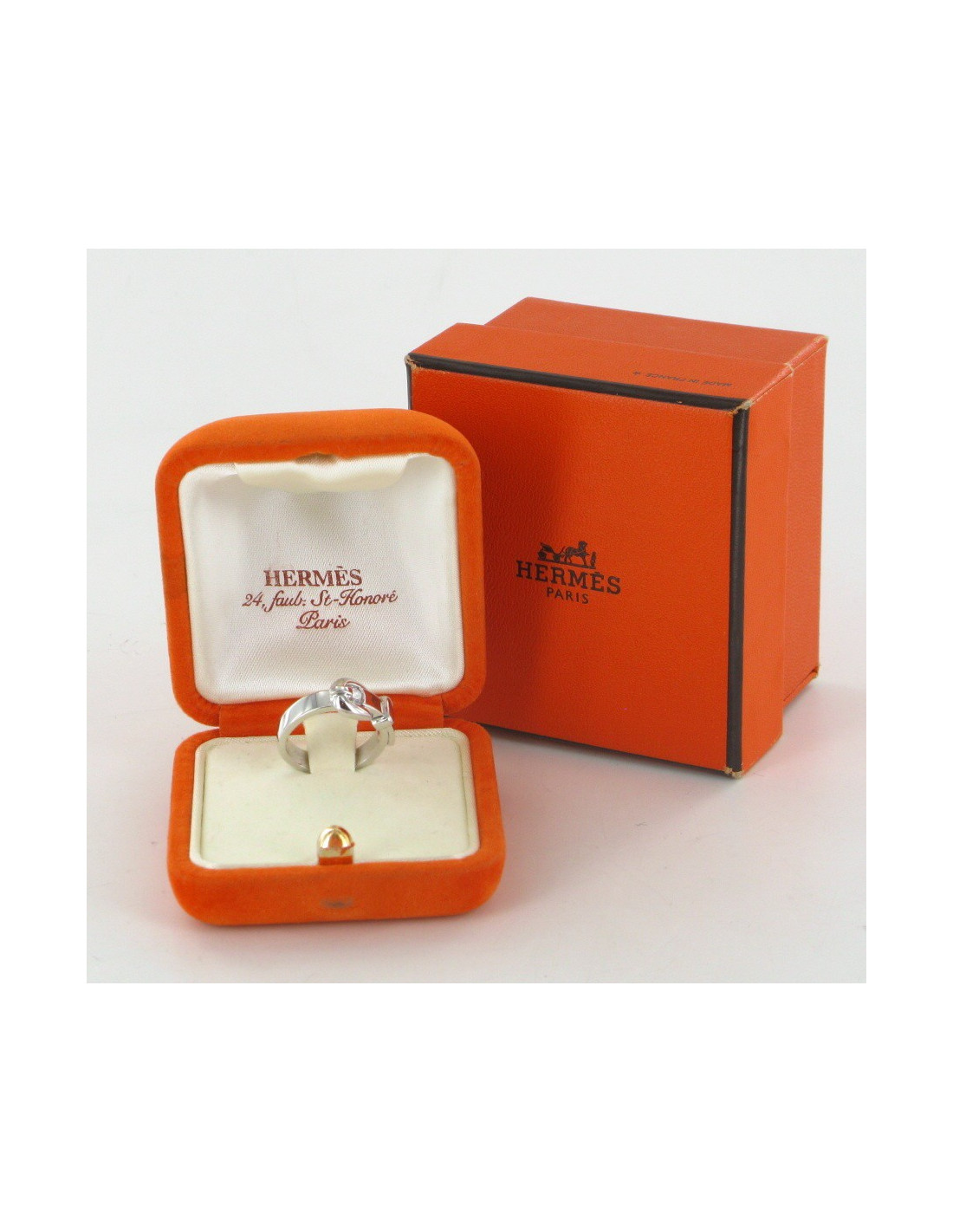 Bague "BRIDES" HERMES T50 or blanc et diamant rond