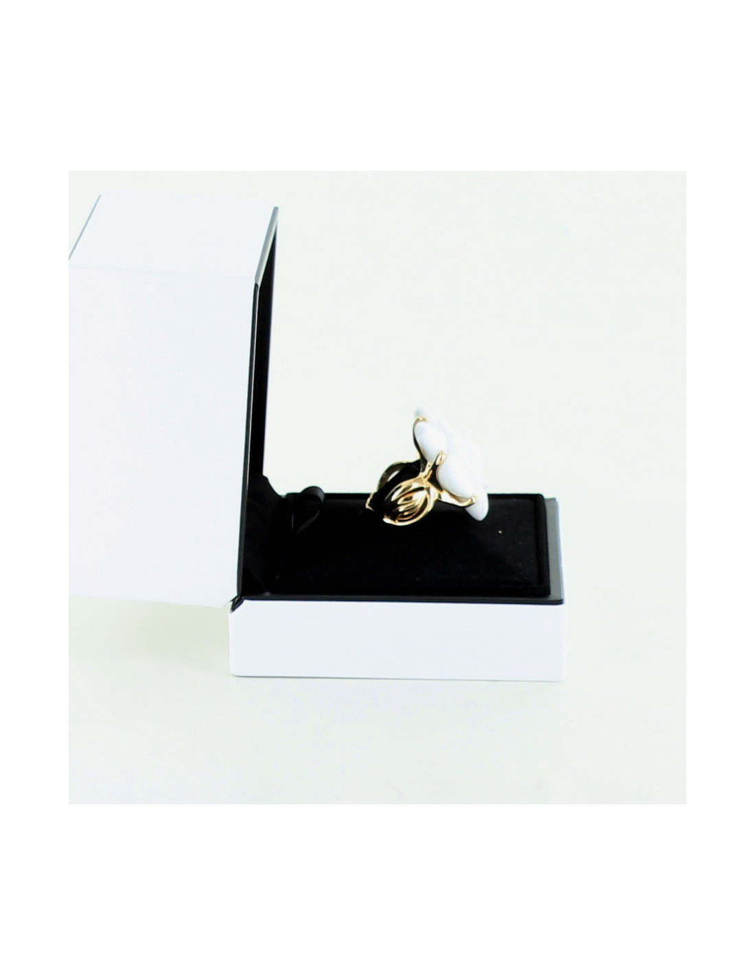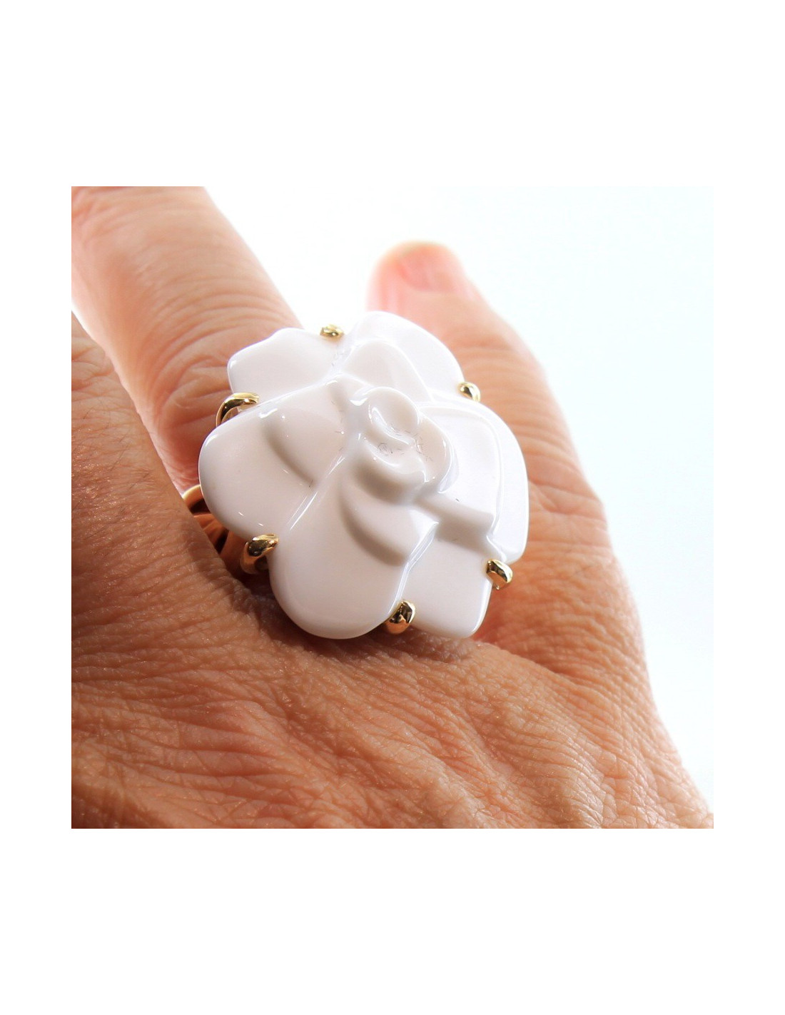 Bague camélia , iconique de la Maison Chanel, taille 55 , camélia en agate blanche, montée sur or jaune 18 carats 750/1000. Le camélia symbole de la Maison Chanel et cher à Mademoiselle Coco