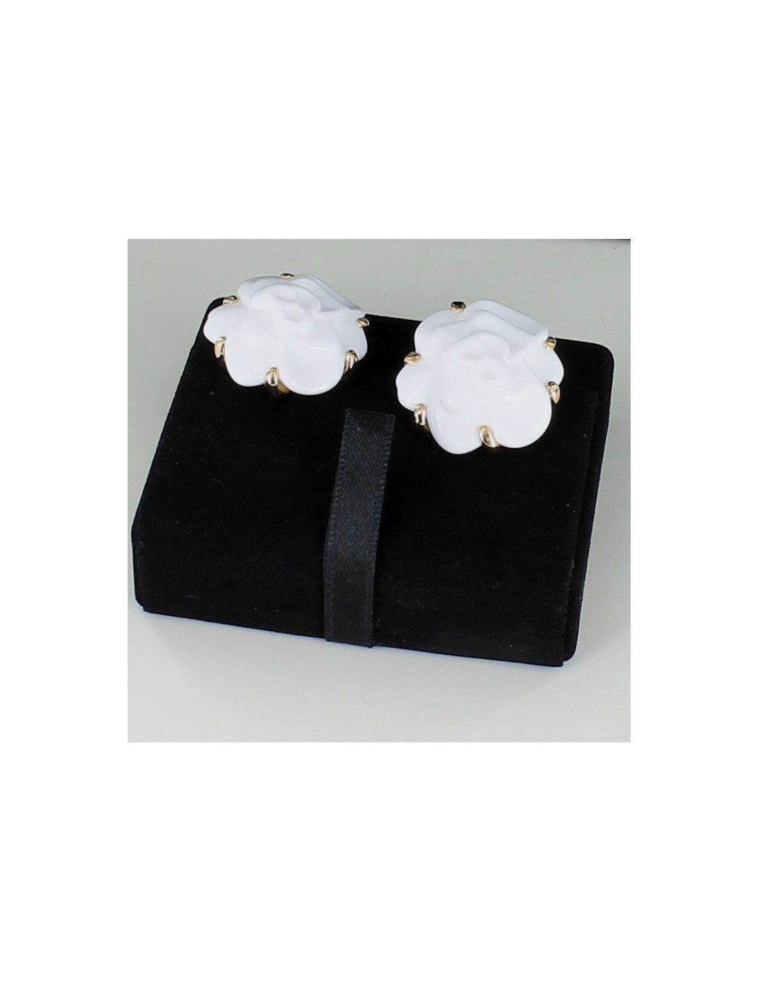 Boucles d'oreille clips Camélias CHANEL agate blanche or jaune