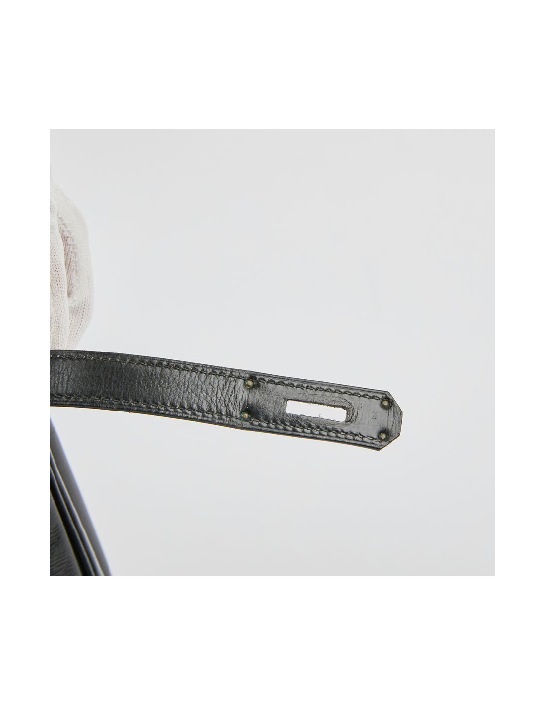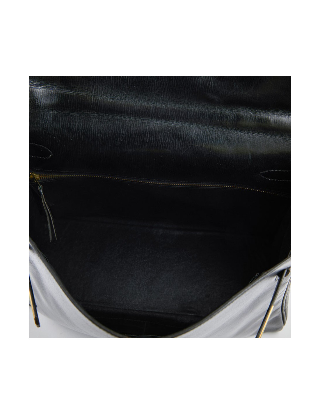 Il est en très bon état dû à son grand âge. On peut apercevoir quelques griffures à l'avant ainsi qu'à l'arrière. Egalement une légère usure des coins. Le cuir est légèrement craquelé sur l'anse. L'intérieur est en cuir noir, avec trois poches plates.