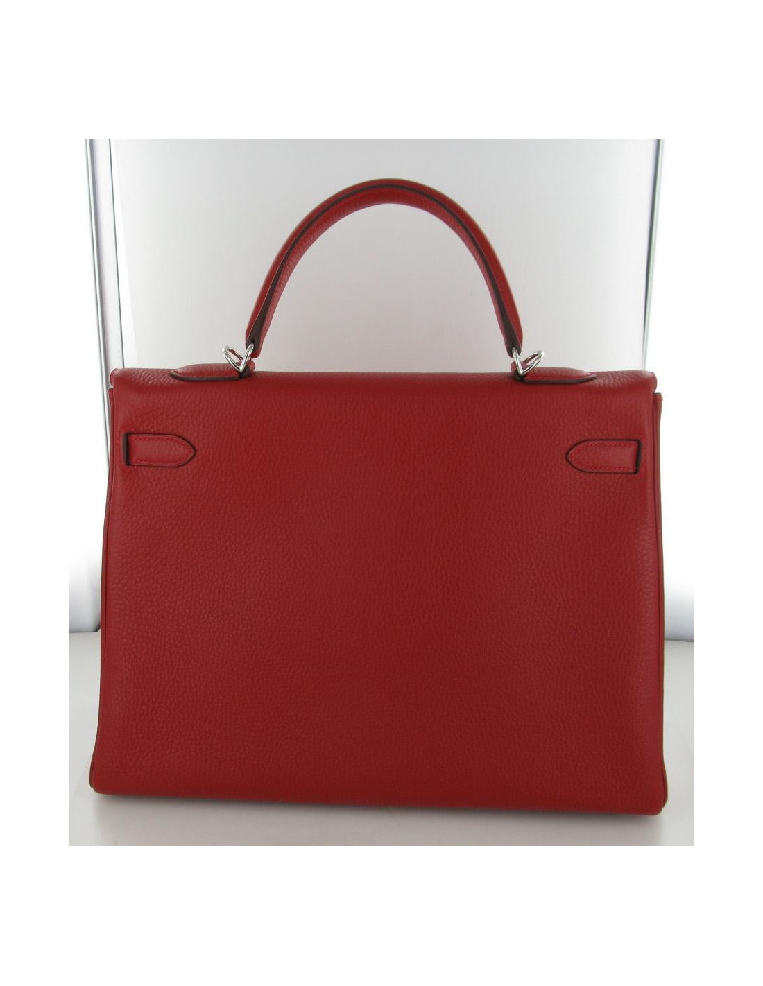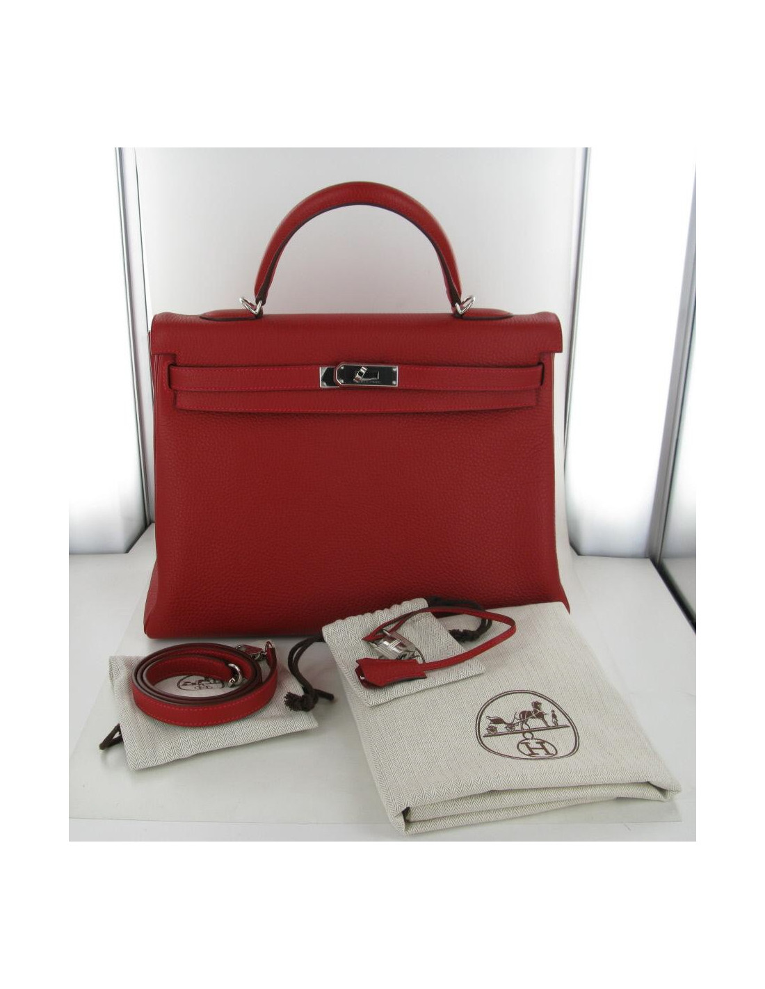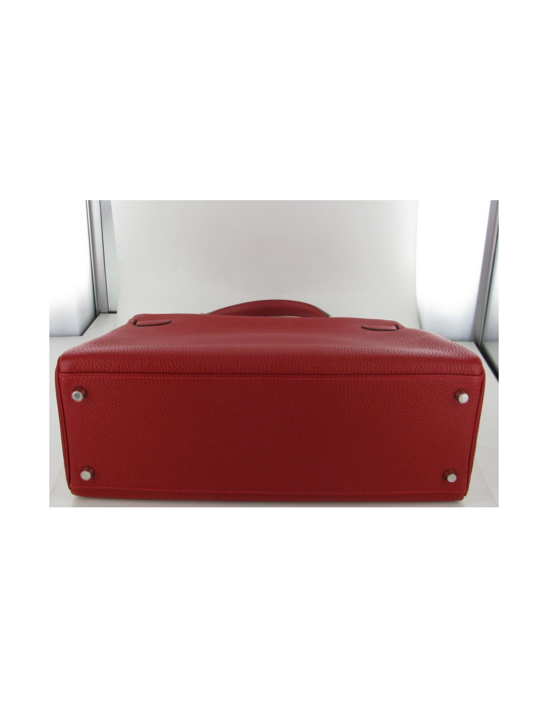KELLY II 35 HERMES taurillon Incontournable Kelly II 35 HERMES en cuir taurillon clémence rouge casaque et bijouterie argent palladié.