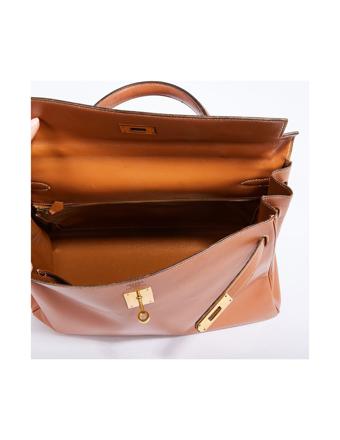 Kelly 35 HERMES caramel vintage en cuir box détails :