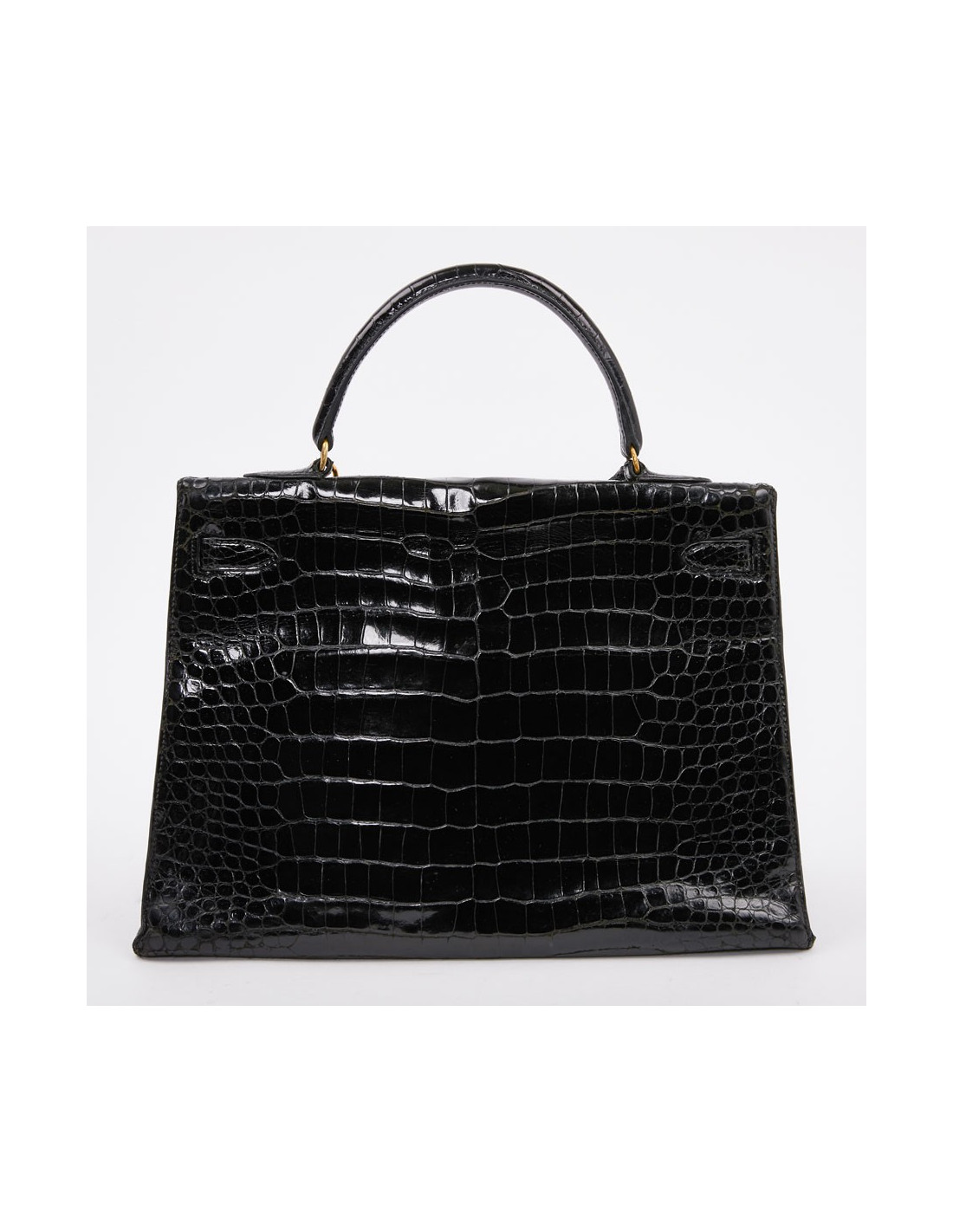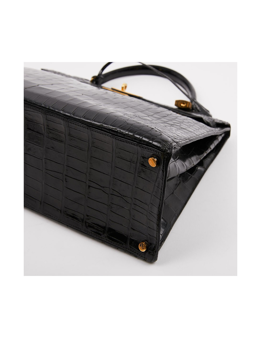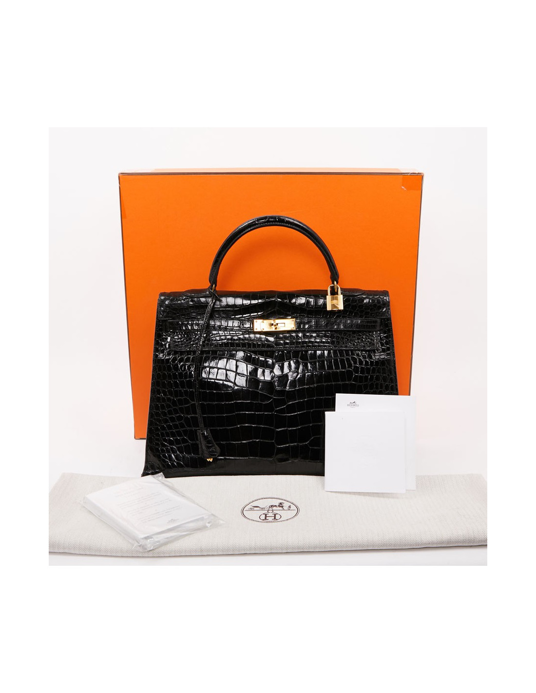 Sac Kelly 35 crocodile HERMES noir brillant :