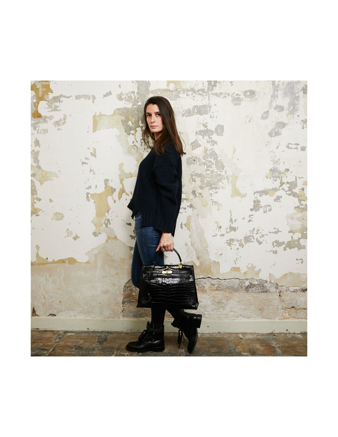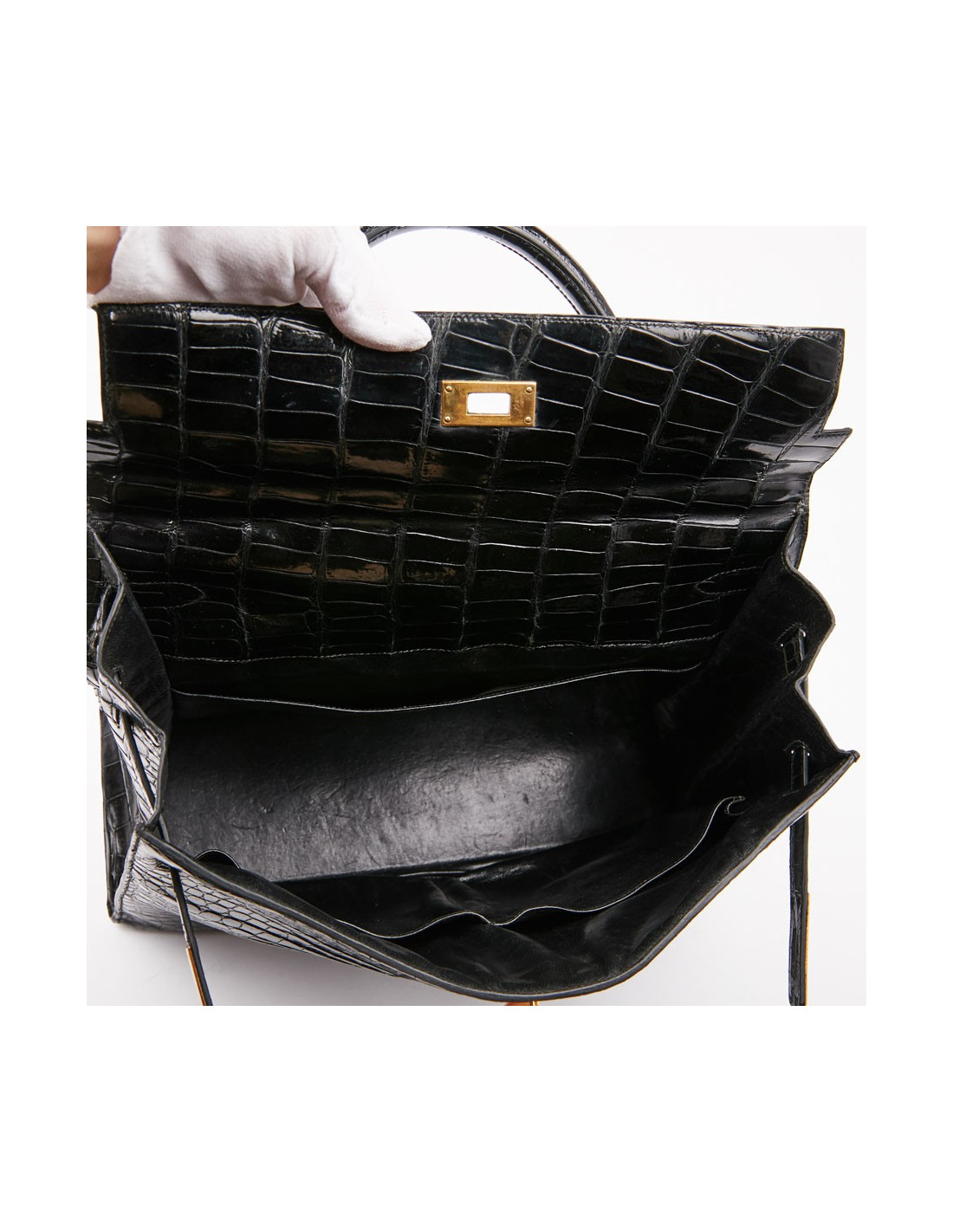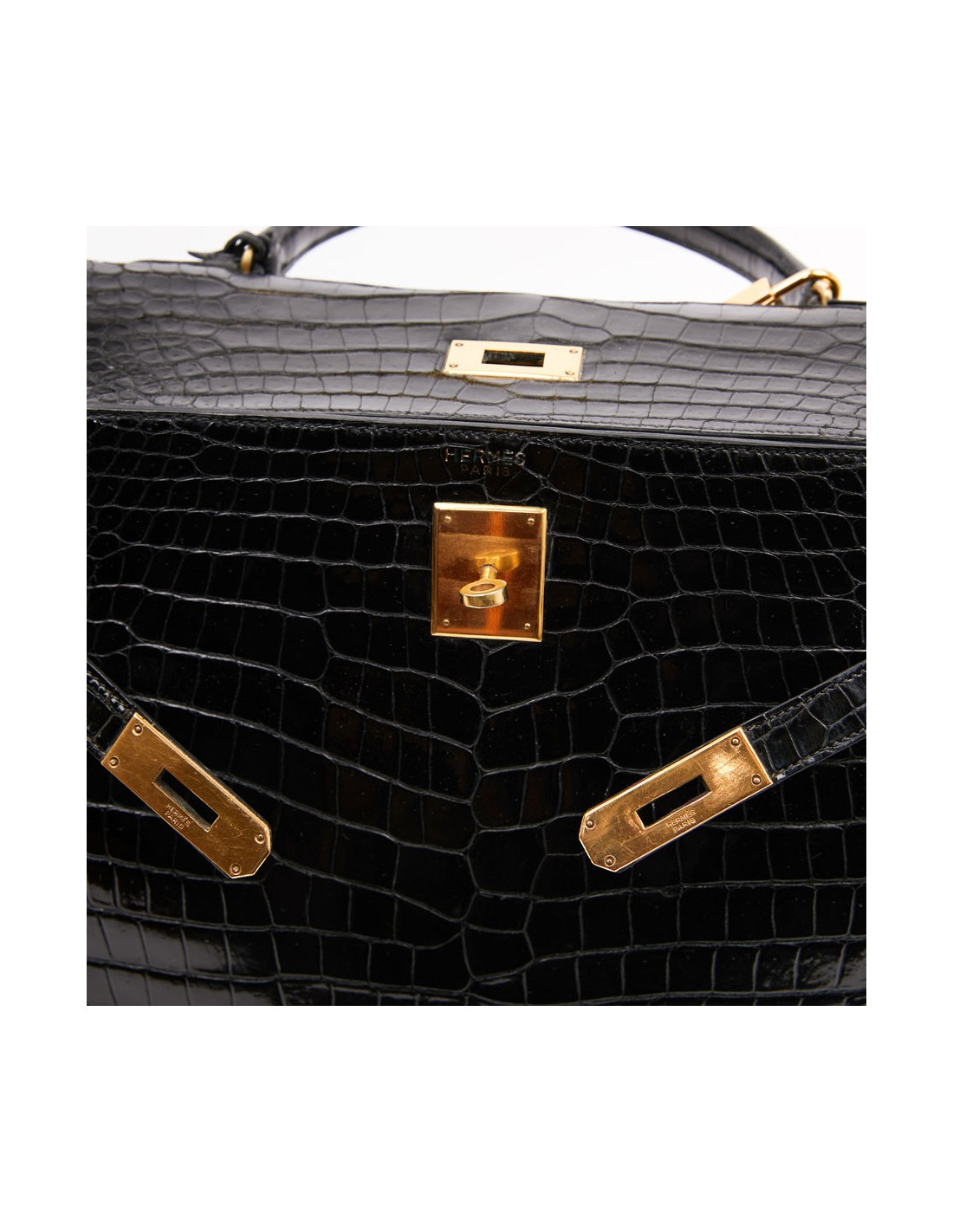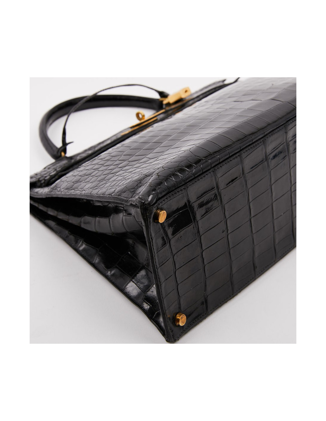 Sac Kelly 35 crocodile HERMES noir brillant :