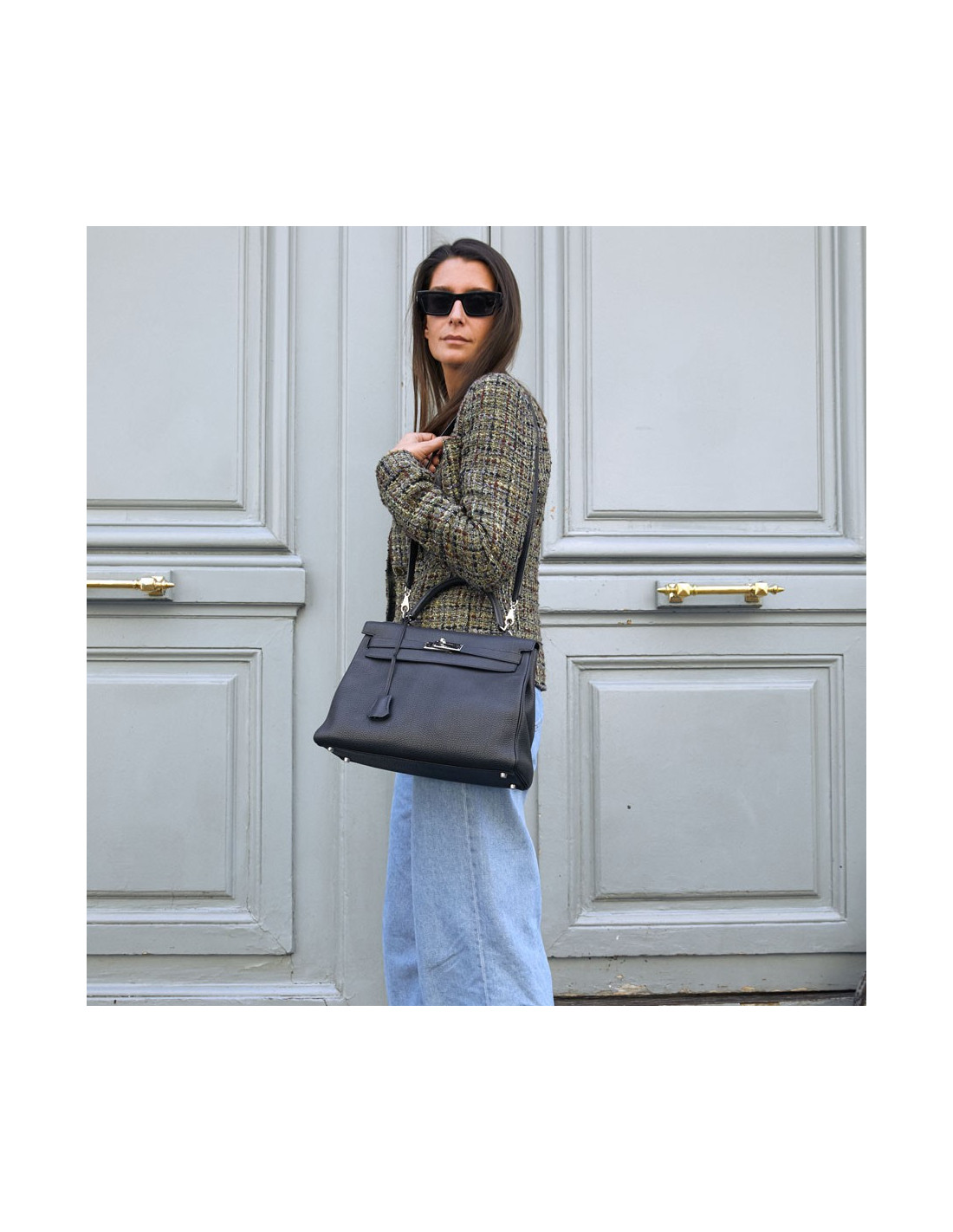 Kelly HERMES noir Togo noir avec bandoulière
