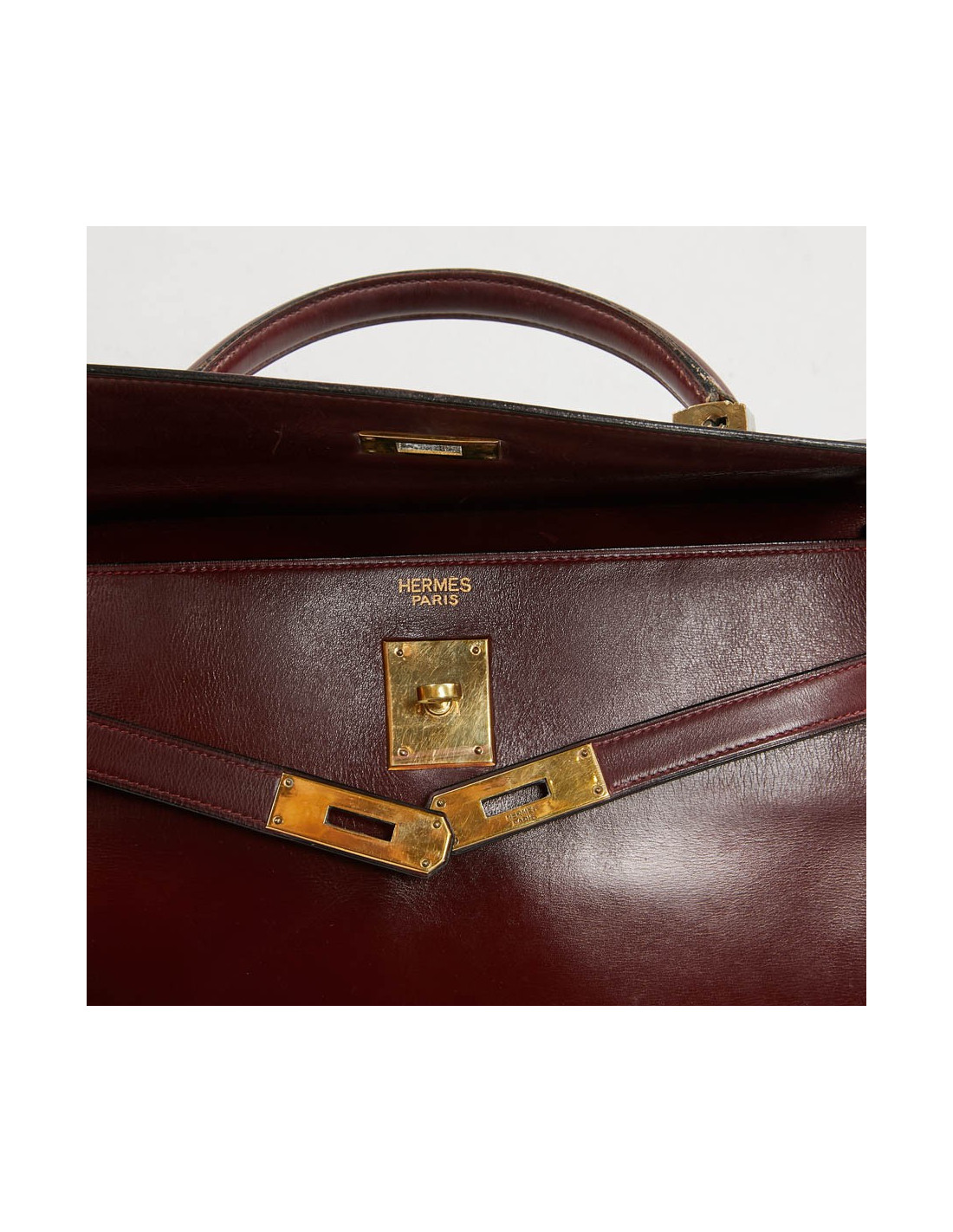 Sac emblématique de la Maison HERMES depuis 1956. Ce sac à main Kelly 32 vintage est en cuir box rouge H. La bijouterie est plaqué or.