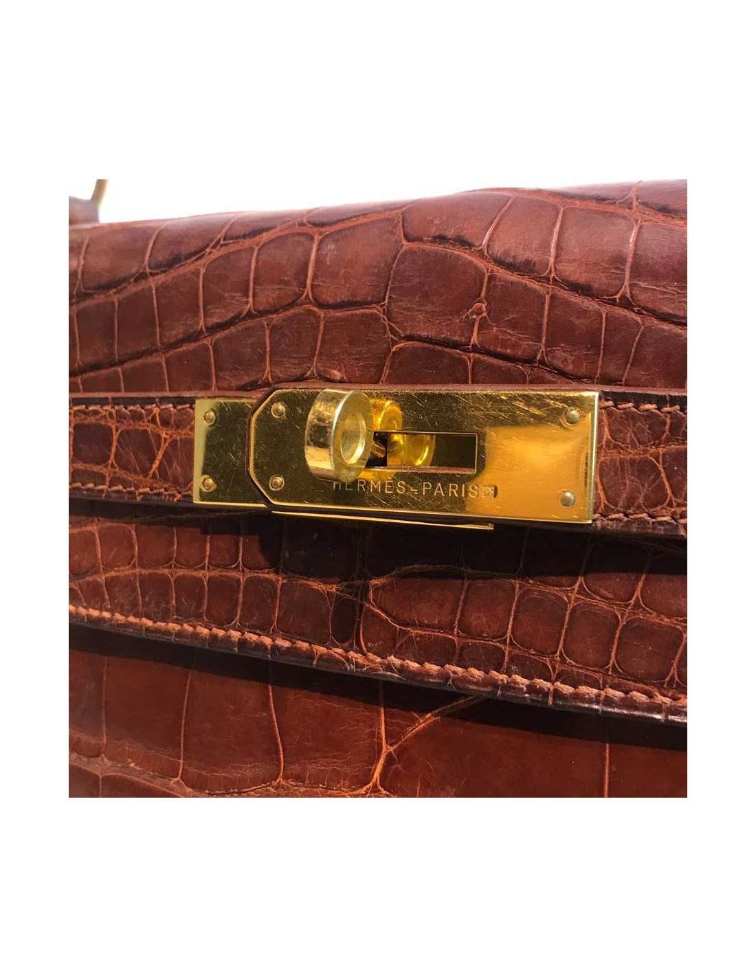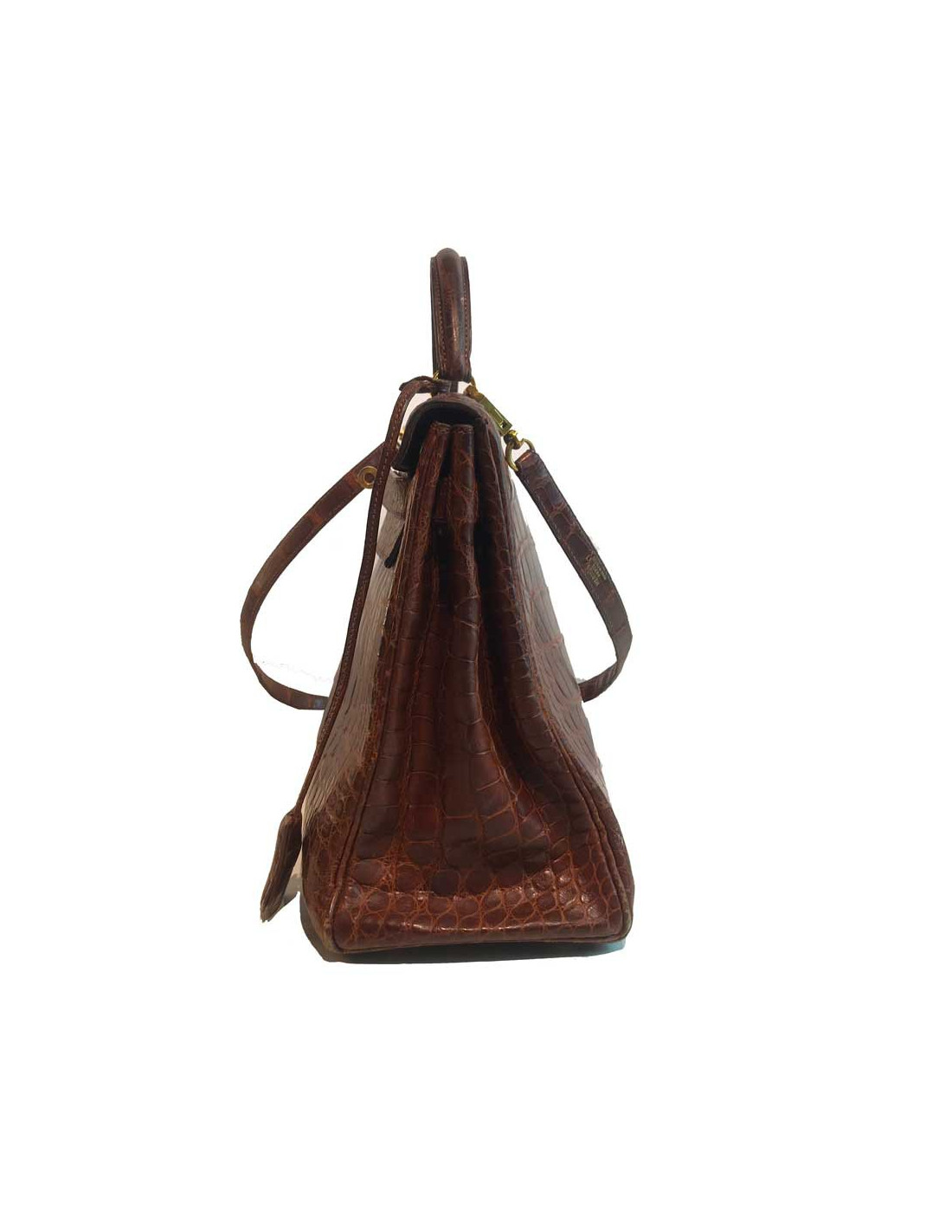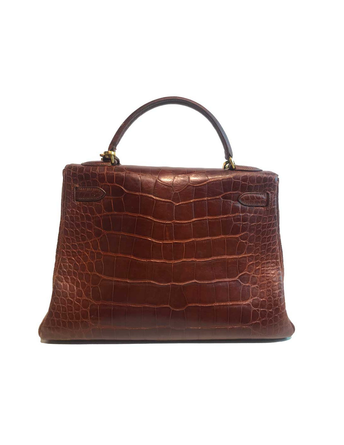 Kelly 32 alligator mat HERMES marron bijouterie or