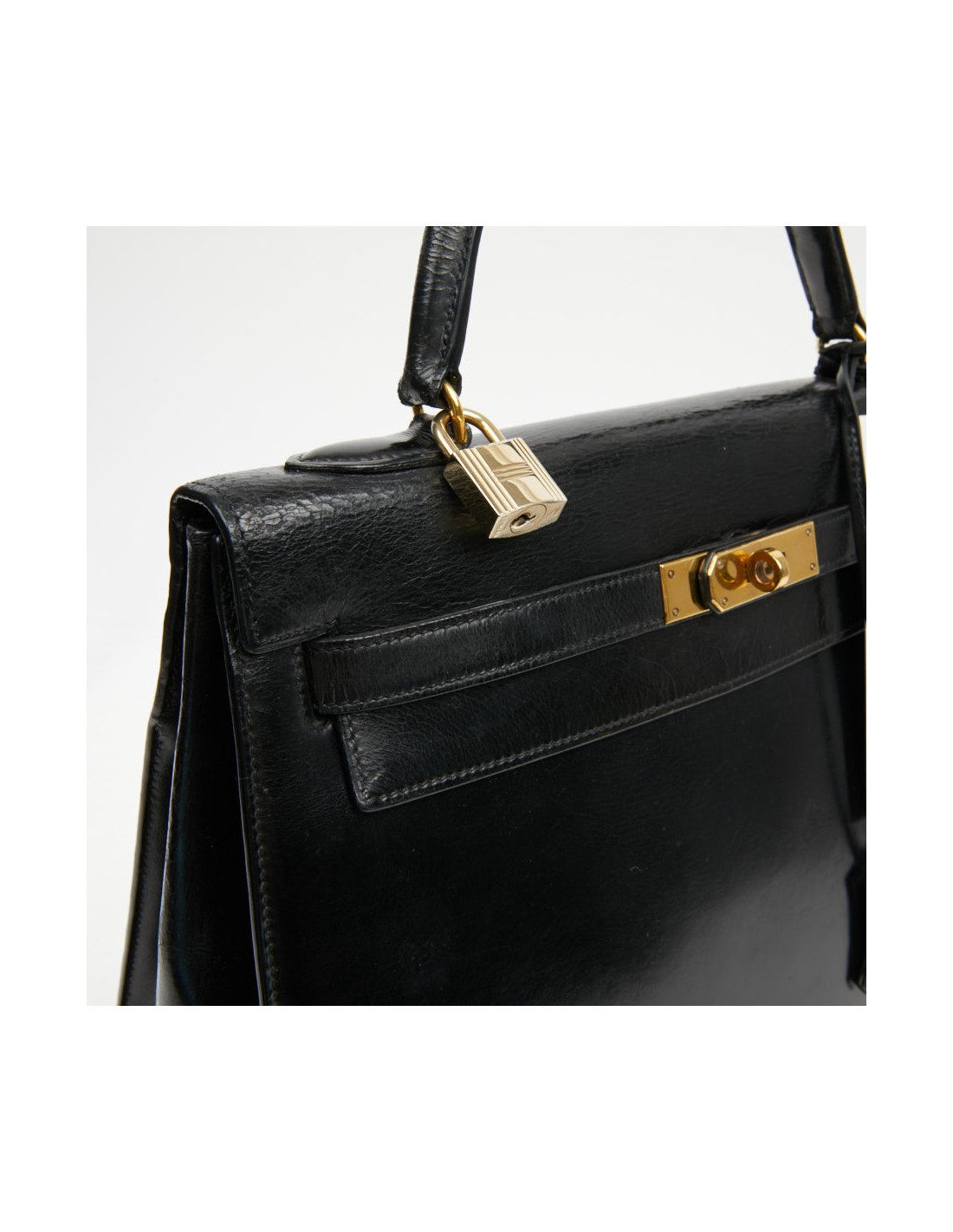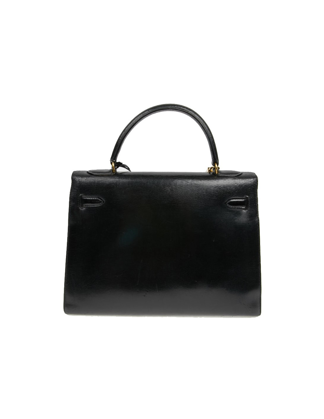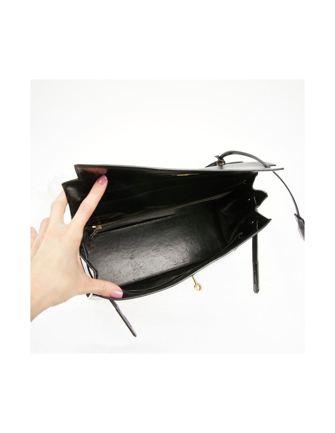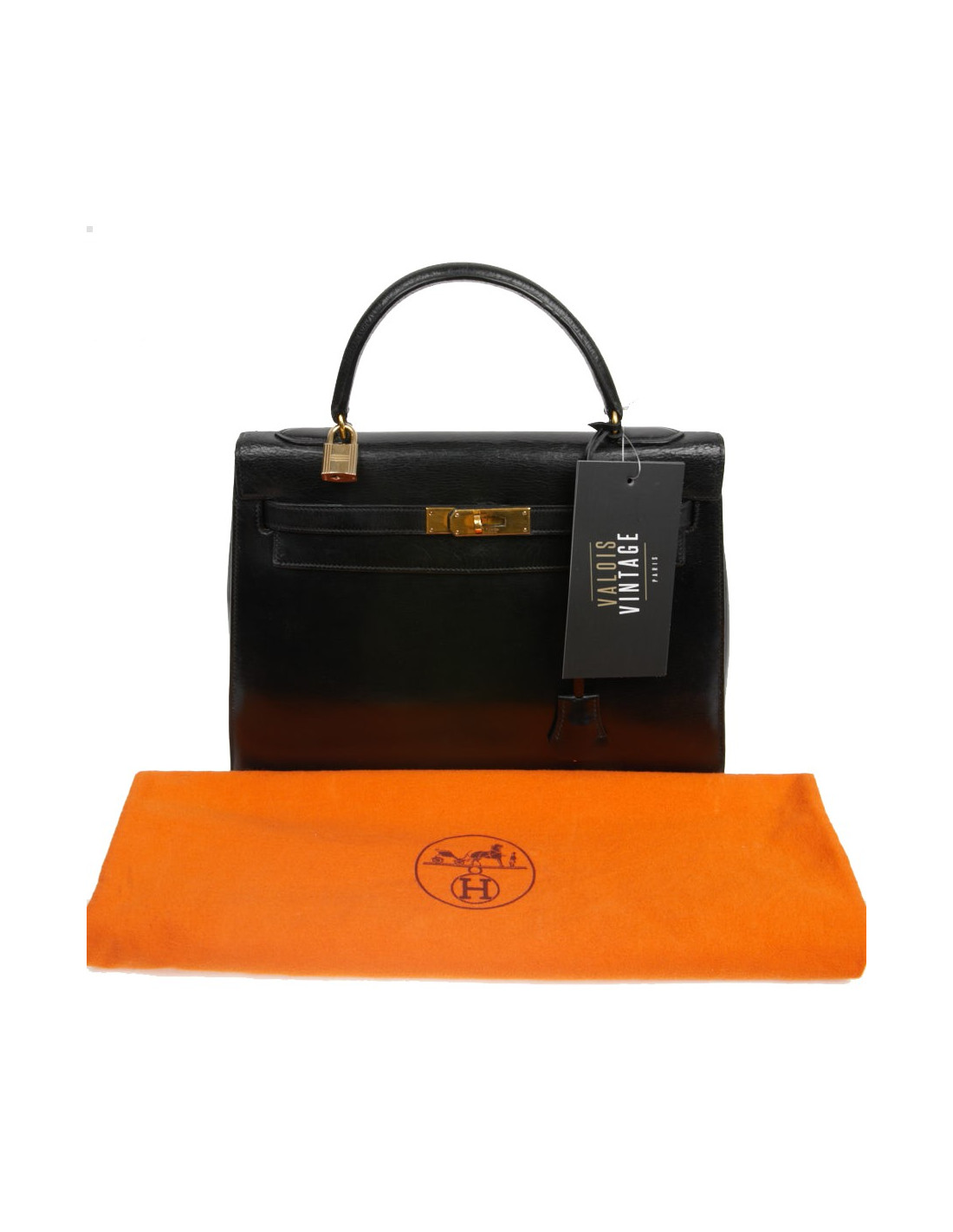 On ne décrit plus ce sac iconique de la Maison Hermès. Il est noir en cuir de veau box.