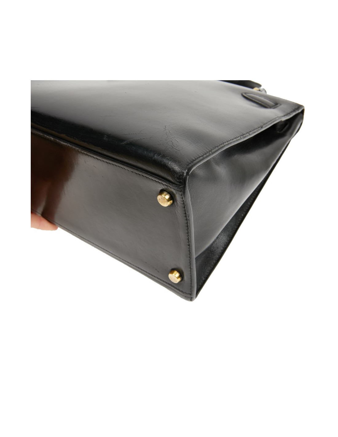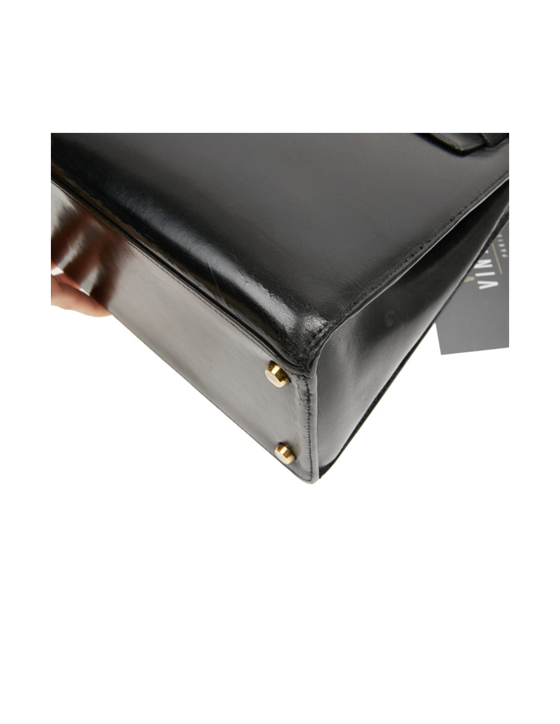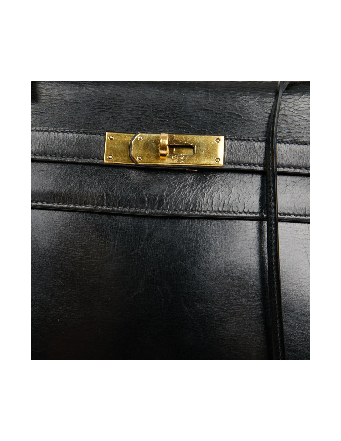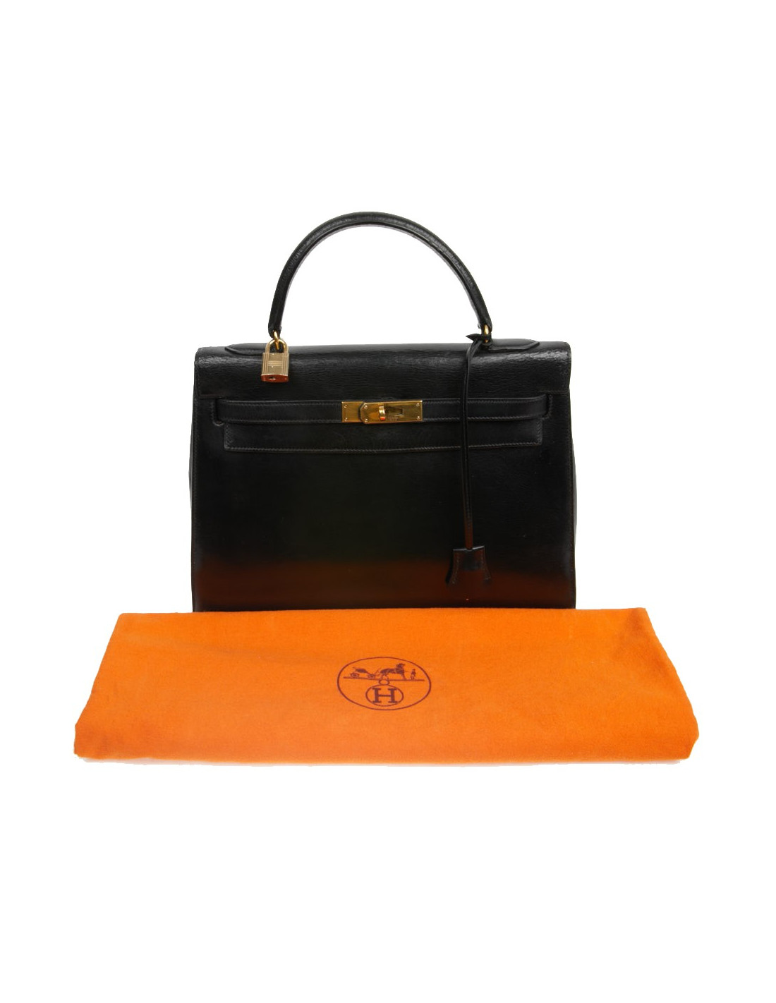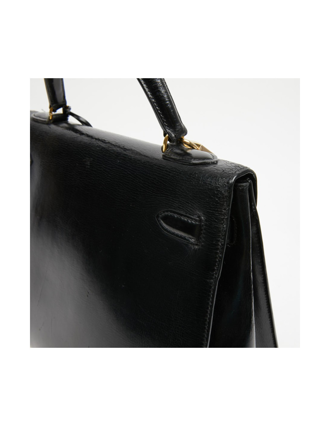 On ne décrit plus ce sac iconique de la Maison Hermès. Il est noir en cuir de veau box.