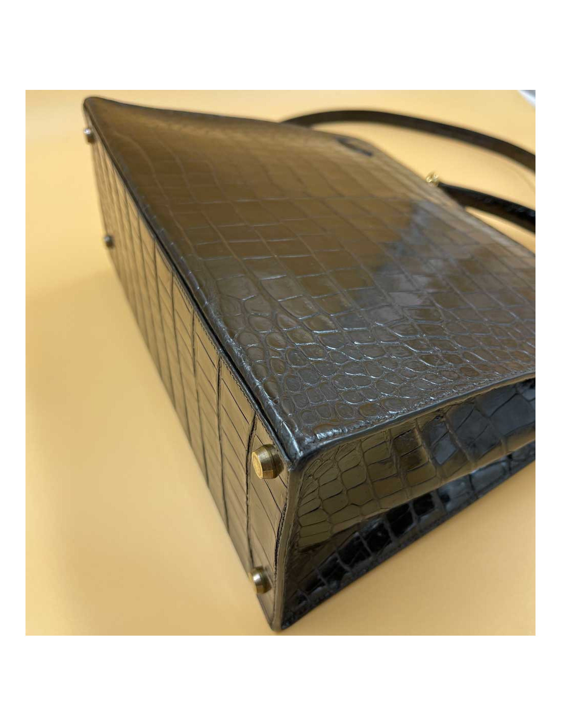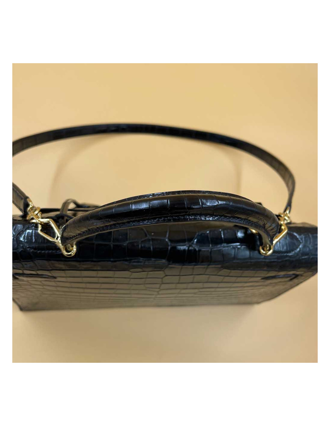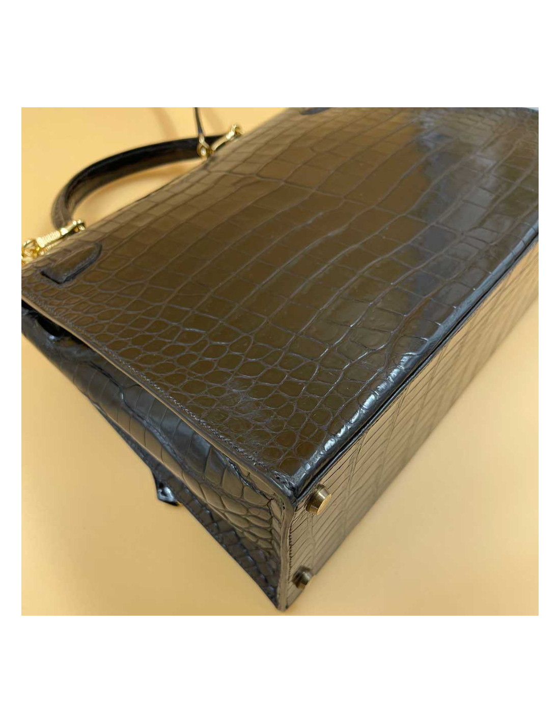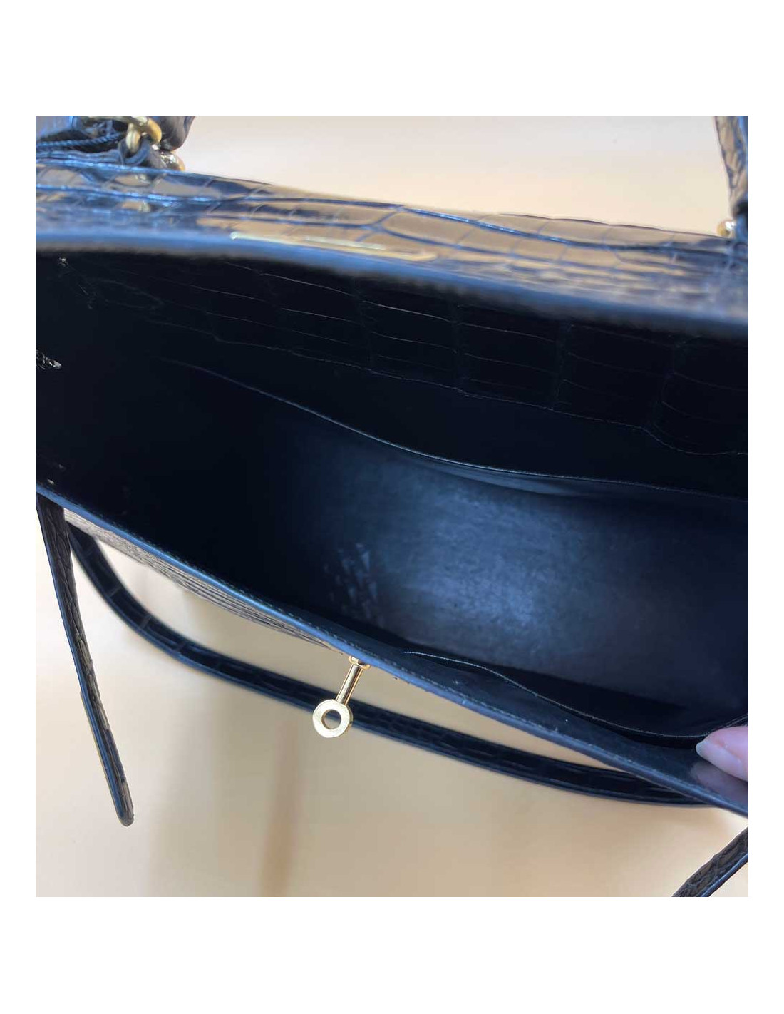 Magnifique sac Kelly sellier crocodile Porosus, en excellent état pour un sac de plus de 40 ans.
