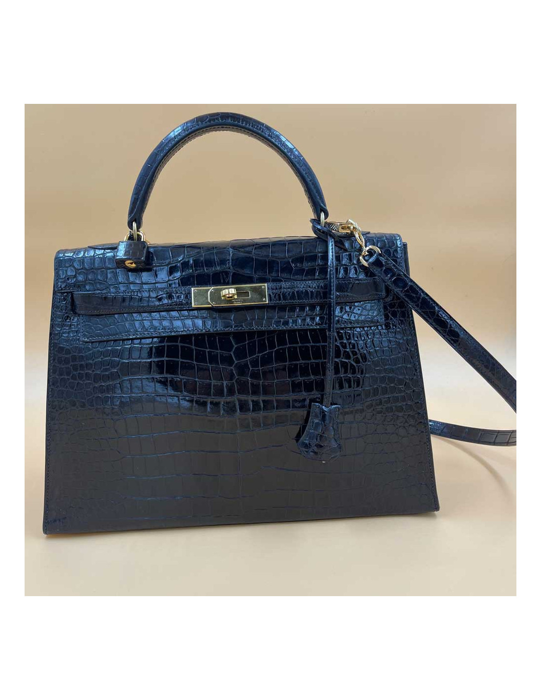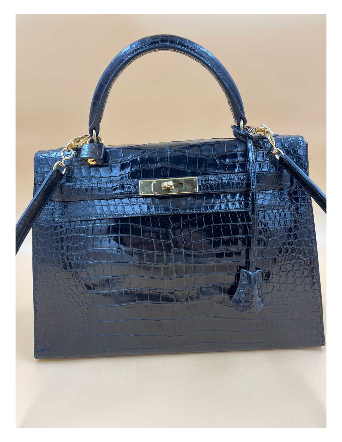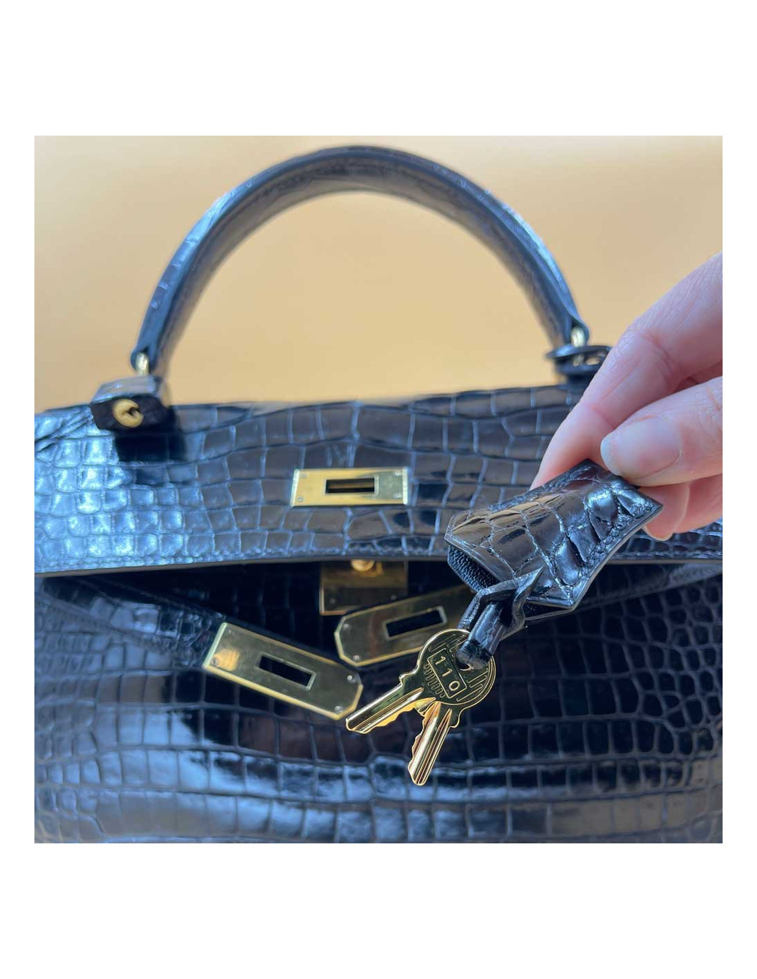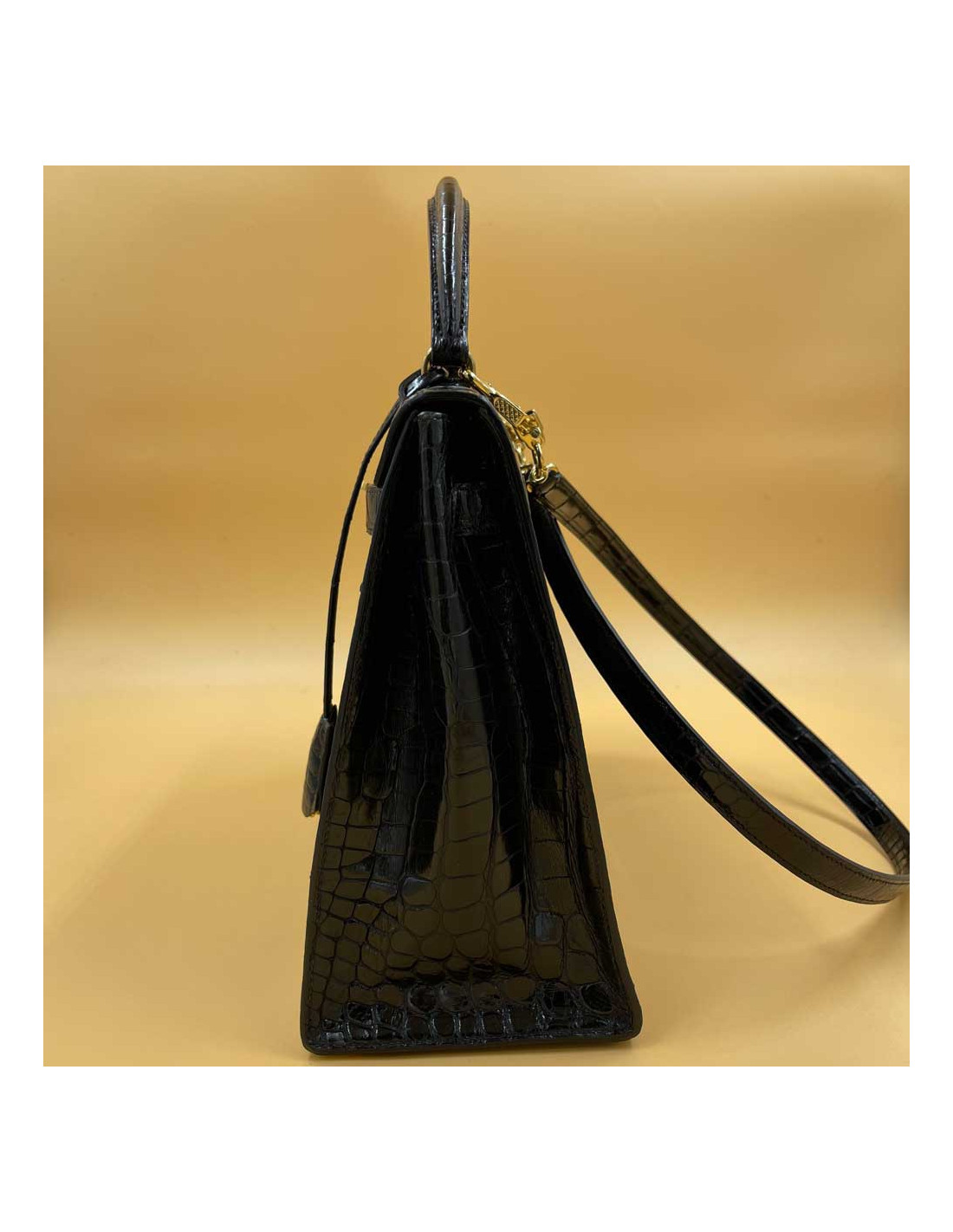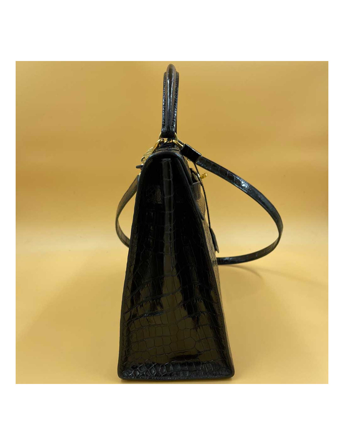 Magnifique sac Kelly sellier crocodile Porosus, en excellent état pour un sac de plus de 40 ans.