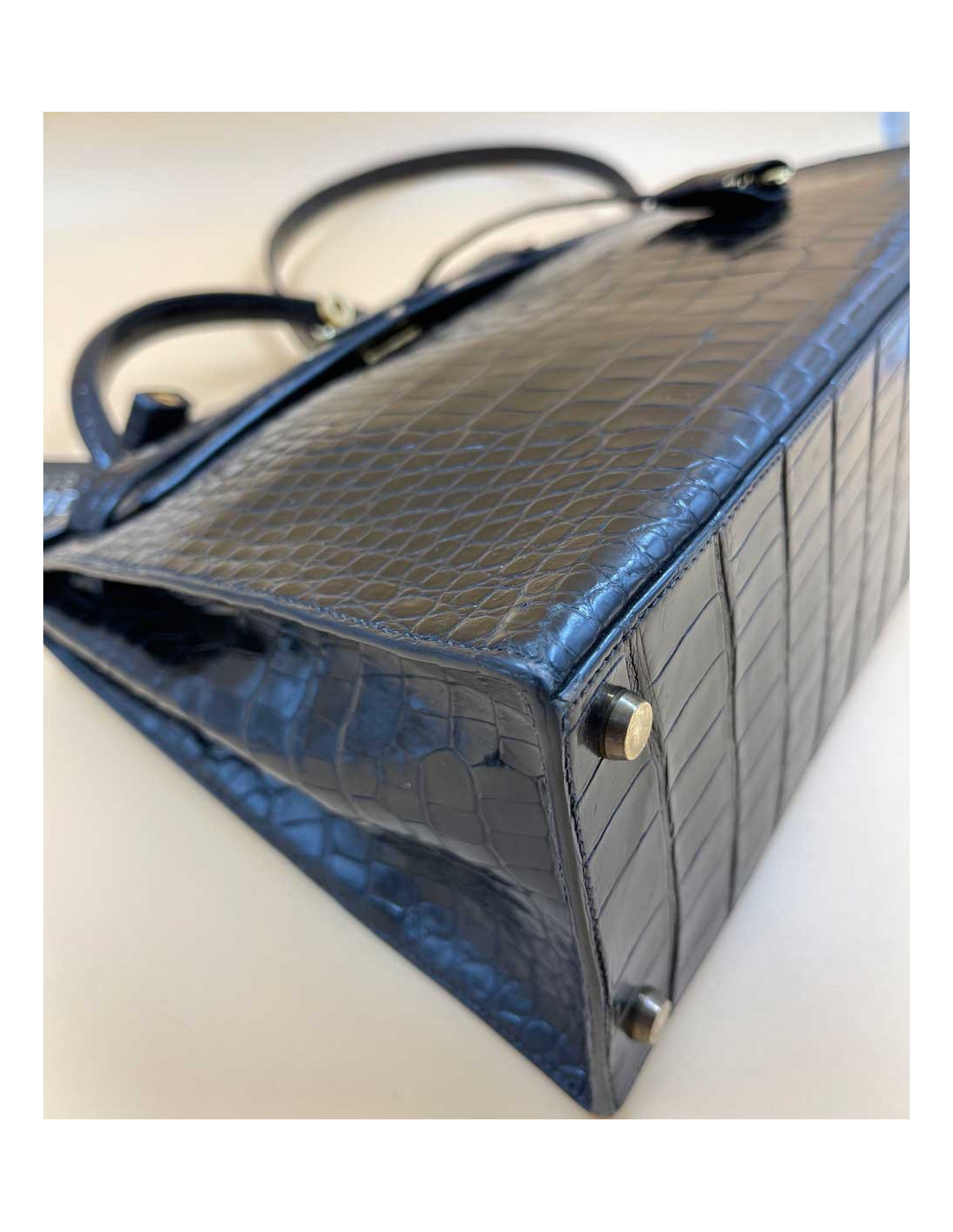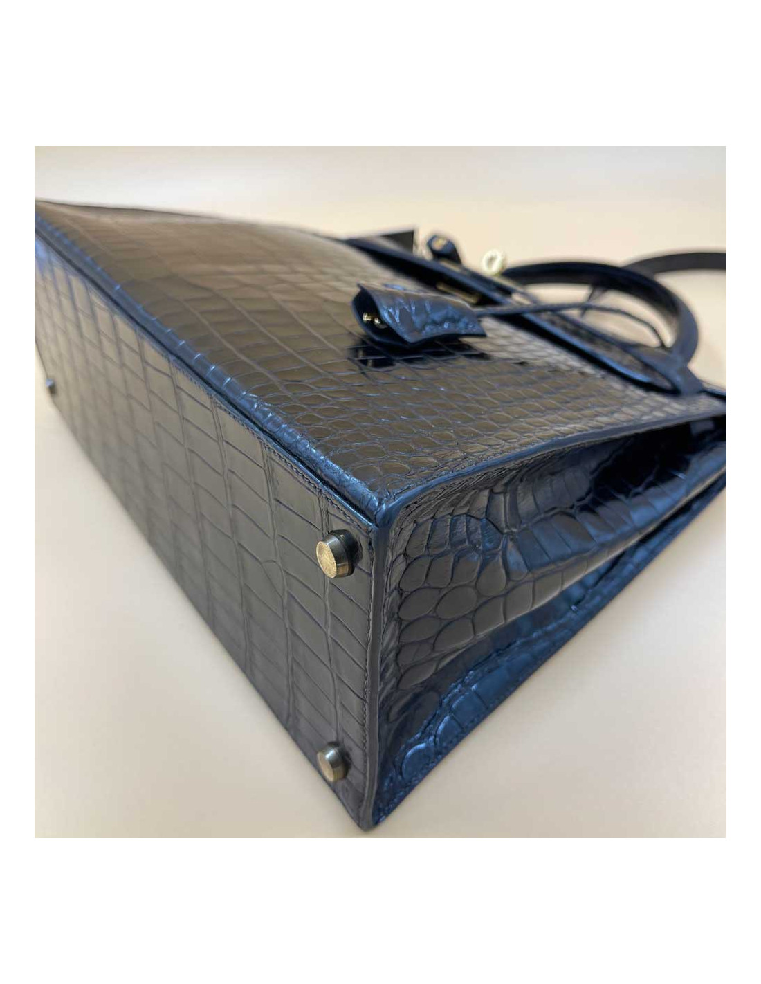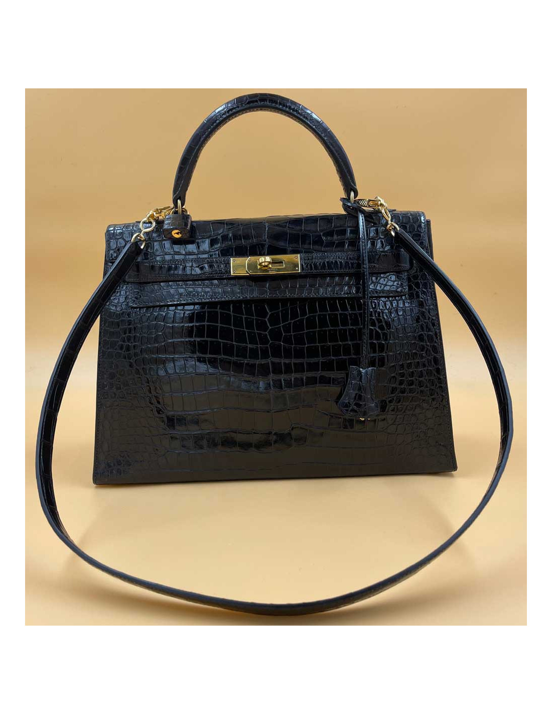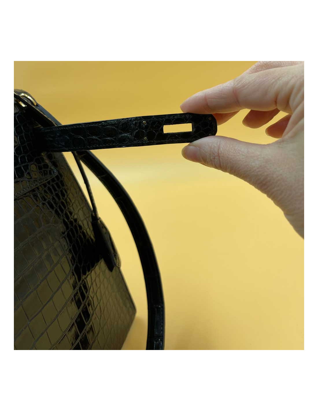 Magnifique sac Kelly sellier crocodile Porosus, en excellent état pour un sac de plus de 40 ans.