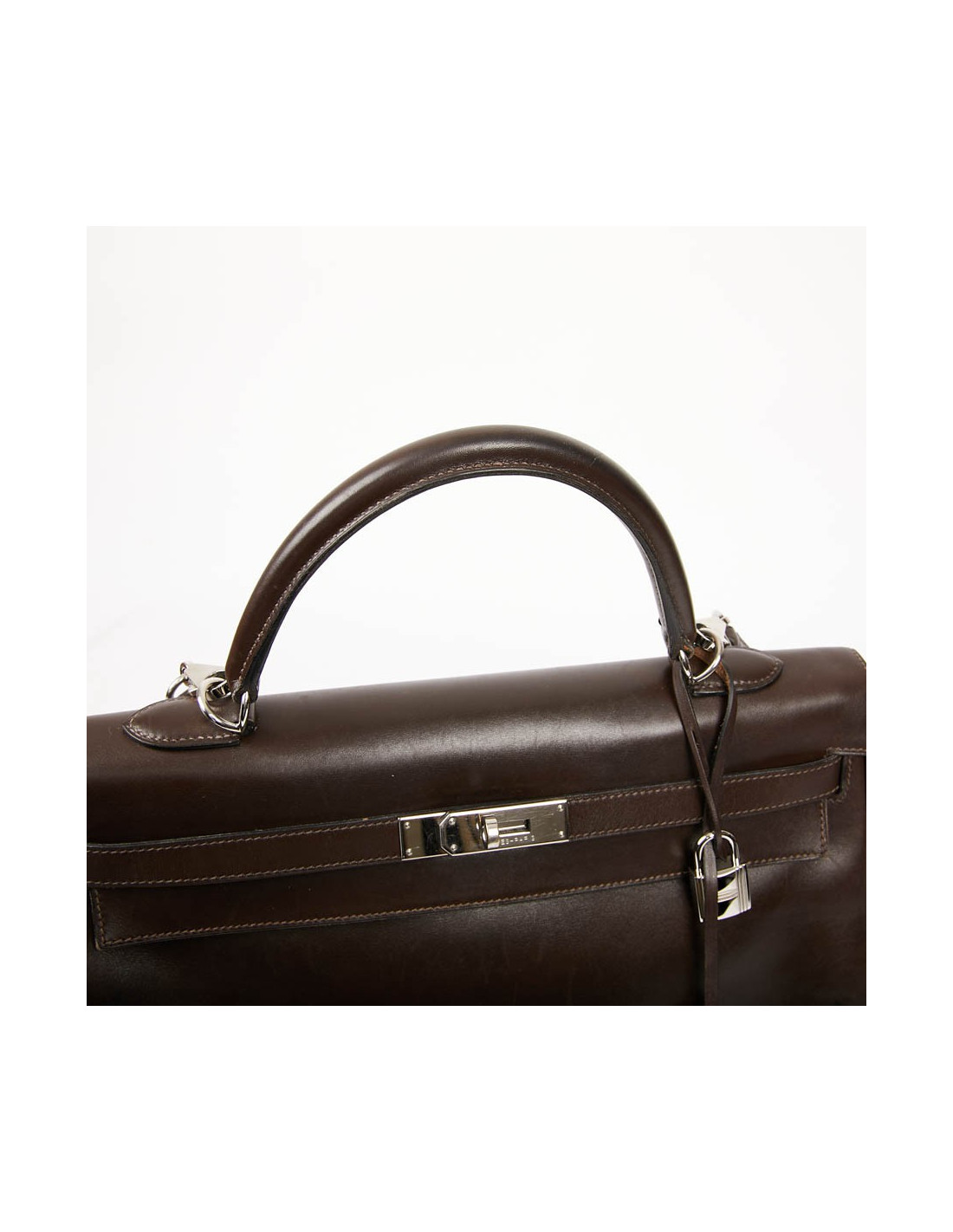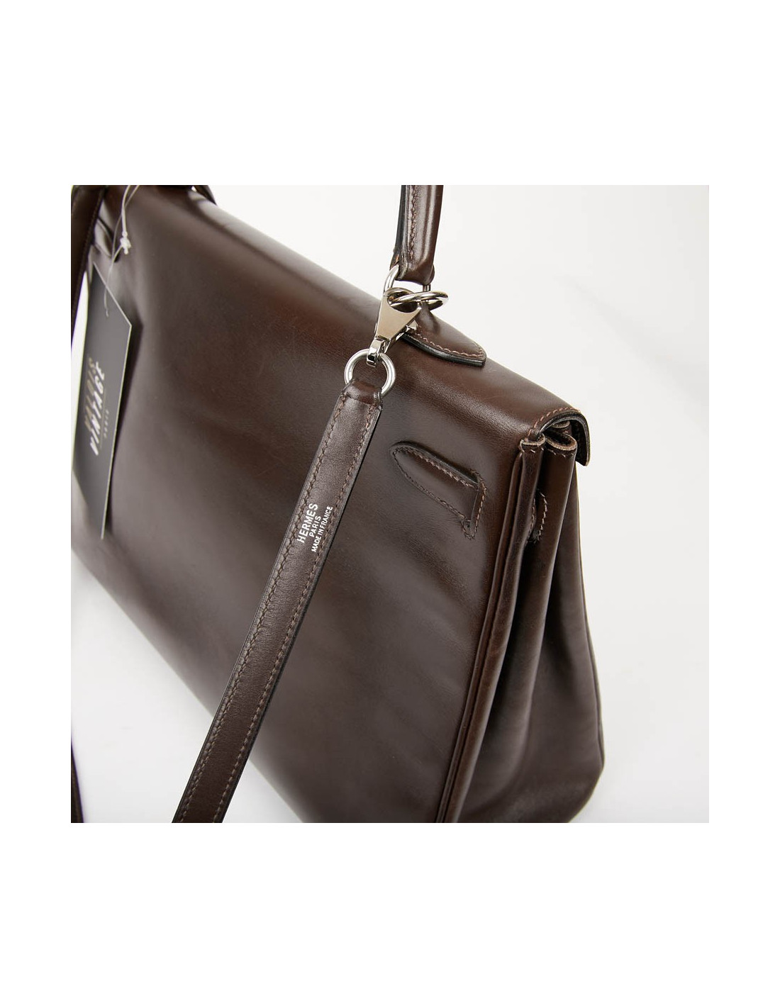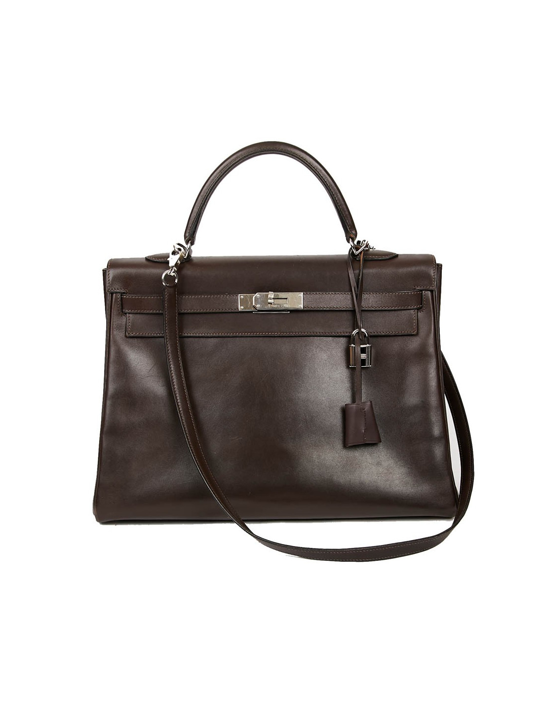 Sac Kelly 35 HERMES vintage en cuir Box marron