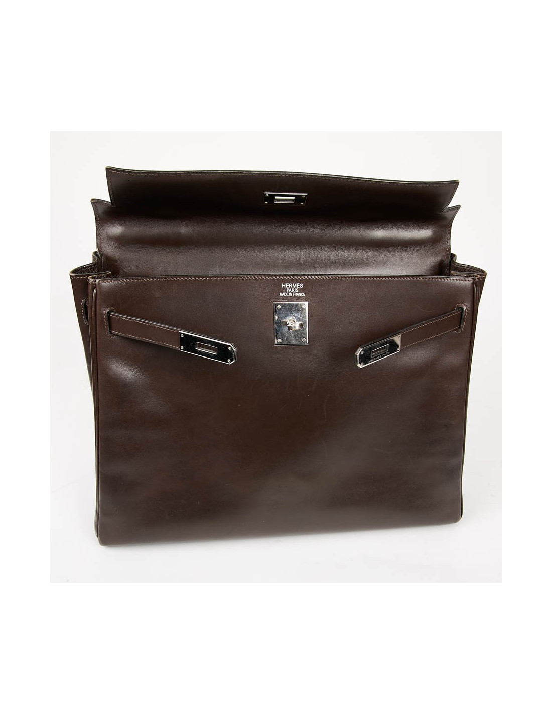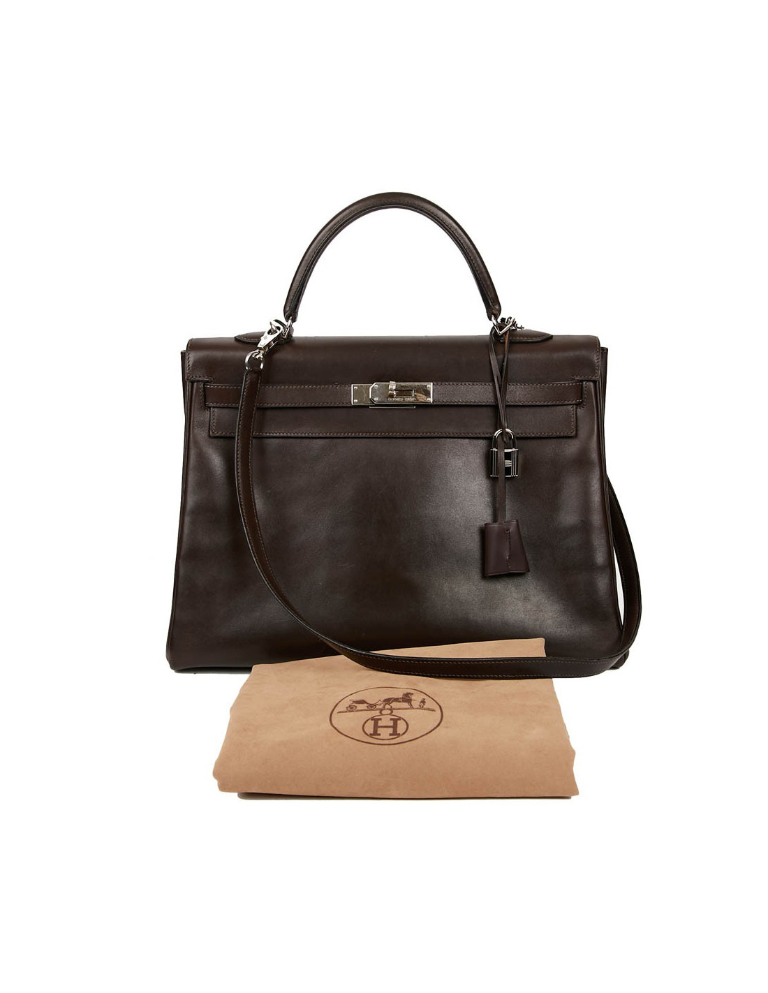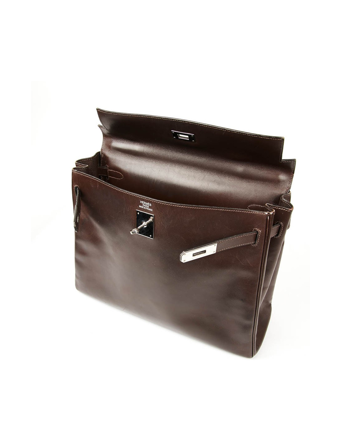 Sac Kelly 35 HERMES vintage en cuir Box marron