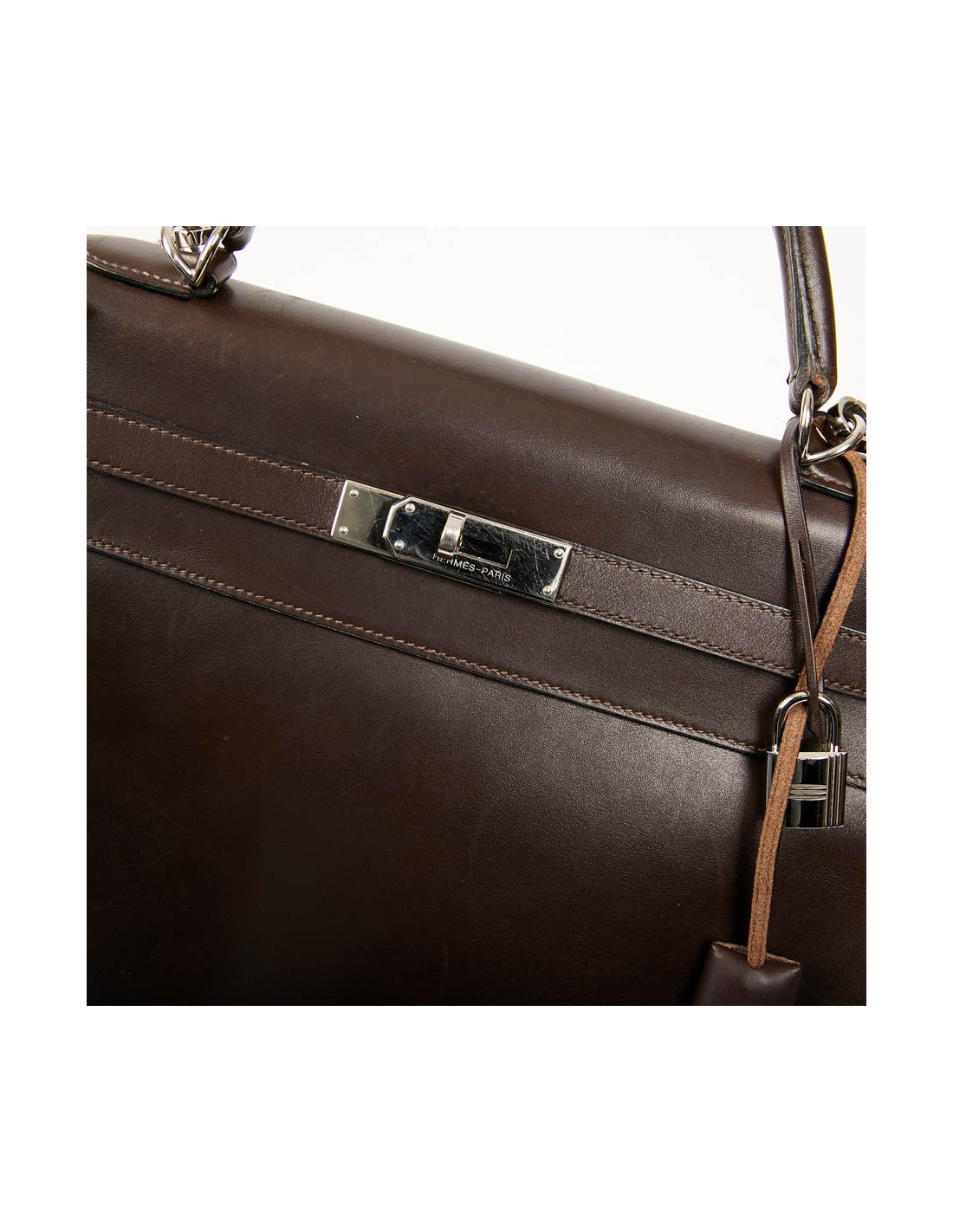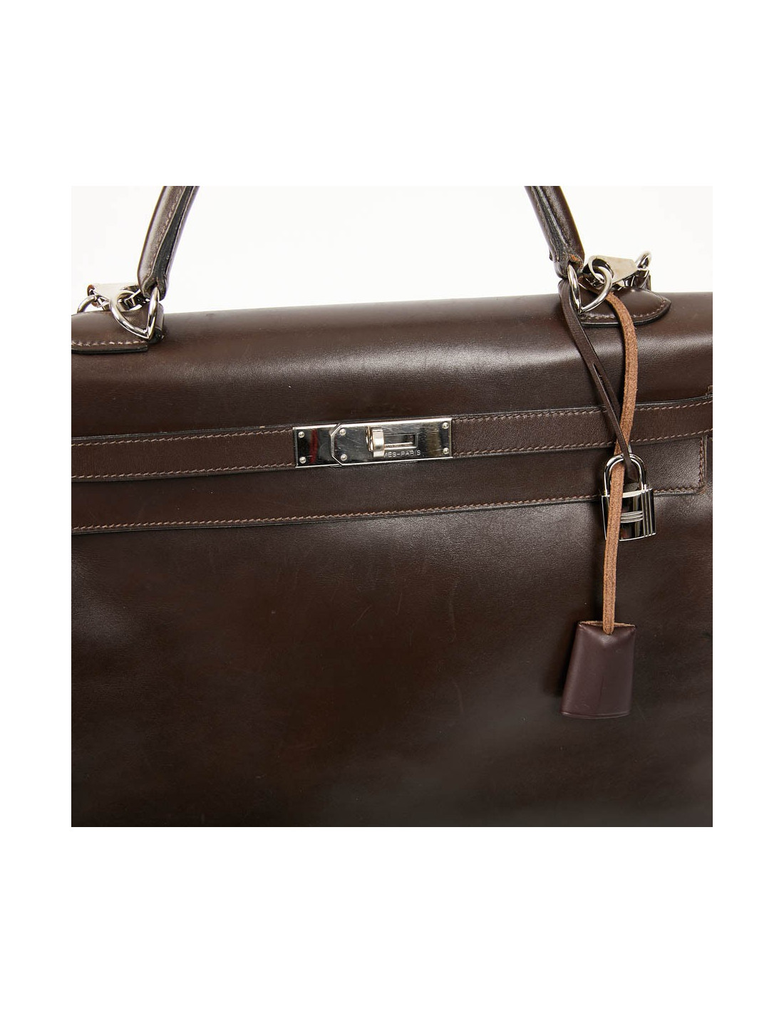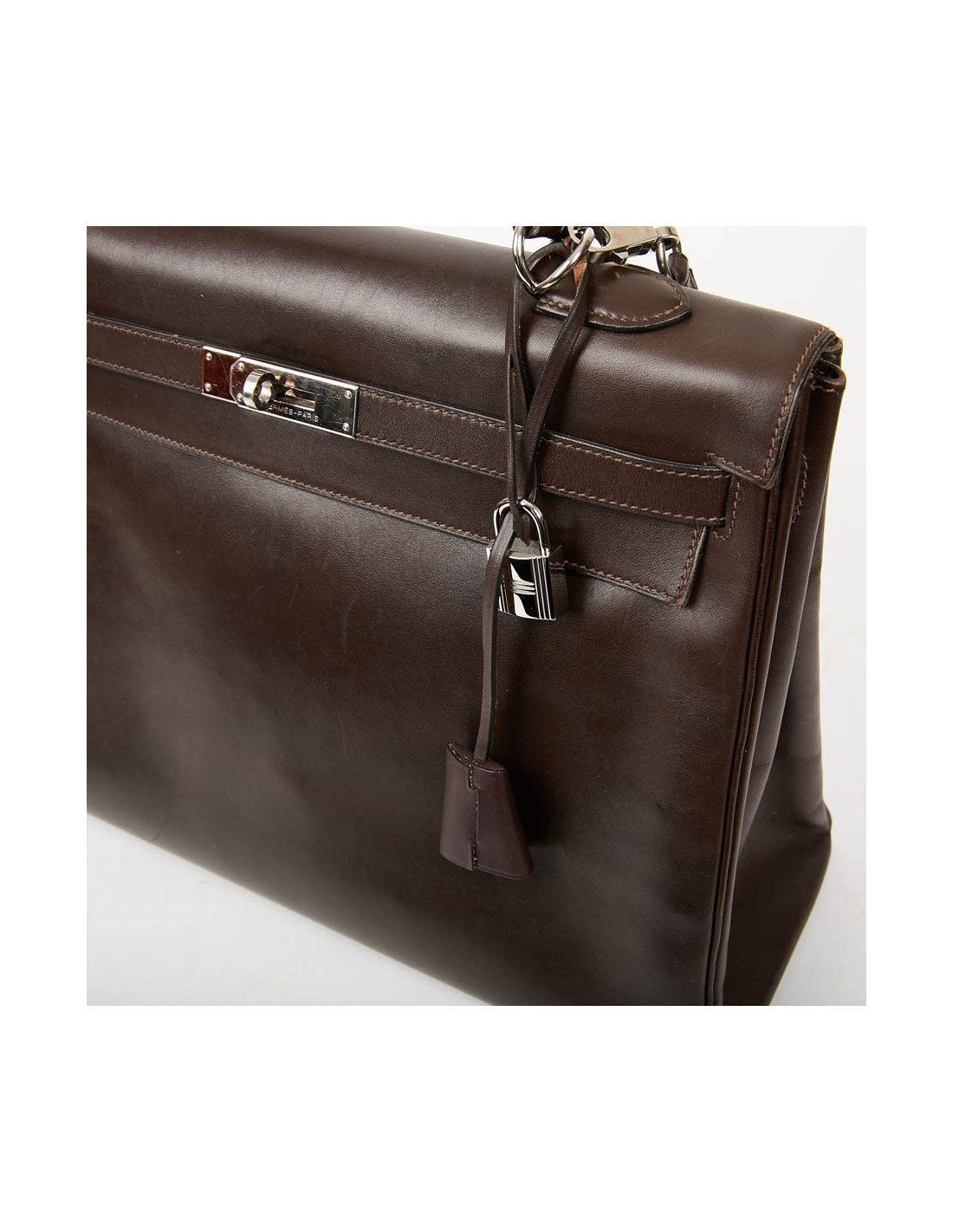 Il a la tirette, la clochette, les clés ainsi que le cadenas. Les attributs sont argent palladié avec des micro rayures, le cuir est légèrement marqué par endroits.