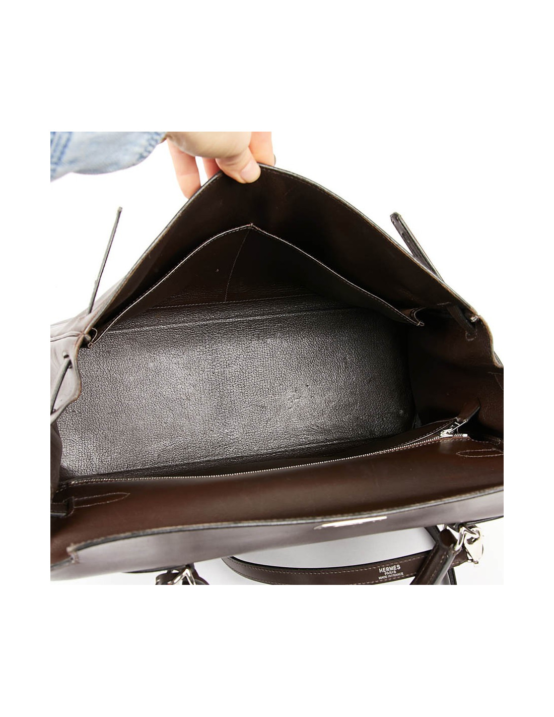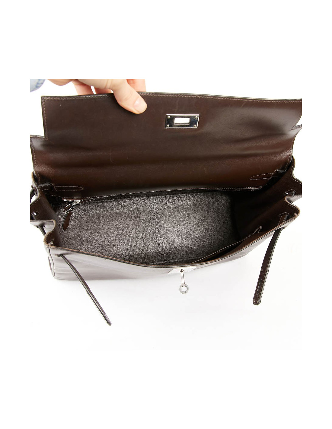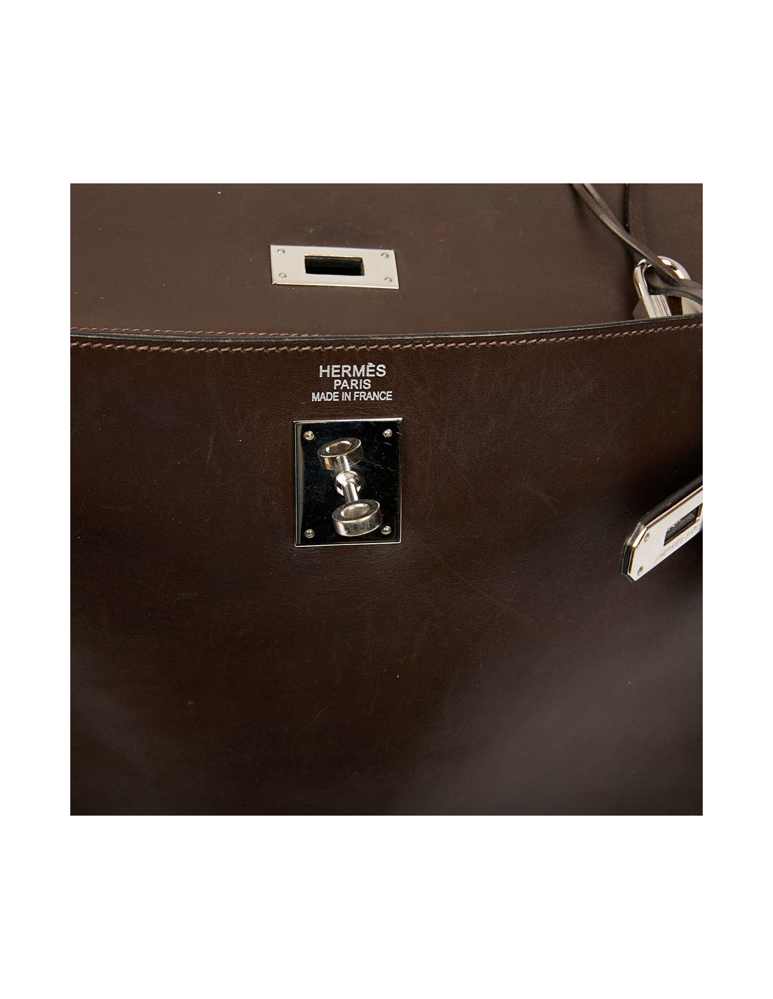 Il a la tirette, la clochette, les clés ainsi que le cadenas. Les attributs sont argent palladié avec des micro rayures, le cuir est légèrement marqué par endroits.