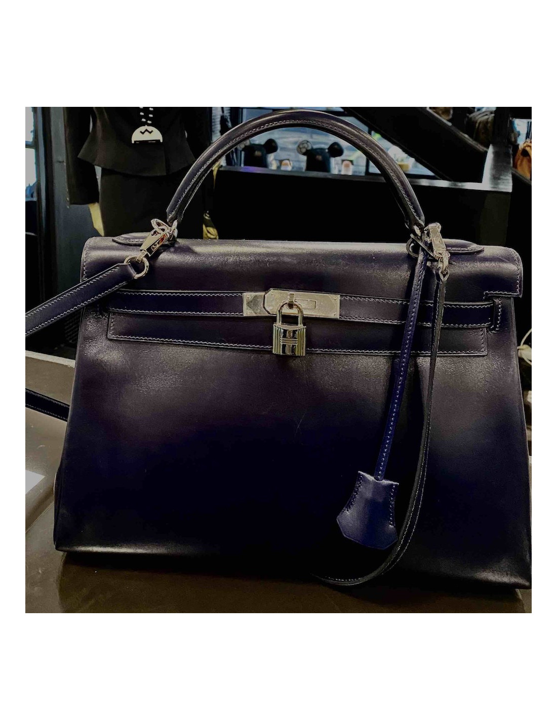 Sac à main Kelly II 32 HERMES box bleu nuit