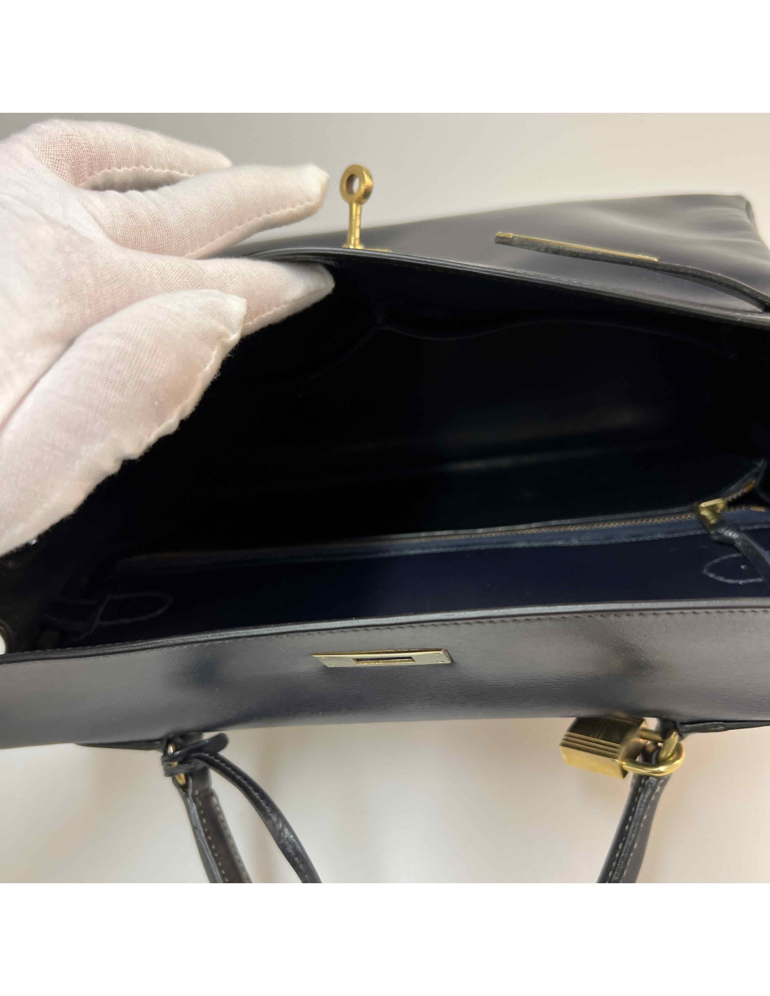 Sac Kelly 32 HERMES box bleu nuit vintageCondition : très bon état