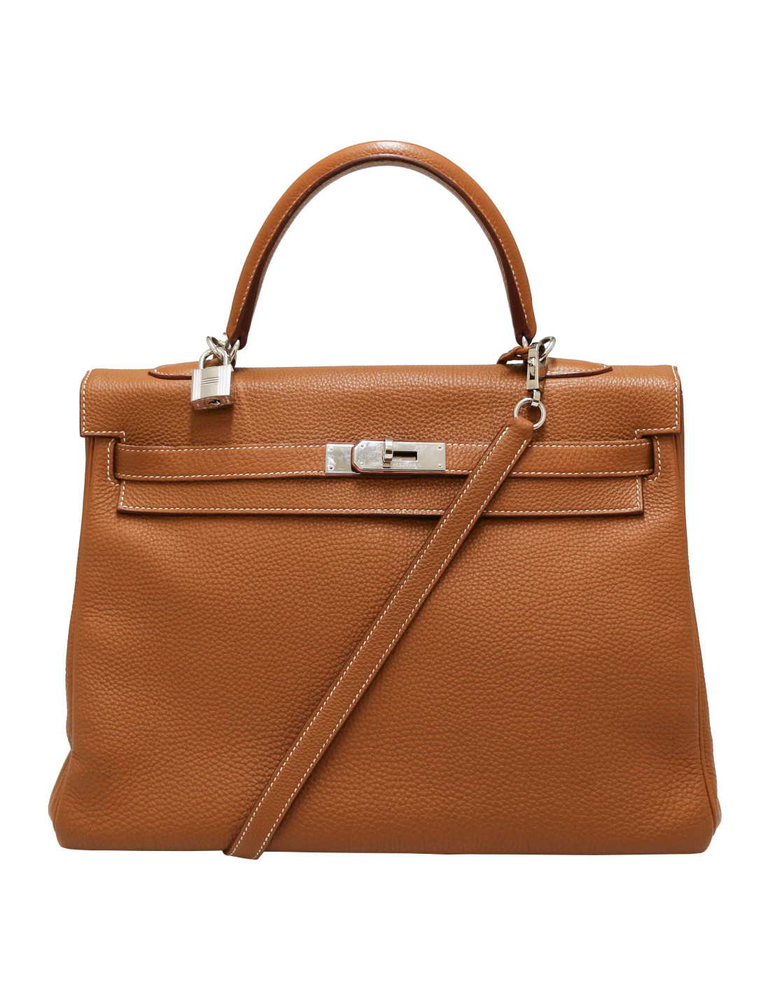 Sac Hermès Kelly 32 marron cuir Taurillon Clémence