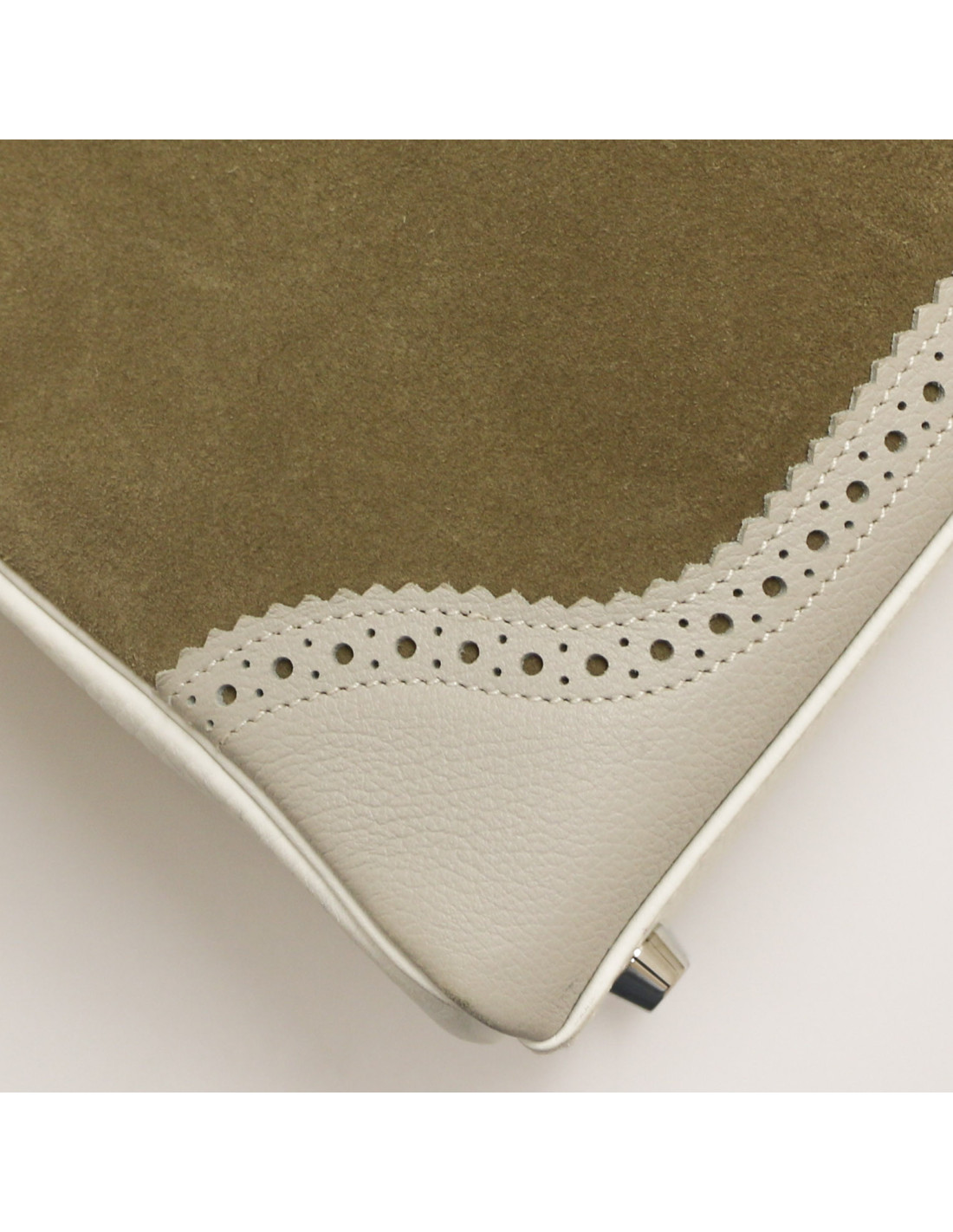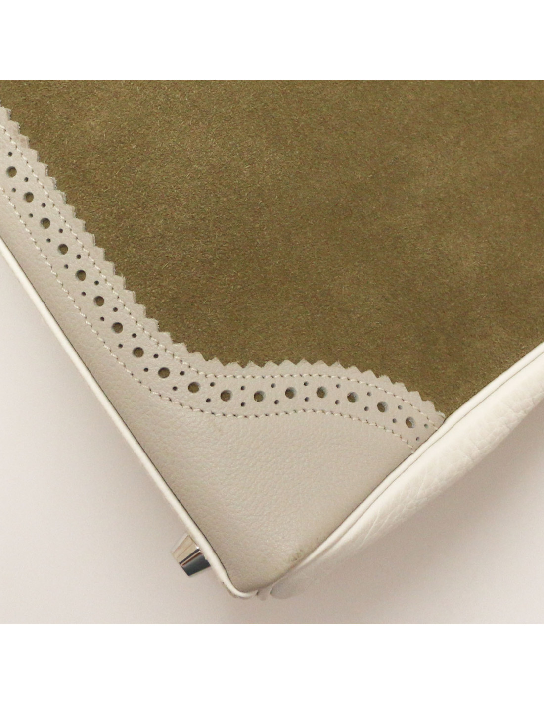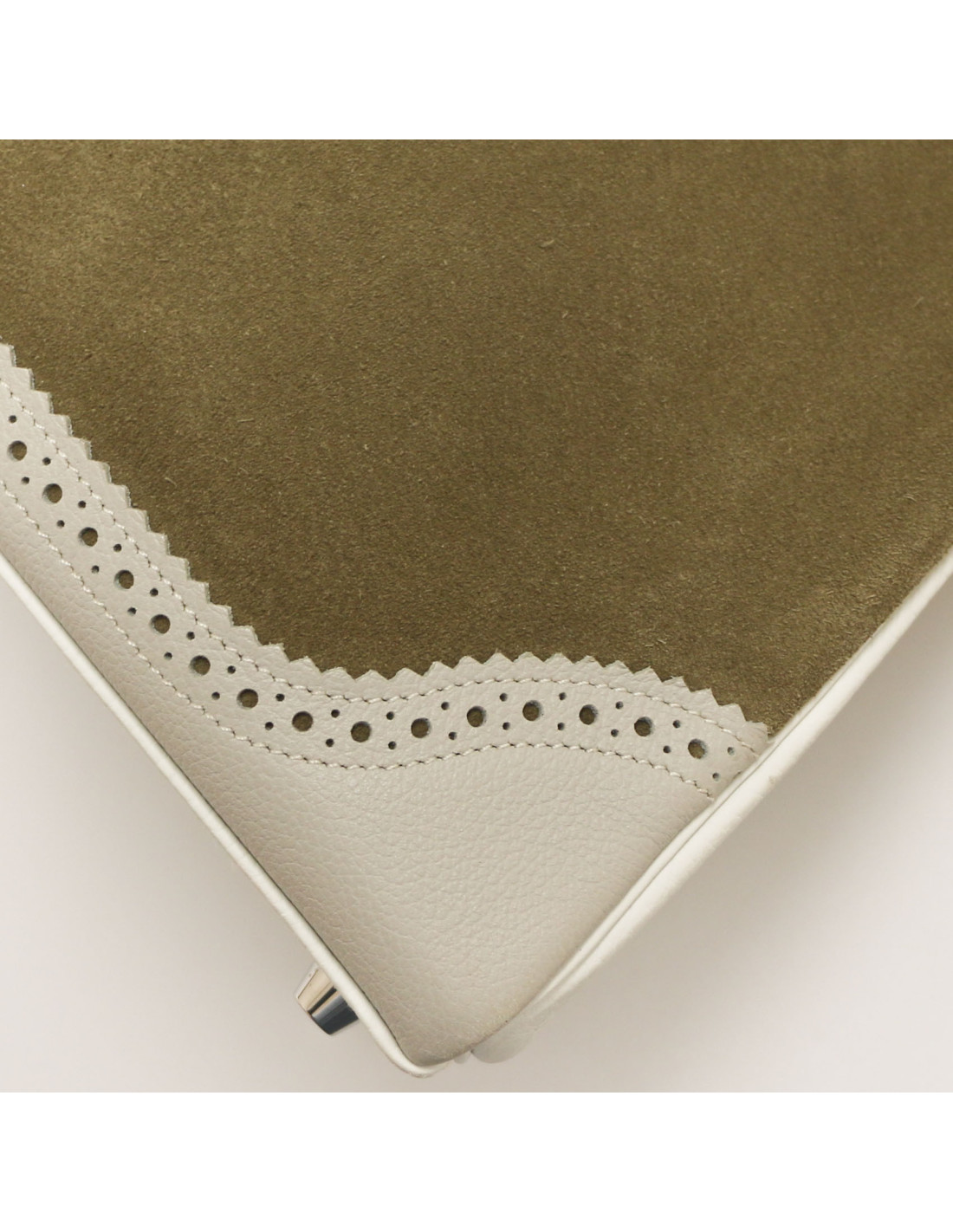 Intérieur : cuir blanc sous le rabat, gris perles sur l'ensemble de l'intérieur