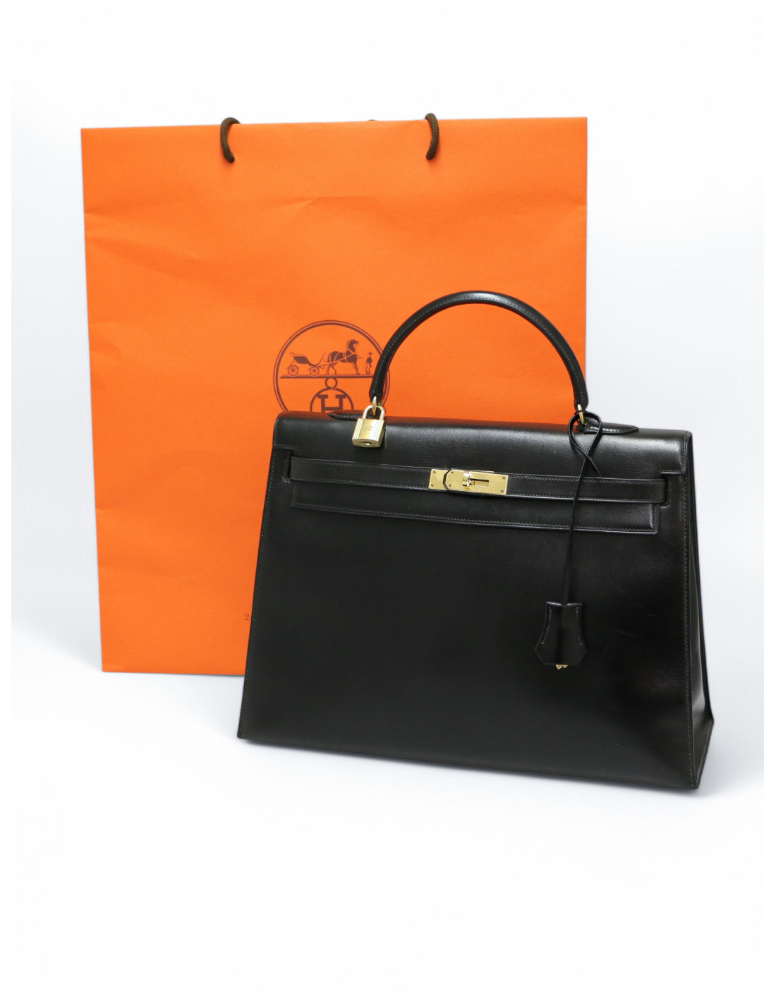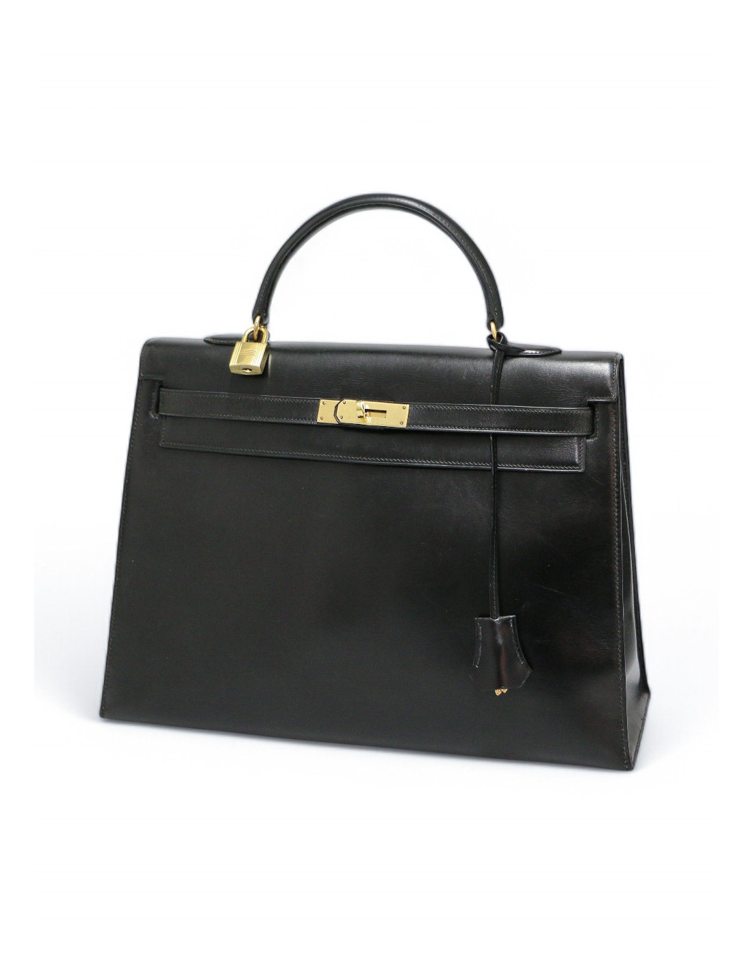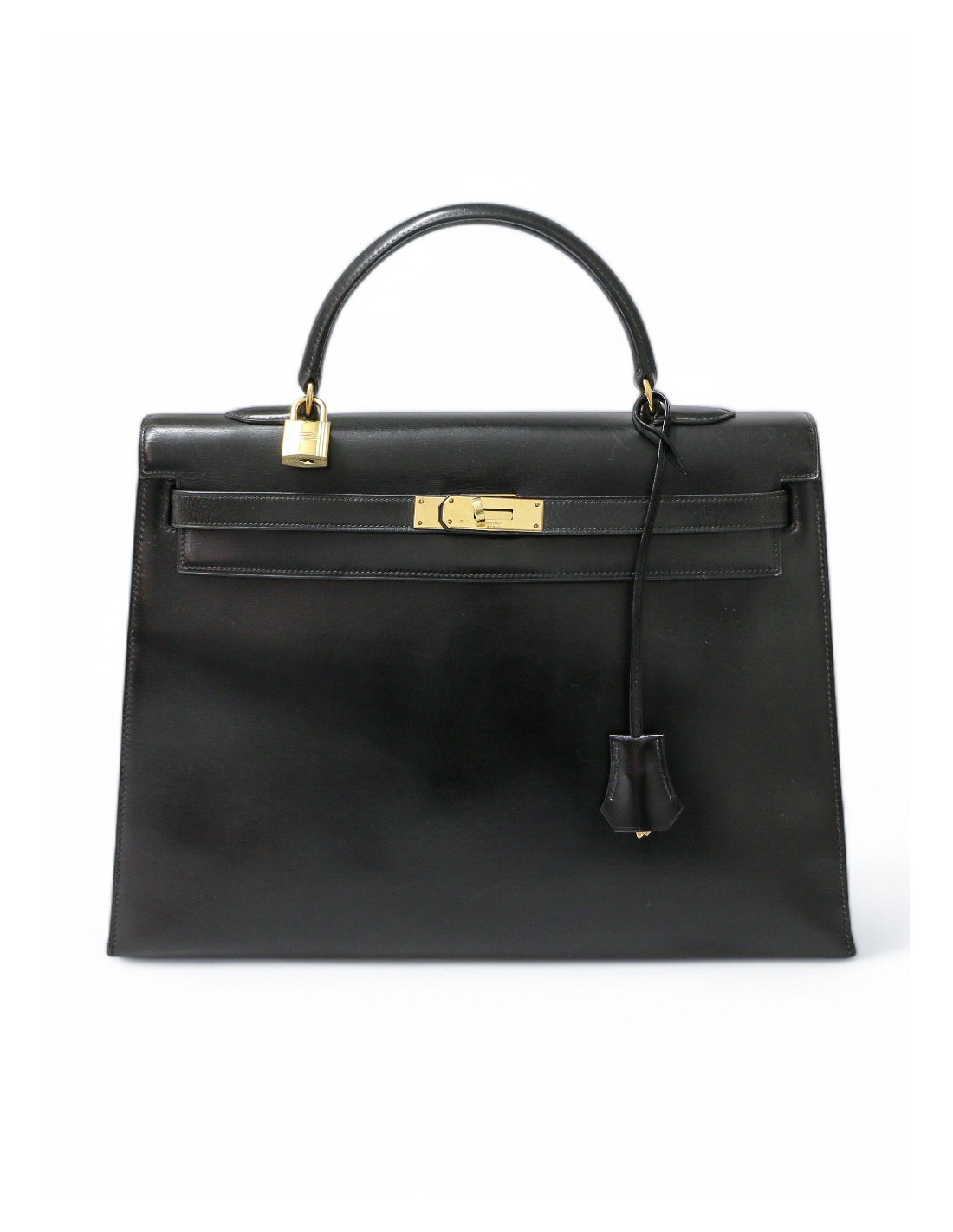 Sac Kelly box 35 Hermès sellier noir bijouterie dorée