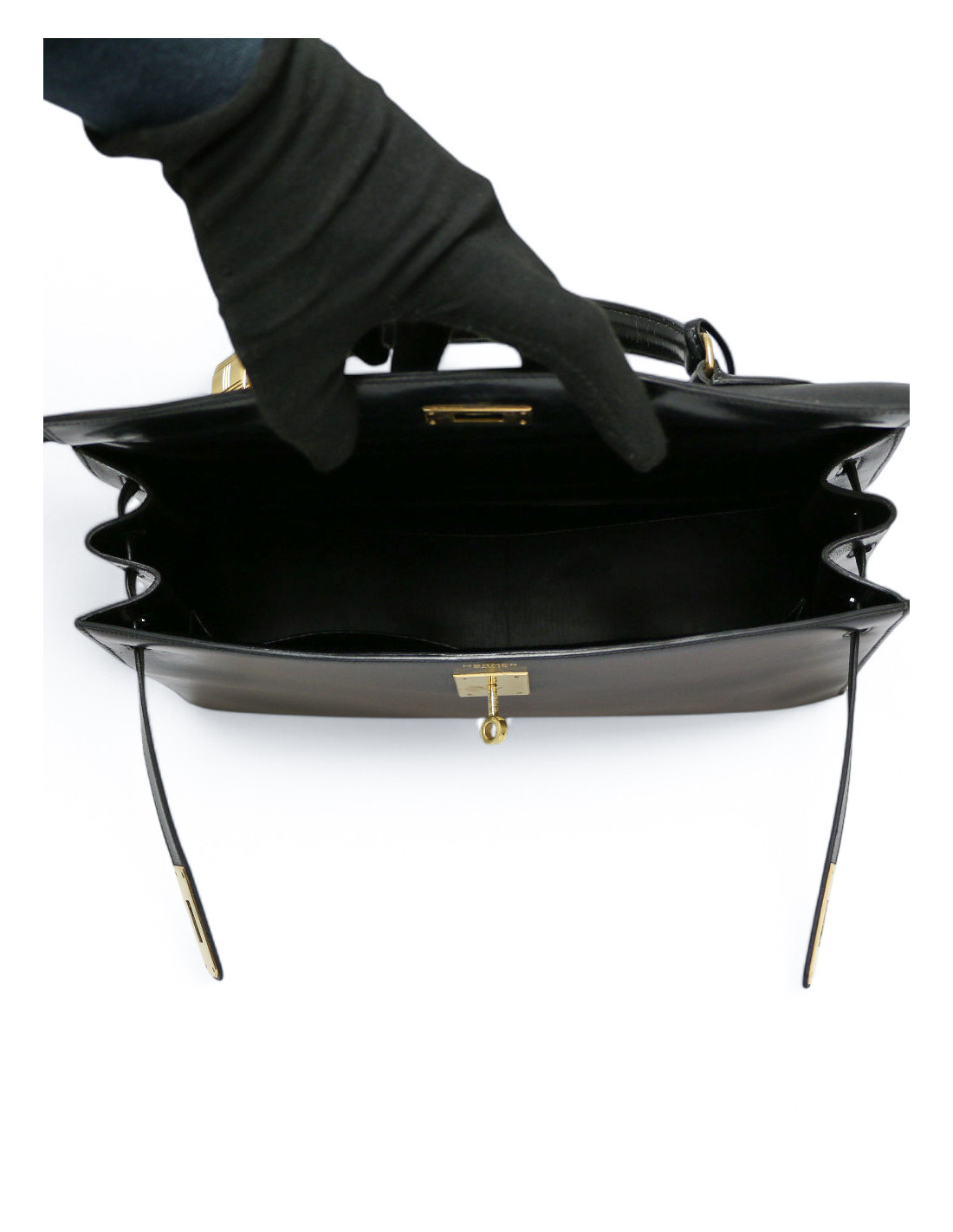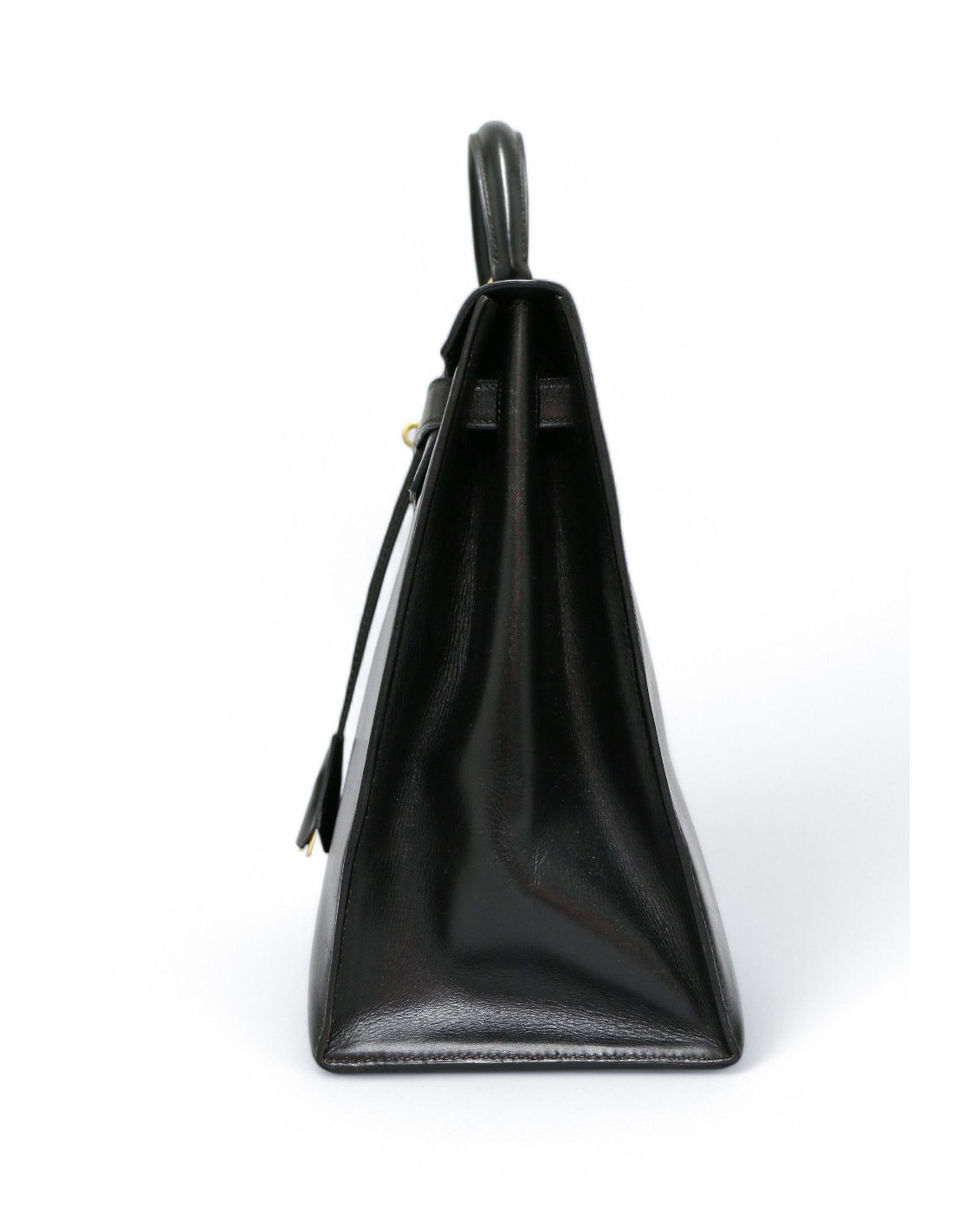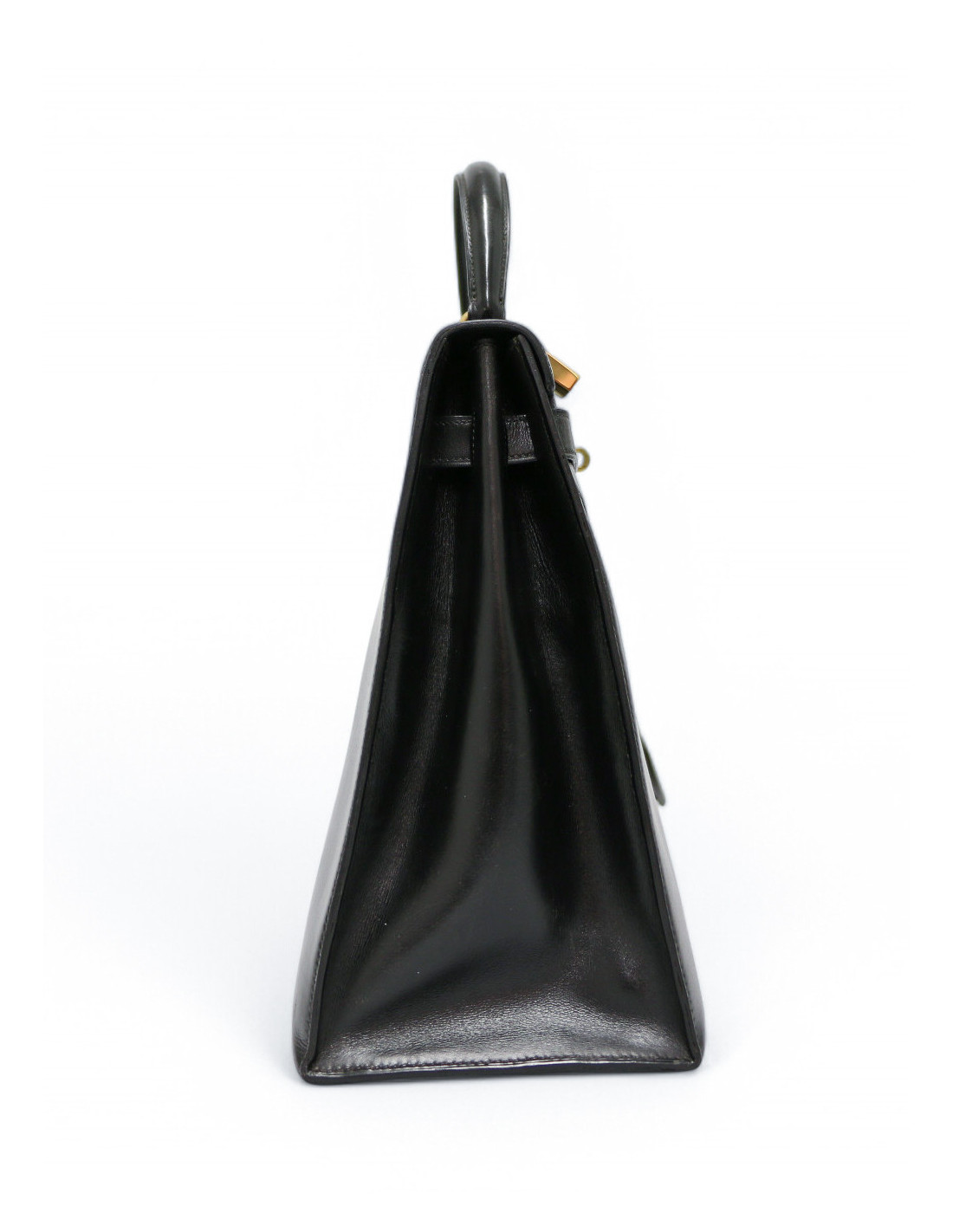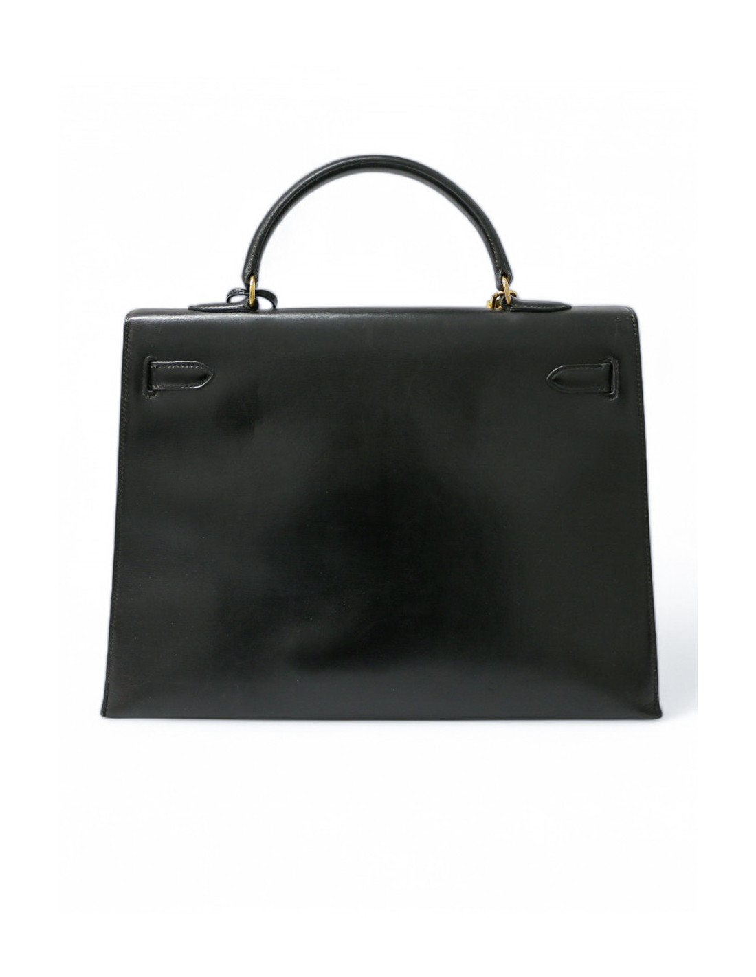 Sac Kelly box 35 Hermès sellier noir bijouterie dorée