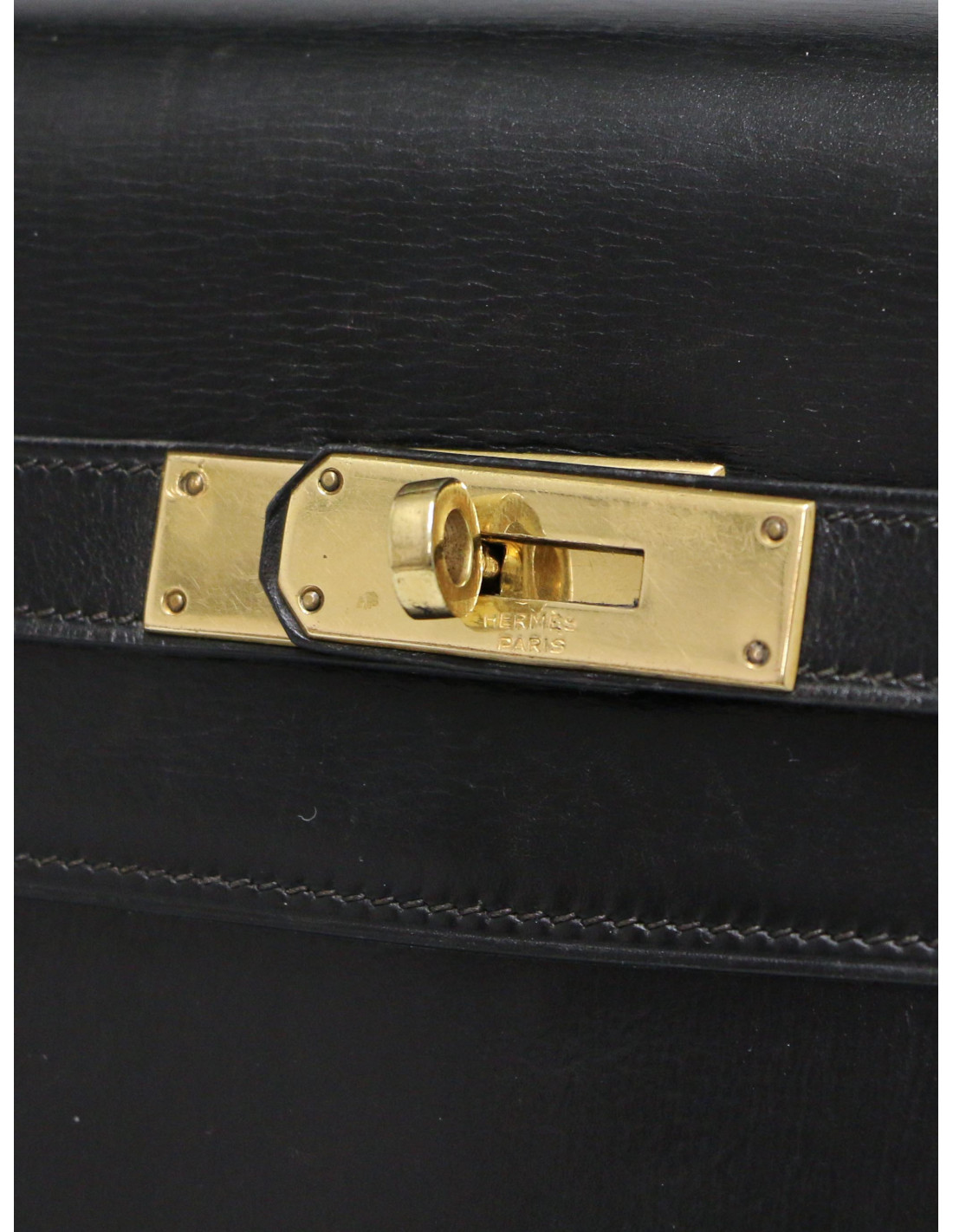 Sac Sellier Kelly box 35 Hermes noir vintage