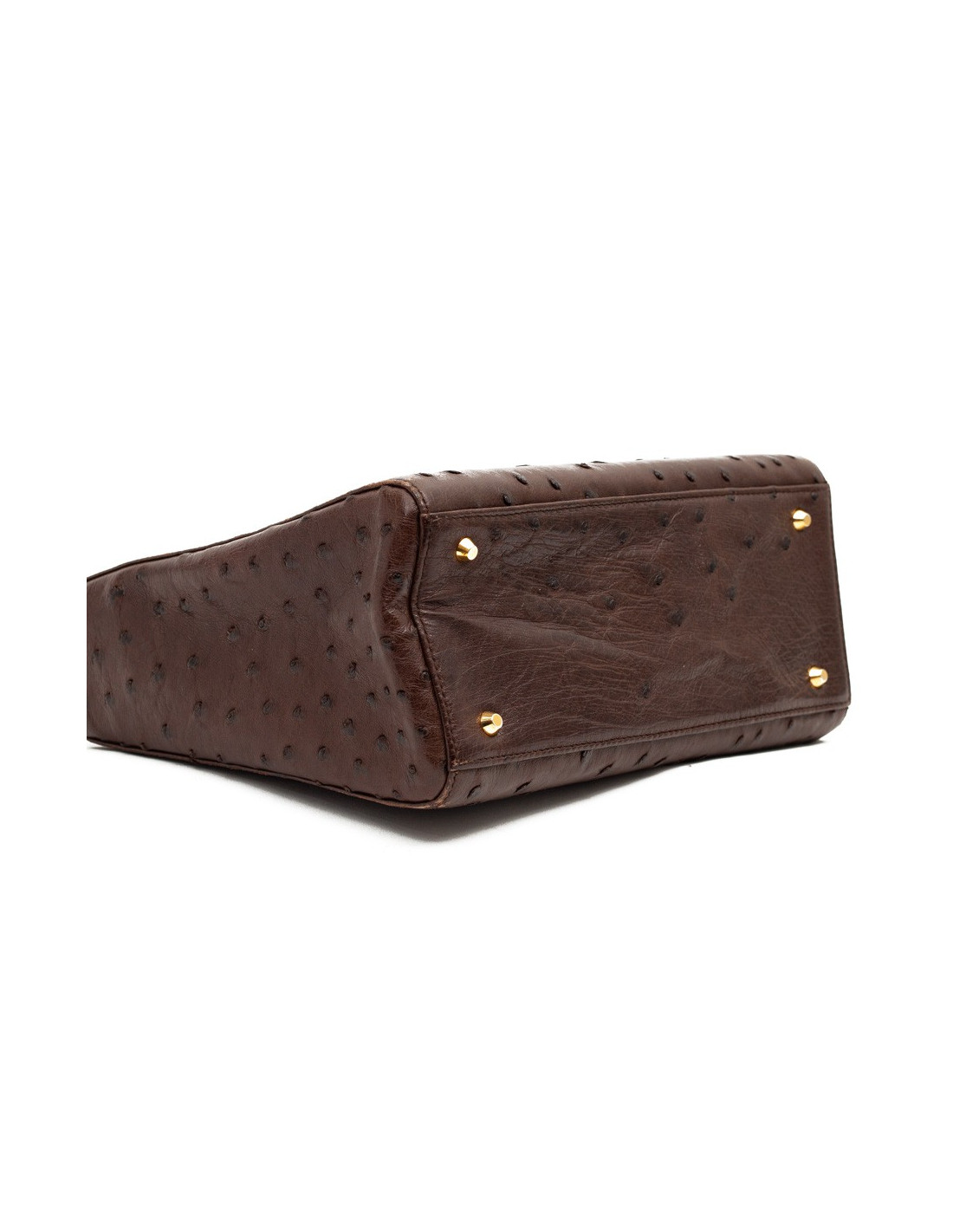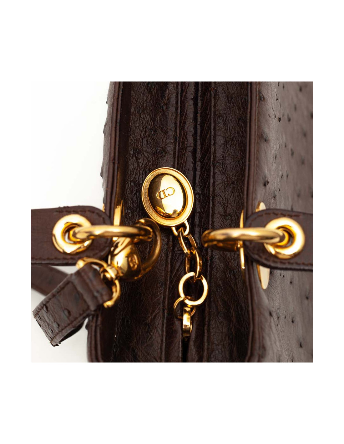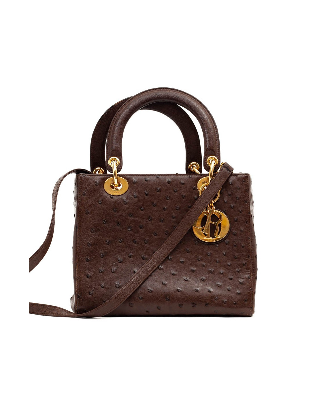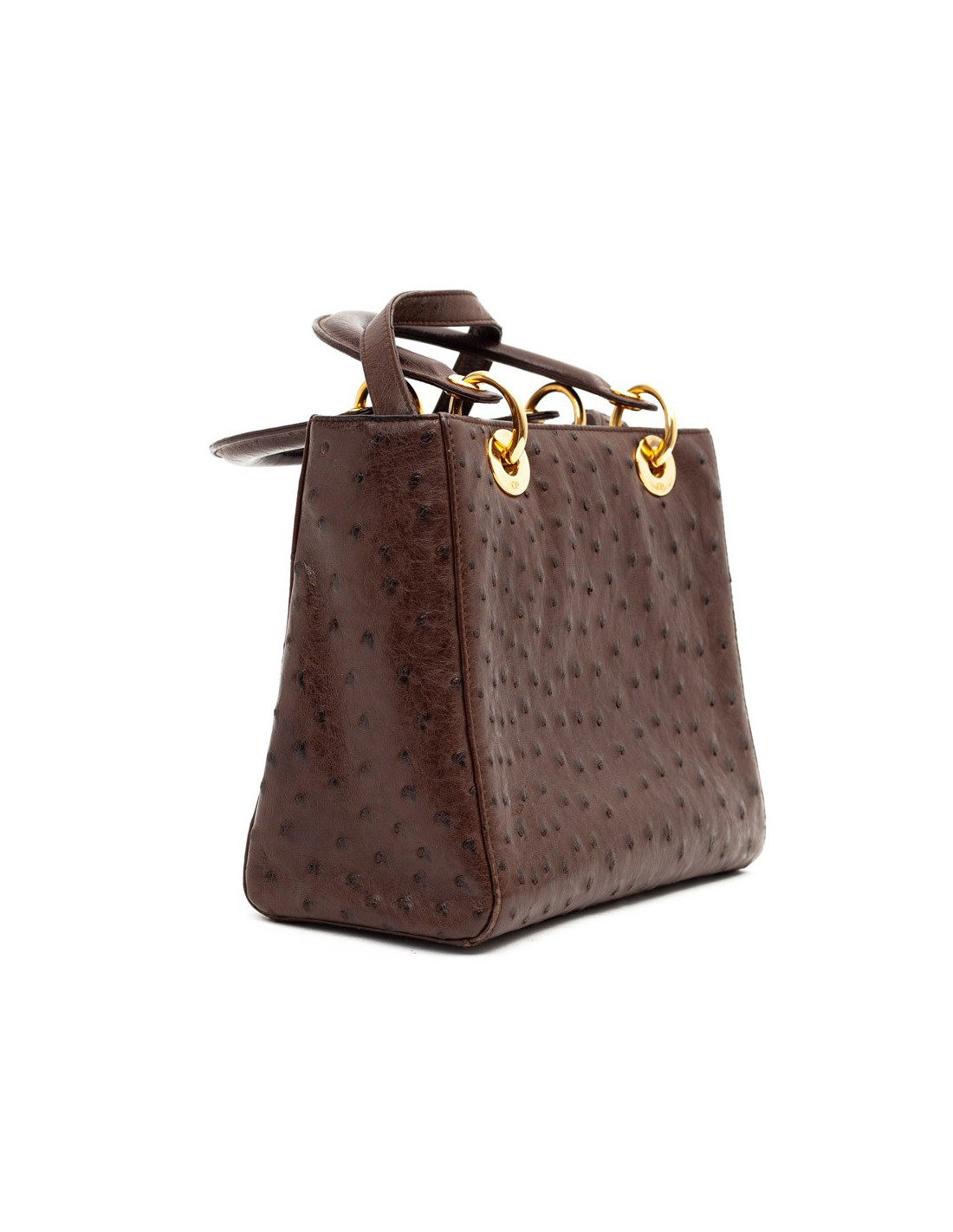 Sac à main vintage de la Maison Christian Dior, modèle Lady Dior en autruche marron cacao. Ce sac fut offert par la première dame de France, Mme Bernadette Chirac à la Princesse lady Diana, lors de sa visite à Paris en 1995. Adopté par la princesse de Galles ce sac fut décliné dans dans de versions.
