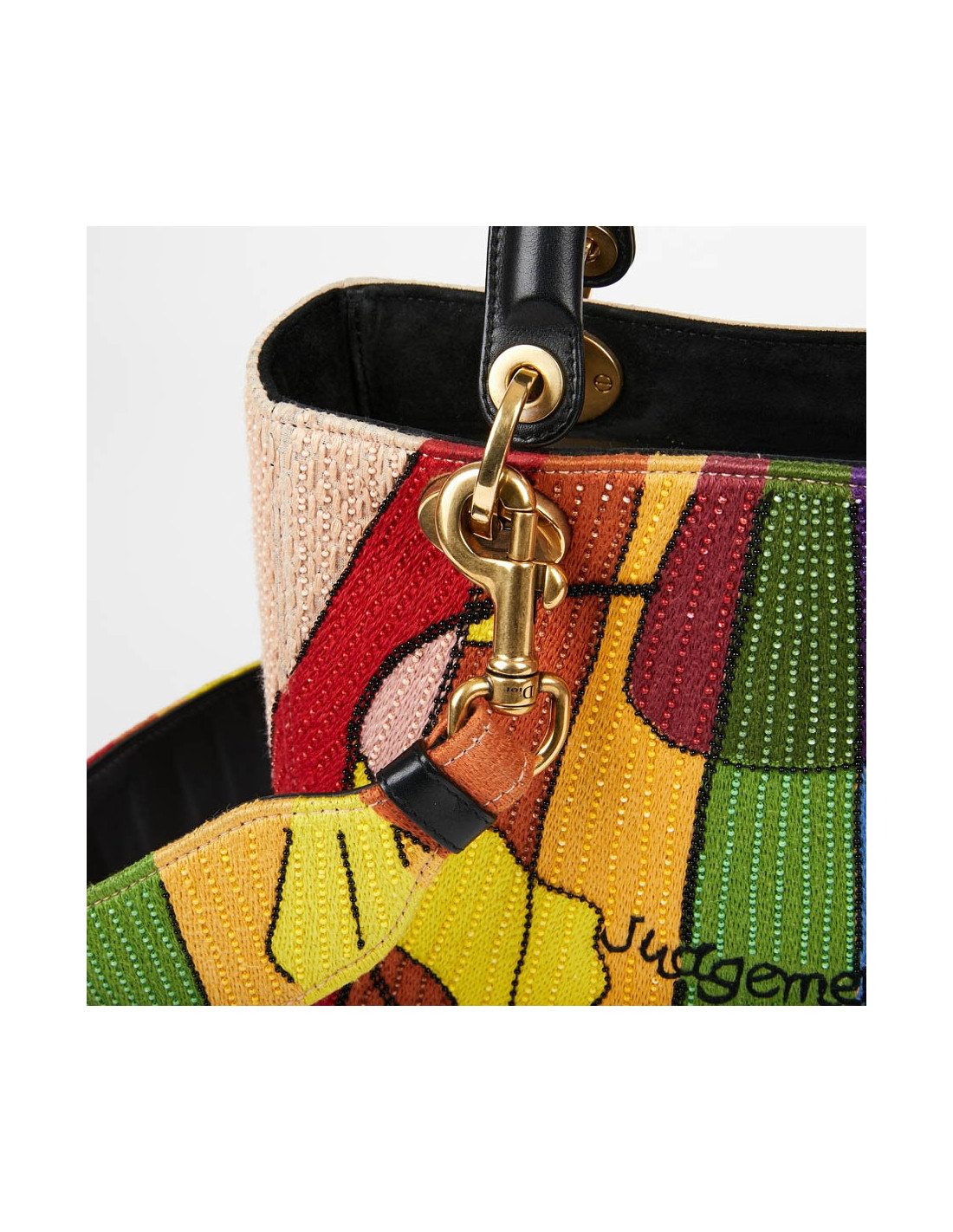 Ce sac de fabrication italienne est issu de la collection Croisière de 2018, qui est inspirée du jeu de Tarot Motherpeace imaginé par K. VOGEL et V. NOBLE dans les années 70 représentant les déesses et le mouvement féministe mais aussi les signes astrologiques qui étaient chers à Christian DIOR. La collection représente les signes du jeu de tarot, et « Judgement » et l’une des pièces phare de la collection.
