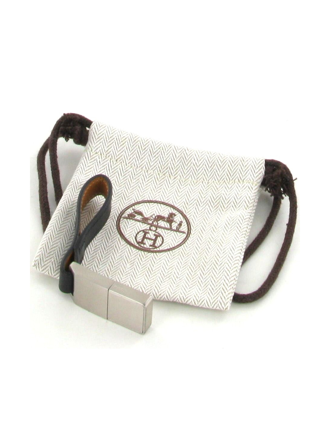 Dragonne clé USB HERMES cuir noir et métal