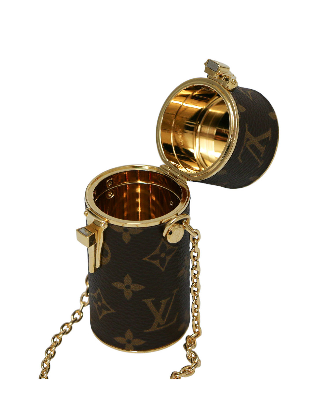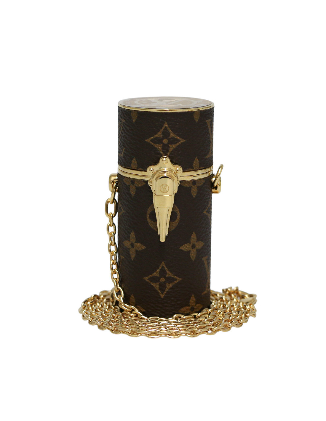 Se glisse dans un sac, ou se porte autour du cou ou à l'épaule grâce à une chaine dorée