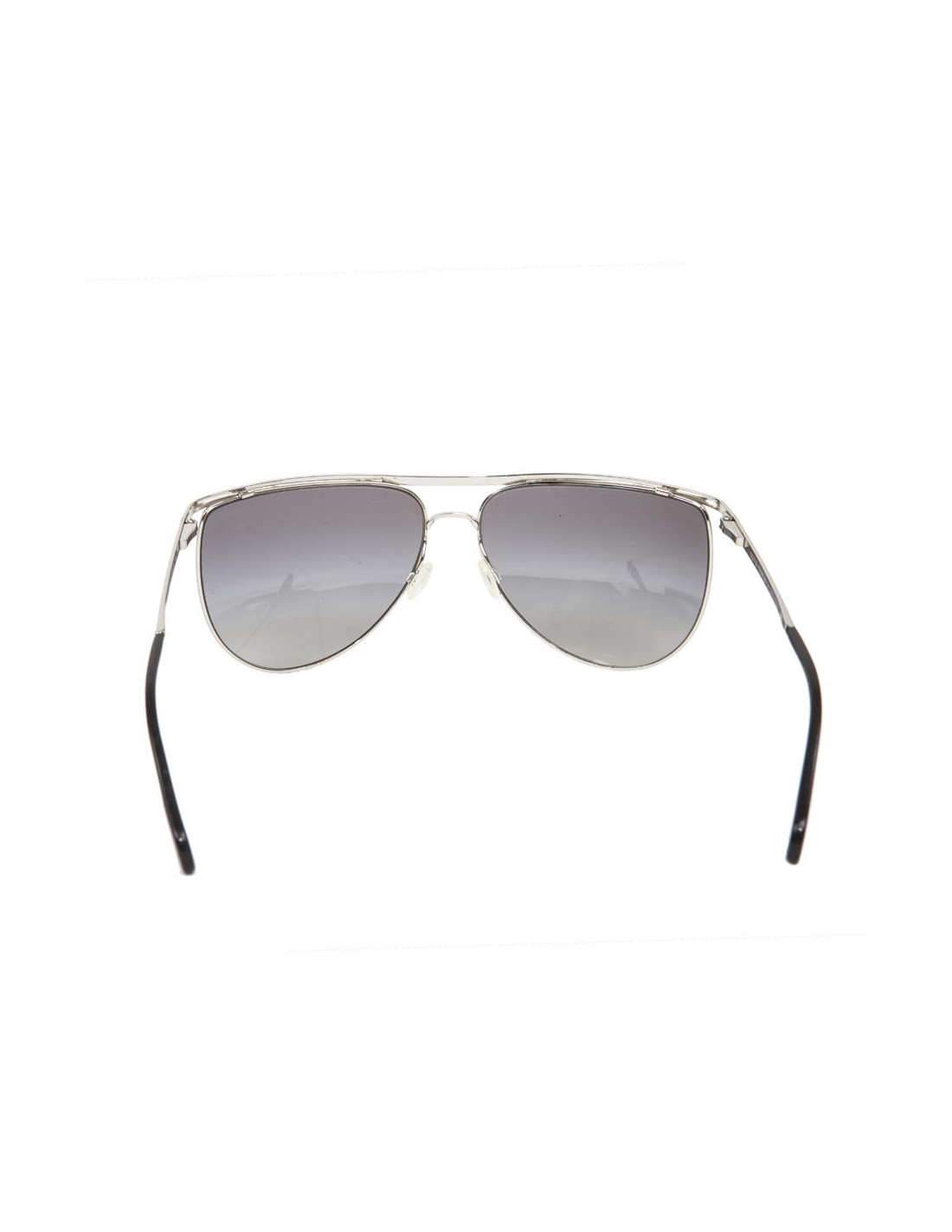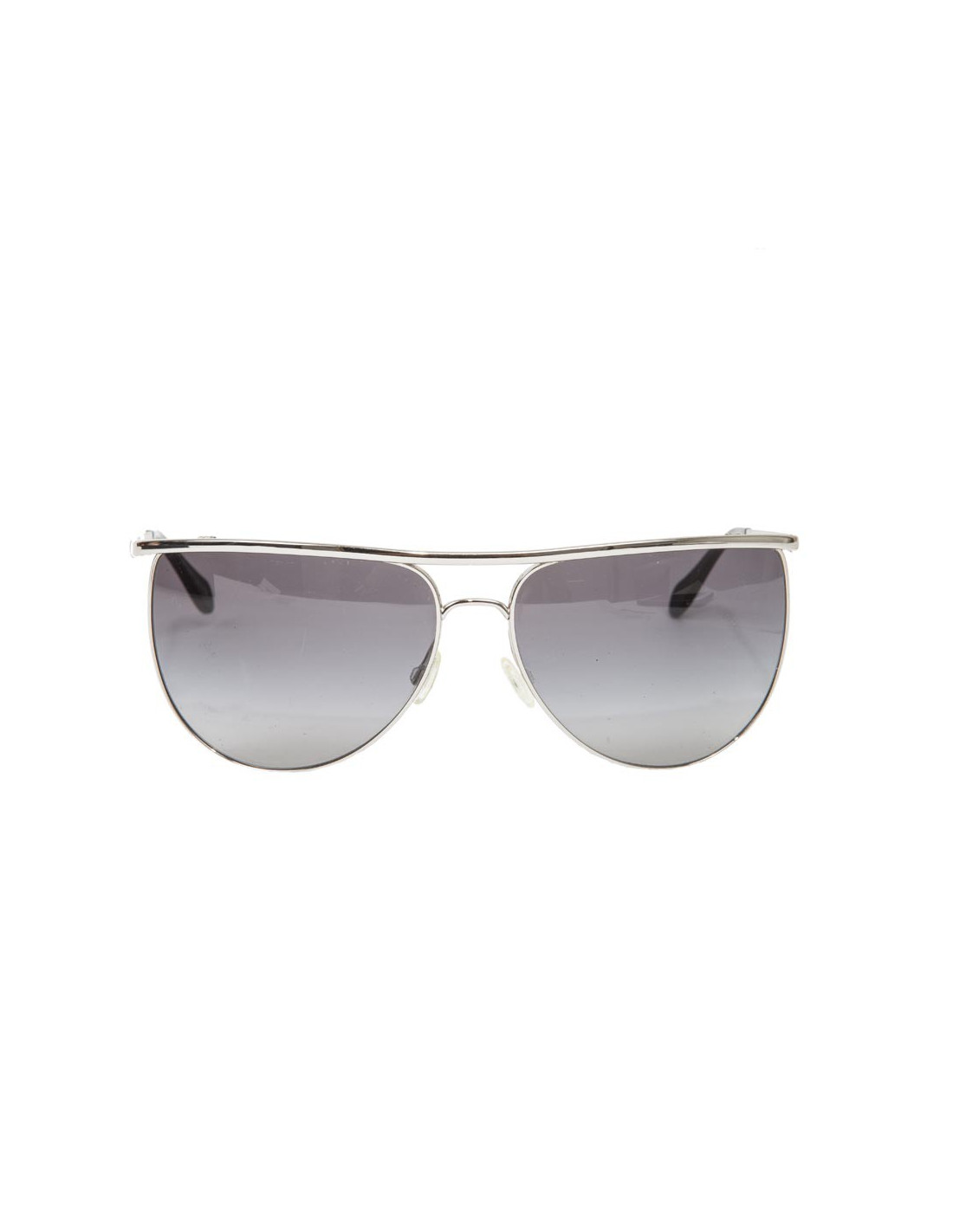 Lunettes de soleil Oliver Peoples pour Balmain Paris. Monture et branches en métal couleur argent, verres fumés brun dégradé. Made in Italiy.