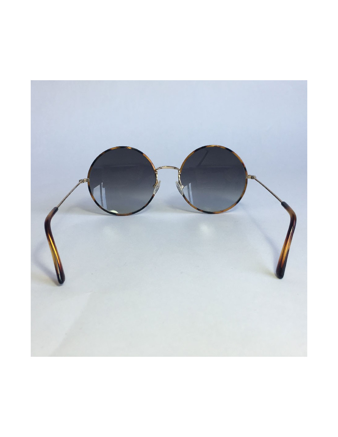 Lunettes de soleil DIOR rondes 'Yoko' en métal couleur fauve. Les verres sont dans un dégradé de bleu, en bon état. Quelques infimes traces.