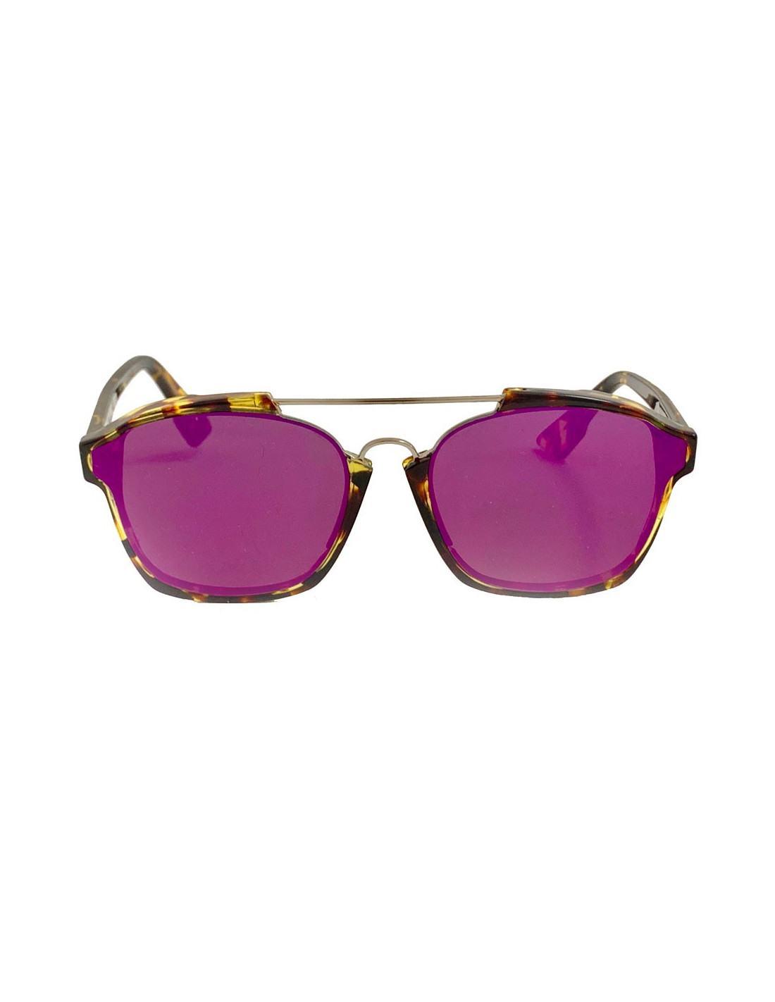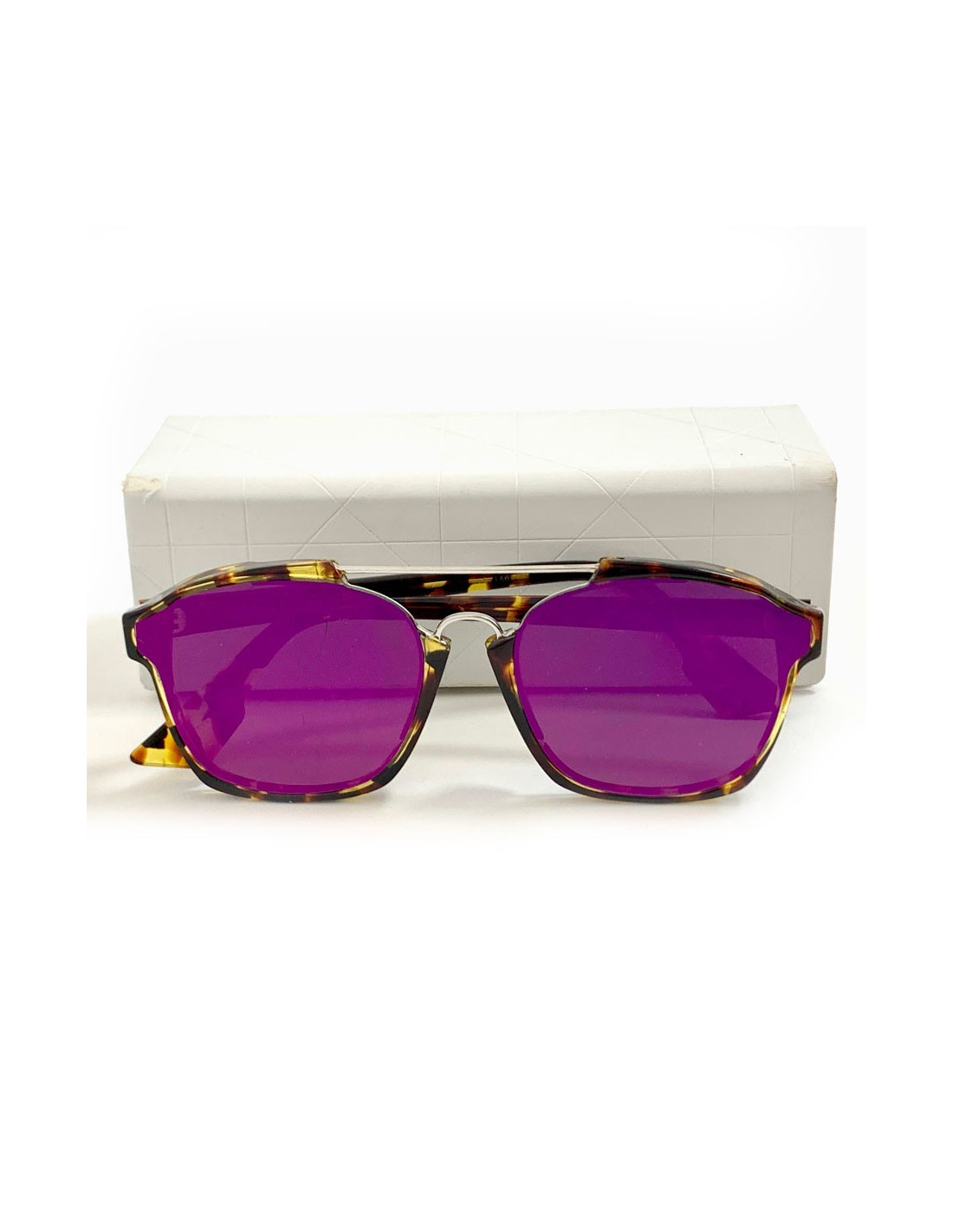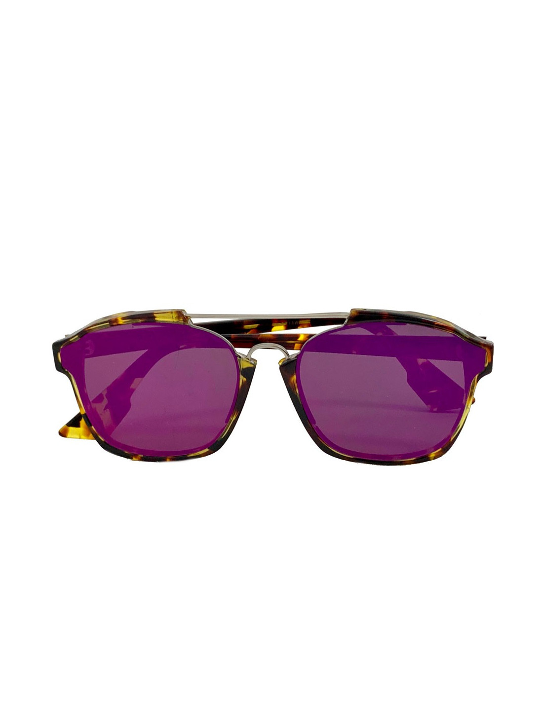 Belle paire de lunettes de soleil DIOR, modèle Abstract, TVZ9Z, couleur Havana (écaille). Les verres miroir sont de couleur violette.