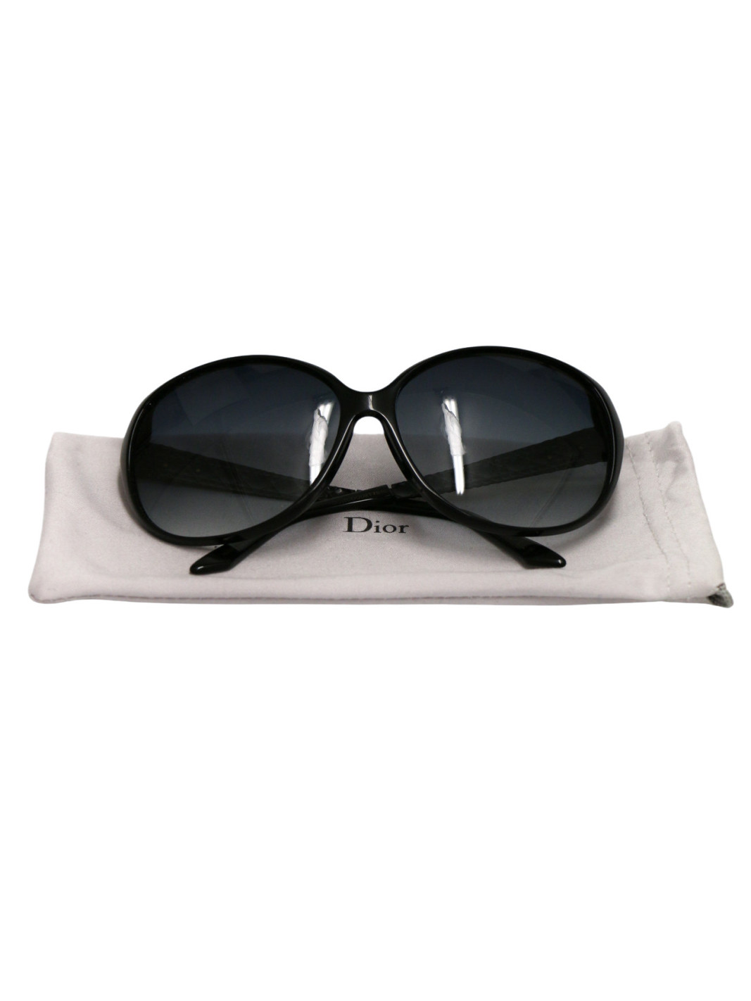 Lunettes de soleil Dior Coquette 2 noires, élégantes et raffinées. Leur monture noire brillante est subtilement ornée du motif cannage, signature de la Maison Dior, sur les branches. Les verres gris foncés dégradés offrent une protection optimale tout en soulignant le style intemporel et féminin de ce modèle. Parfaites pour un look chic au quotidien, elles allient confort et sophistication. Taille des verres 6,5 x 5 cm, longueur des branches 12,5 cm.