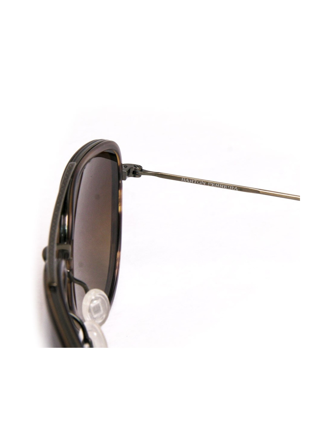 Paire de lunettes de soleil Barton Perreira de couleur marron, branches métal de couleur bronze, le type de la monture est cerclée, la couleur des verres est un marron foncé. La marque est inscrite à l'intérieur de la branche. En très bon état.