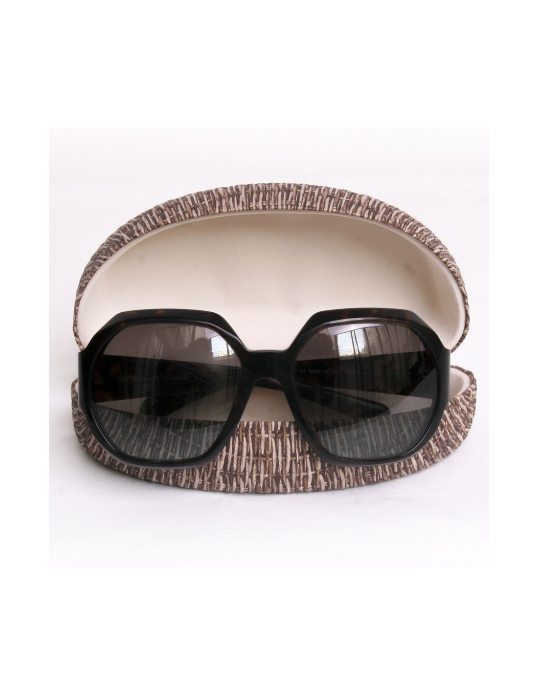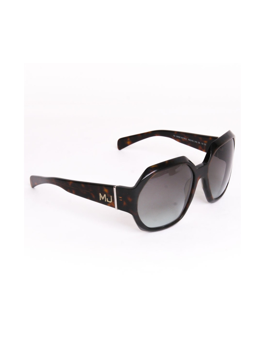 Paire de lunettes Marc Jacobs look vintage, la monture est en plastique façon écaille de tortue, les verres sont de couleur noire, La marque MJ (Marc Jacobs) est sur chaque branche. Il y a des micros rayures d'usage sur les verres et la monture.